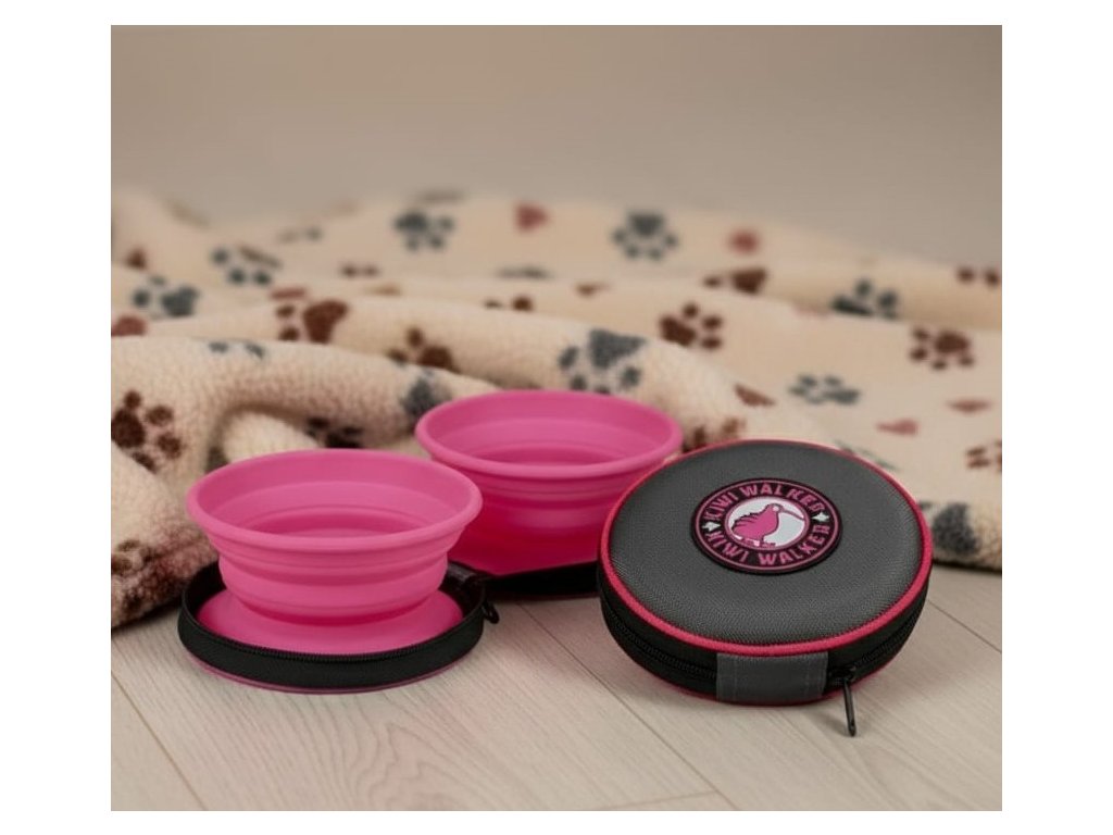 Jednouduše nejlepší cestovní misky na trhu. Jedná se o dvě skládací misky z kvalitního silikonu, které obě pojmou až 350 ml, a skvěle obstarají jídlo i vodu pro vašeho mazlíčka. K pouzdru jsou misky přichycené pomocí suchého zipu a pouzdro je vybavené kvalitním a odolným zipem.