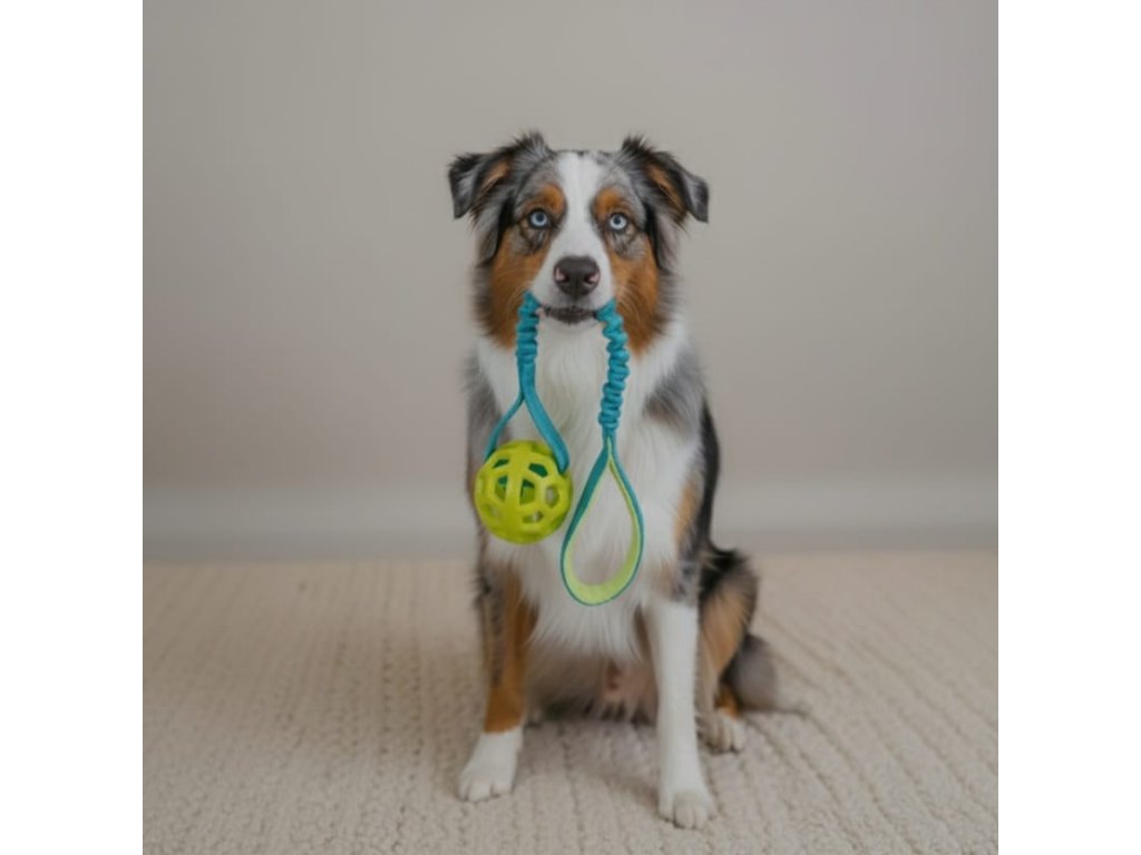 Ideální vánoční dárek pro vašeho aktivního psího miláčka - přetahovadlo s míčkem. Délka celé hračky 48cm, průměr míčku 7cm. Vyrobeno: míč z TPR, popruh z polyesteru. Hračku je možné použít na přetahování i aportování.