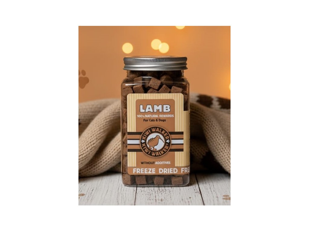 100% jehněčí - mrazem sušené kousky jehněčího masa jsou ideální pamlsky pro psy a kočky od značky Kiwi Walker