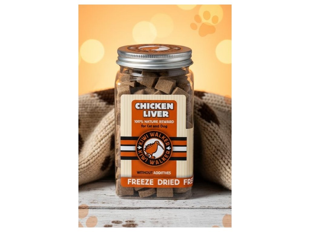 100% kuřecí játra - mrazem sušené kousky kuřecích jater jsou ideální pamlsky pro psy a kočky od značky Kiwi Walker