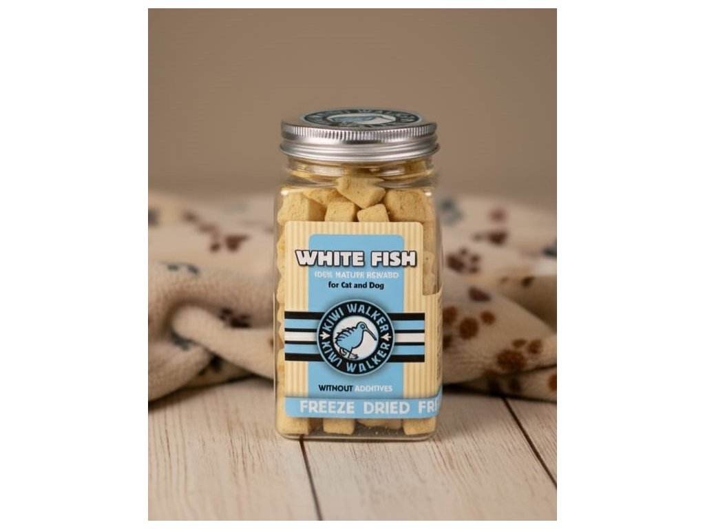 100% rybí maso - mrazem sušené kousky bílé ryby jsou ideální pamlsky pro psy a kočky od značky Kiwi Walker