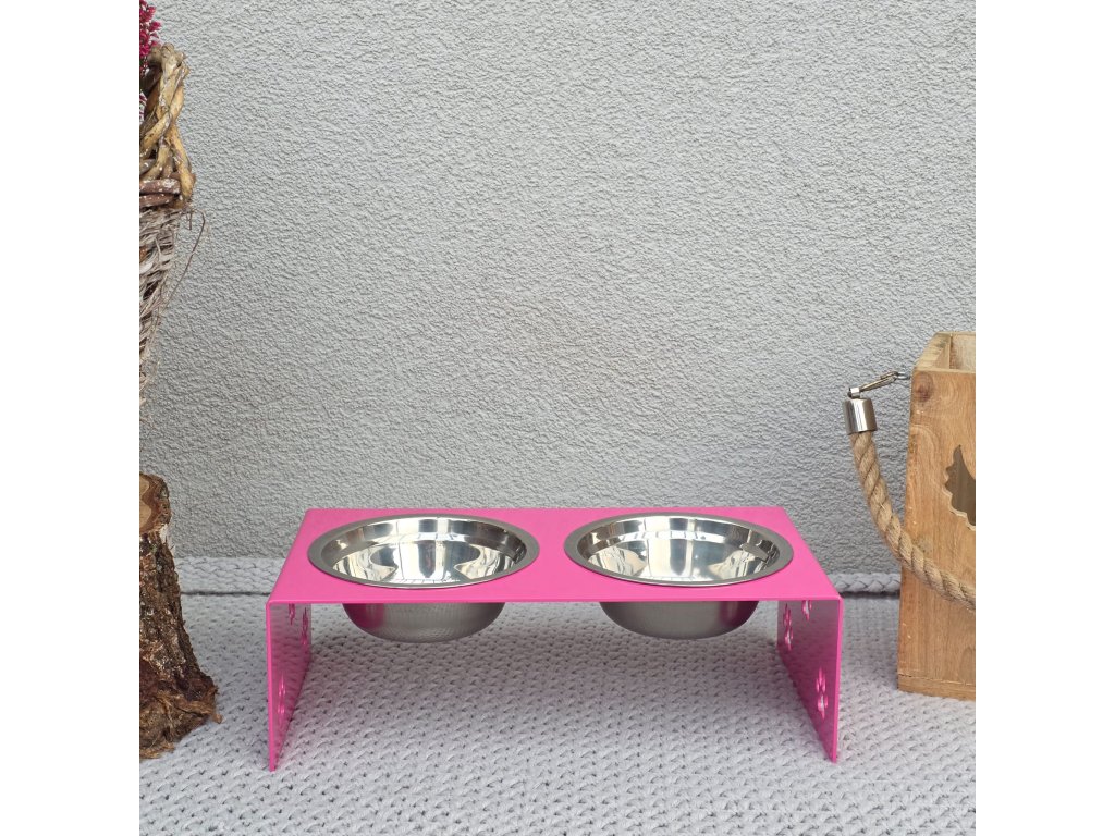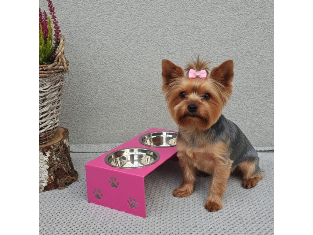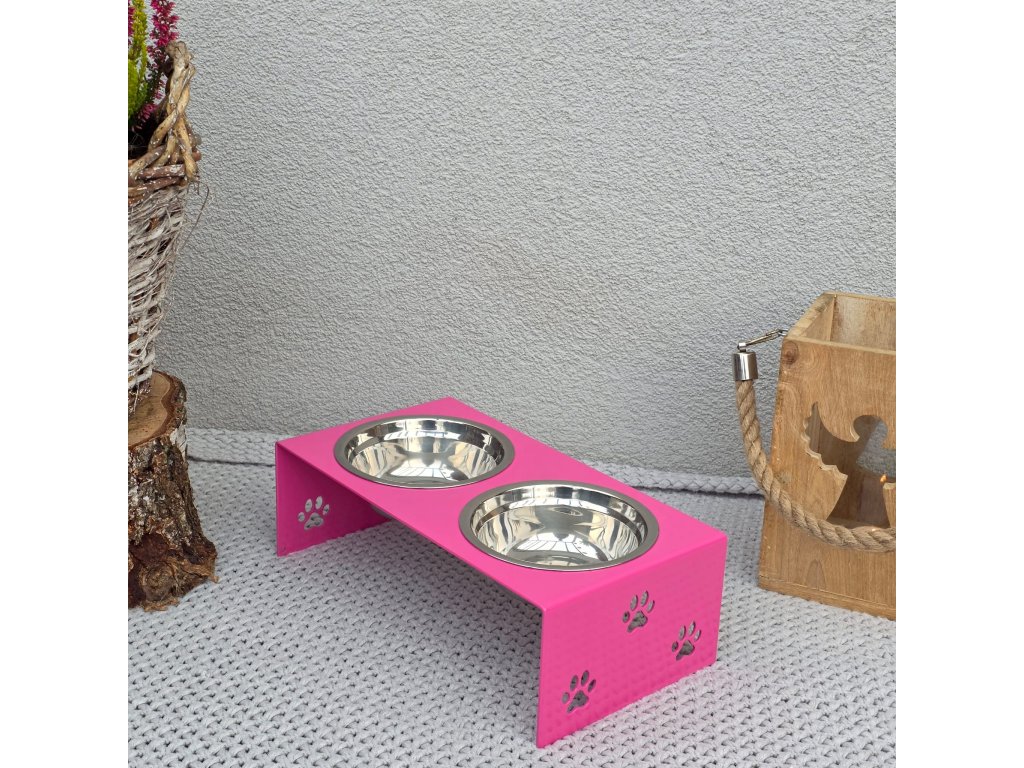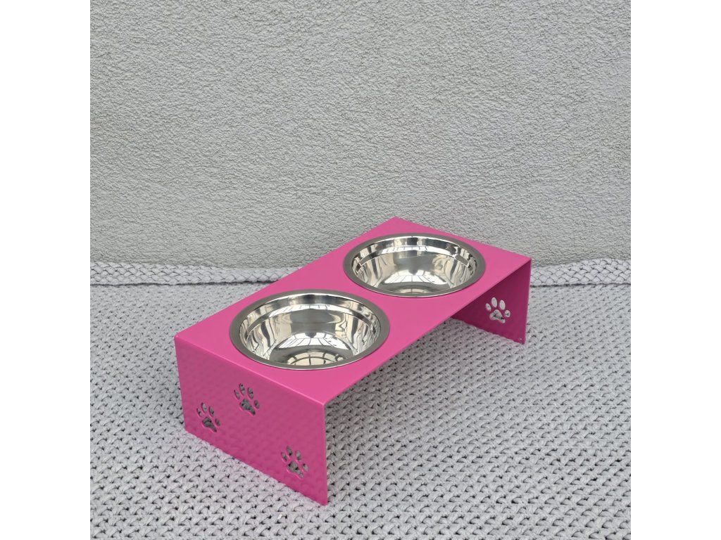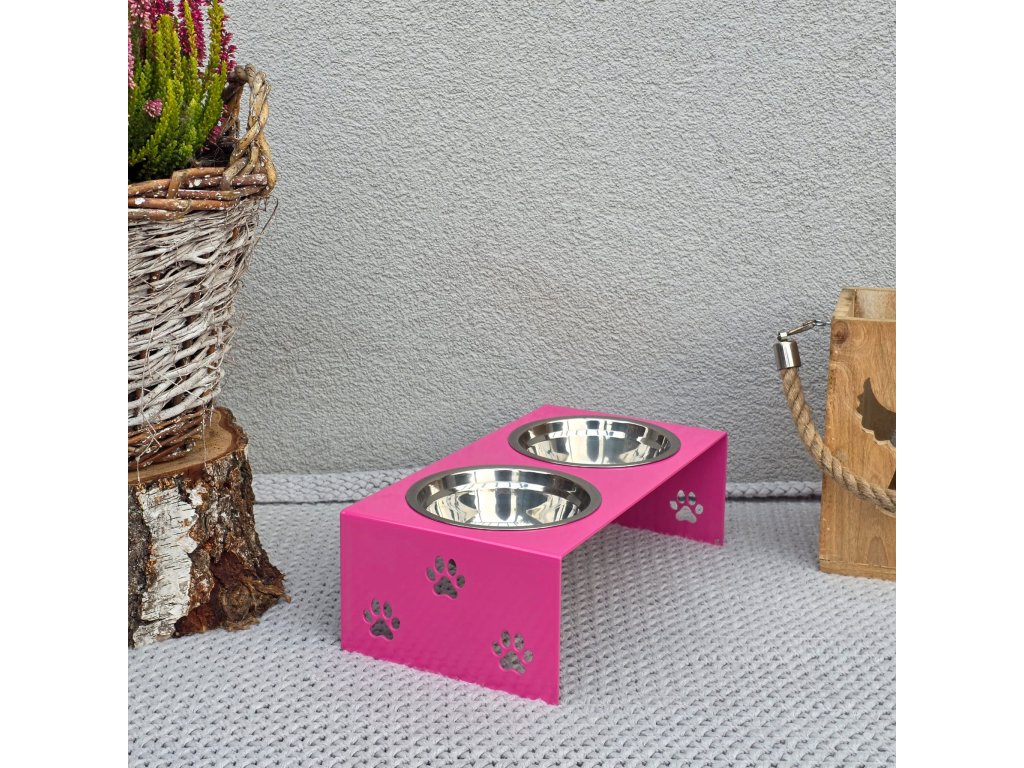 HafBar „S pacičkami“ – kovový stojan na dvě misky pro psy, velikost S (růžová)