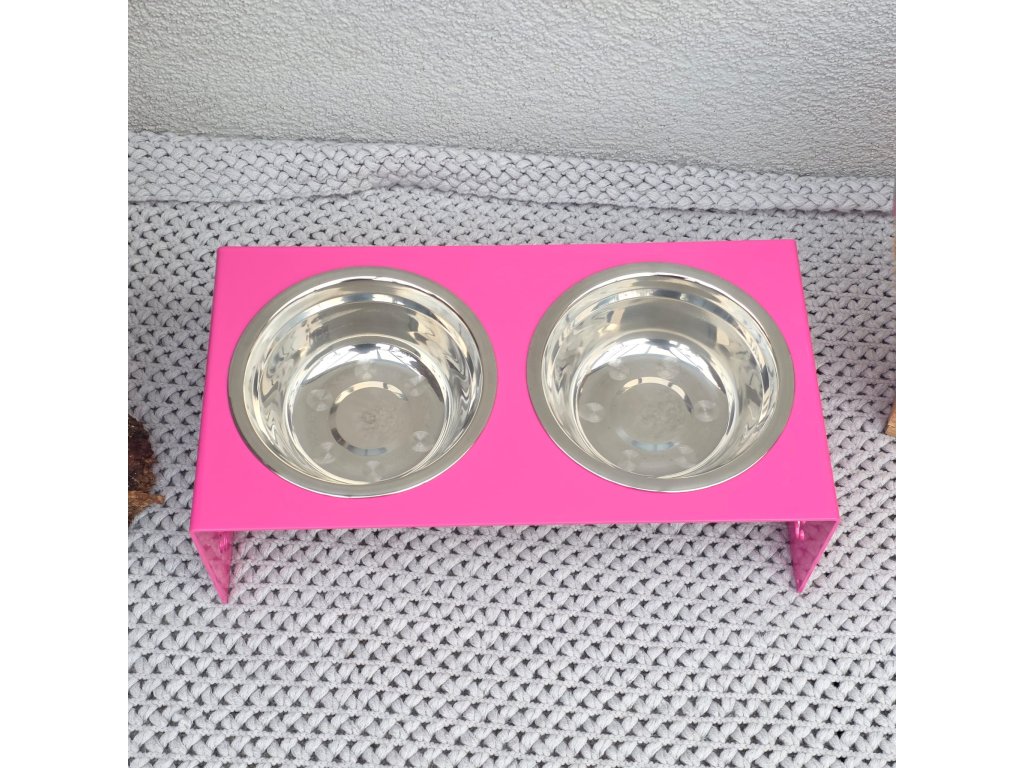 Designový kovový stojan na misky HafBar pro princezny. Moderní vzhled, pevná konstrukce a bezpečný materiál pro pohodlné a zdravé stolování vašeho pejska. Barva - růžová.