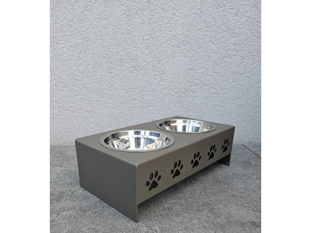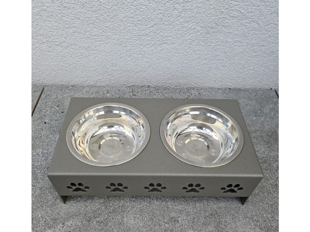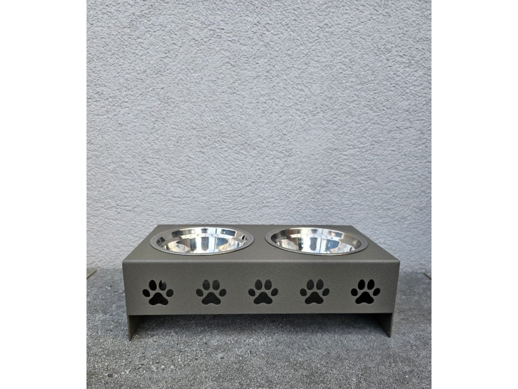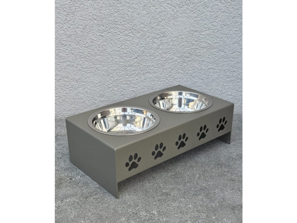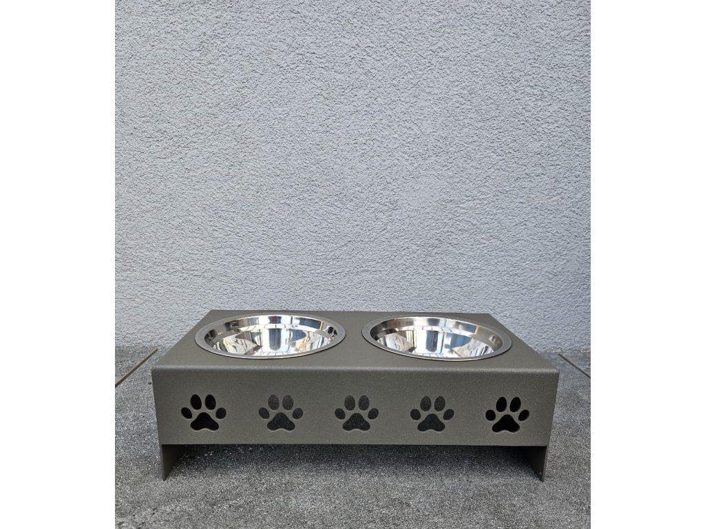 HafBar „Pět paciček“ – kovový stojan na dvě misky pro psy, velikost S (zeleno-šedá)