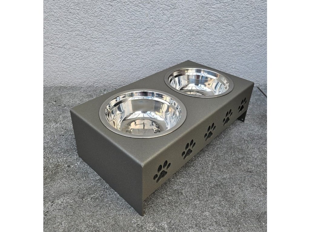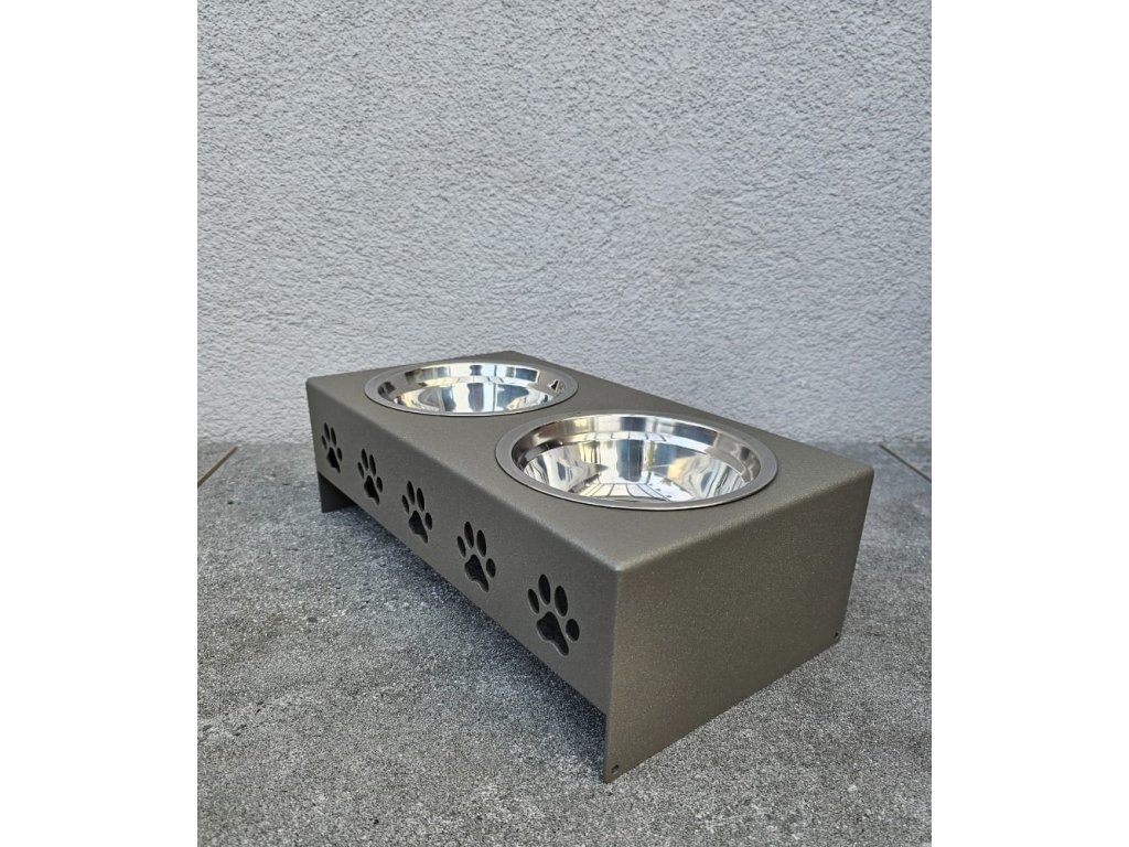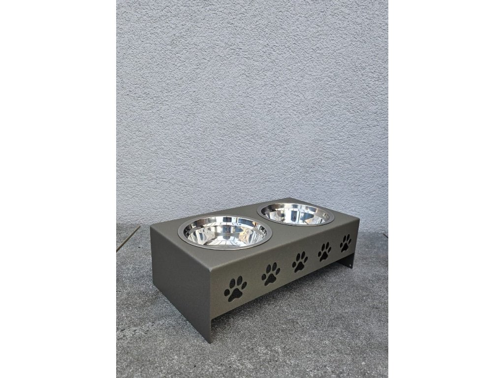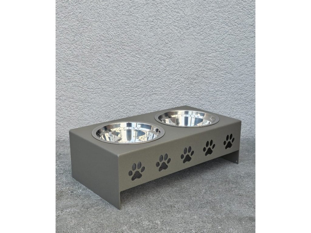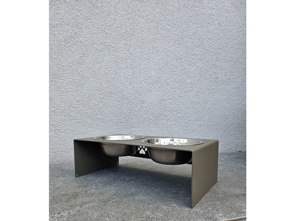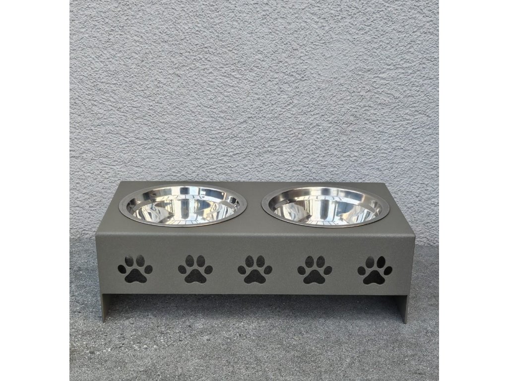 HafBar „Pět paciček“ – kovový stojan na dvě misky pro psy, velikost S (zeleno-šedá)