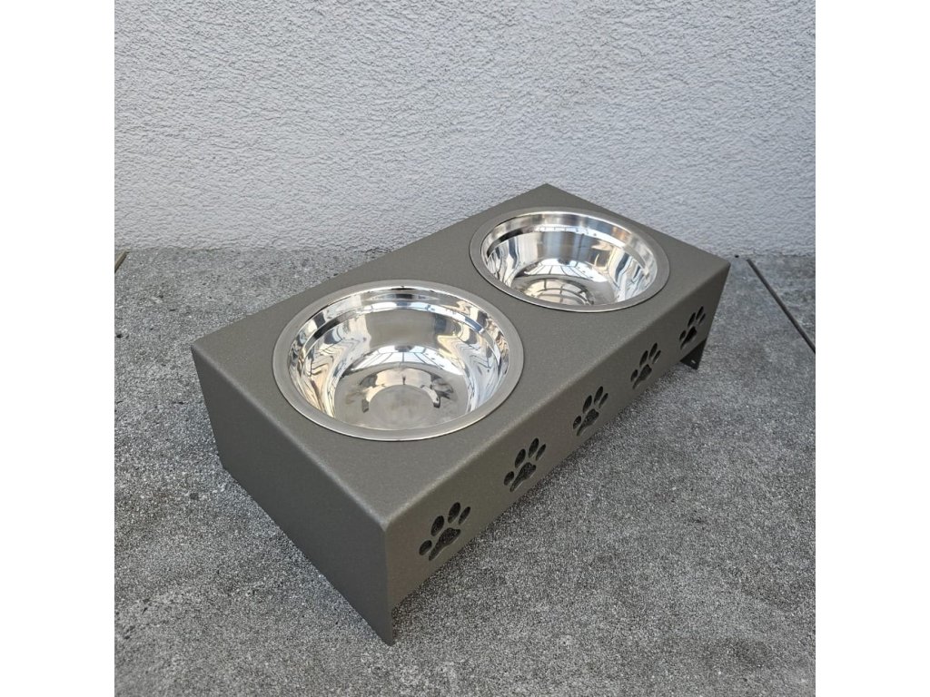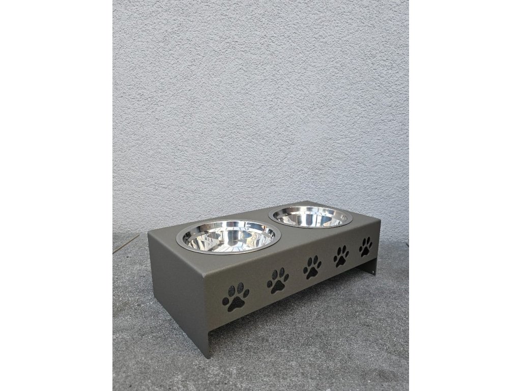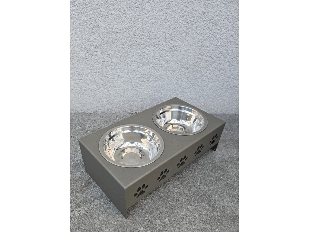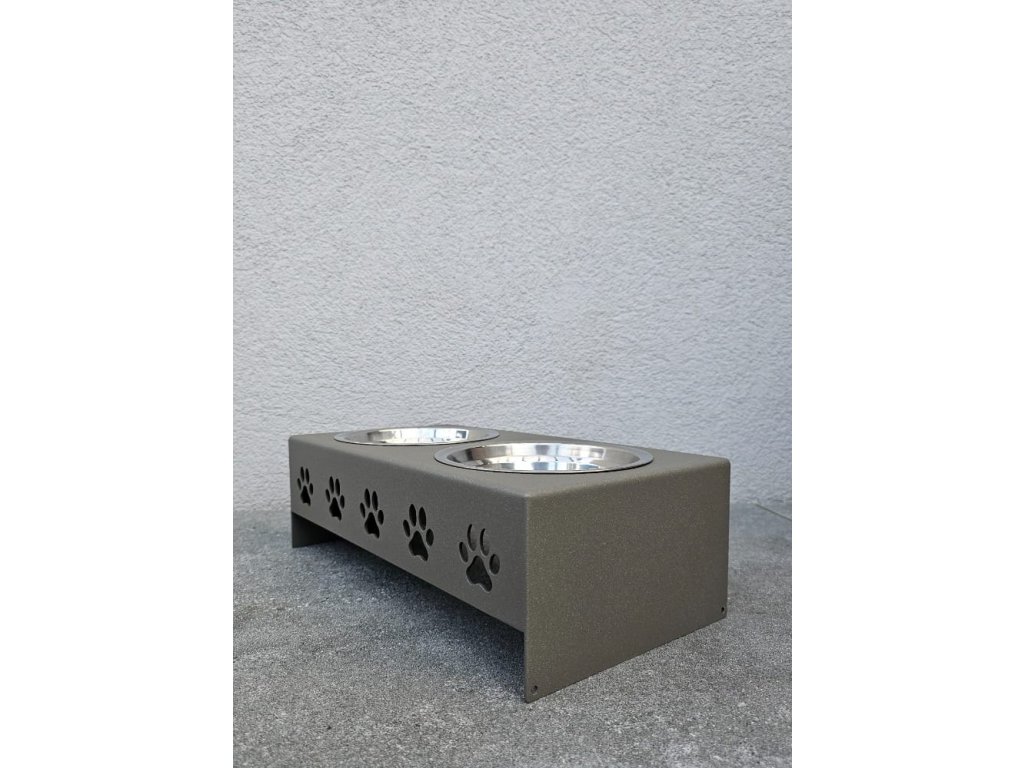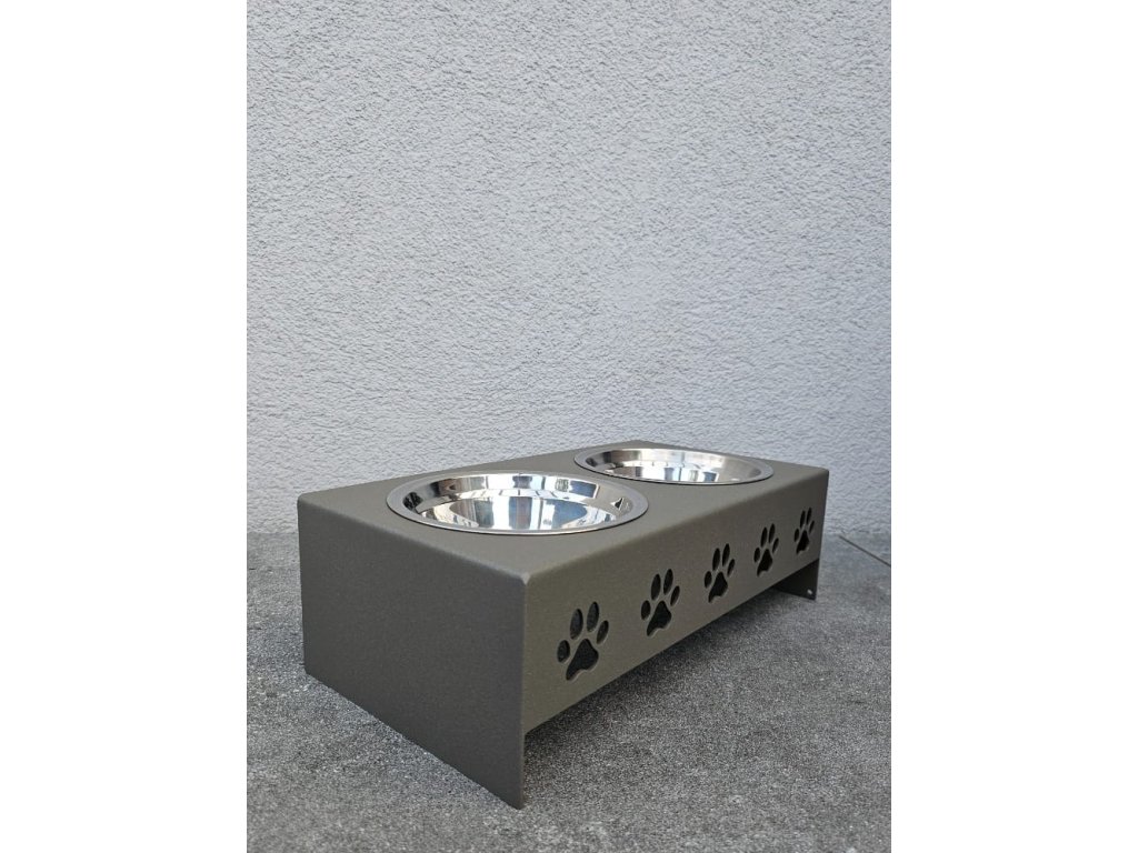 HafBar „Pět paciček“ – kovový stojan na dvě misky pro psy, velikost S (zeleno-šedá)