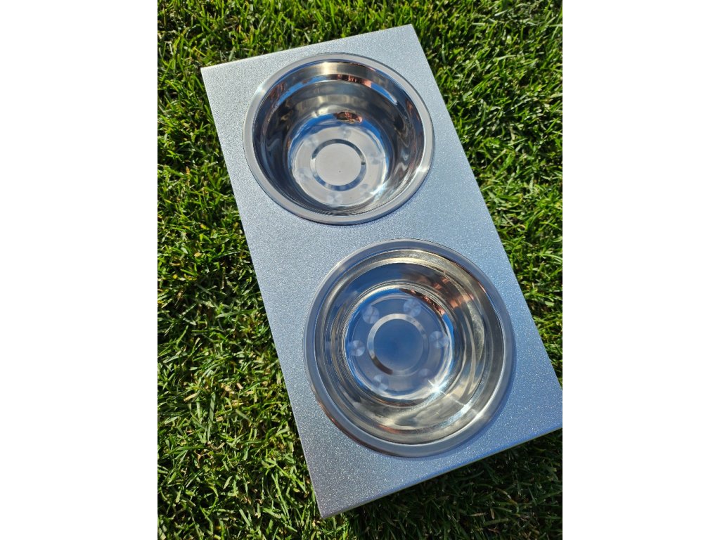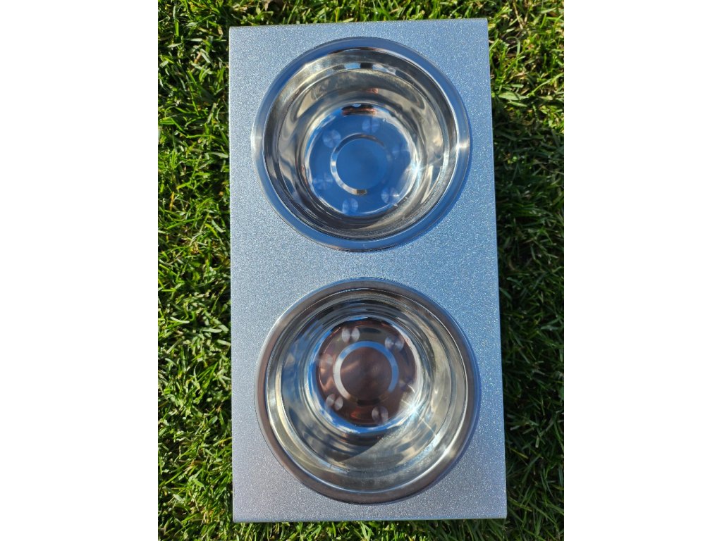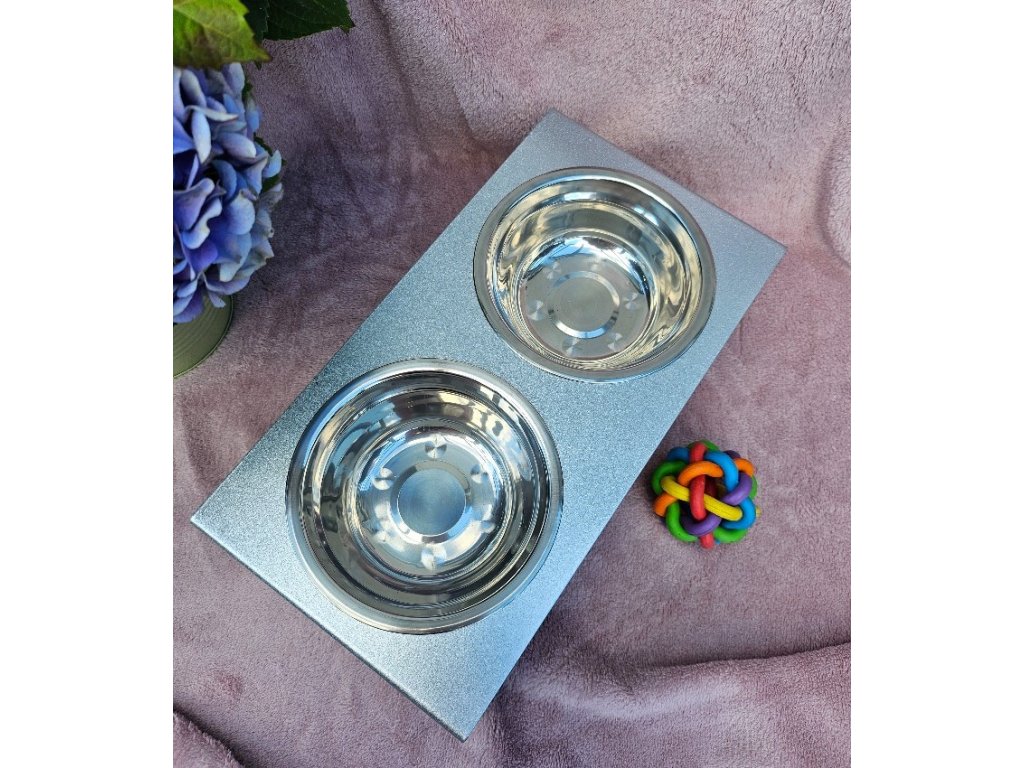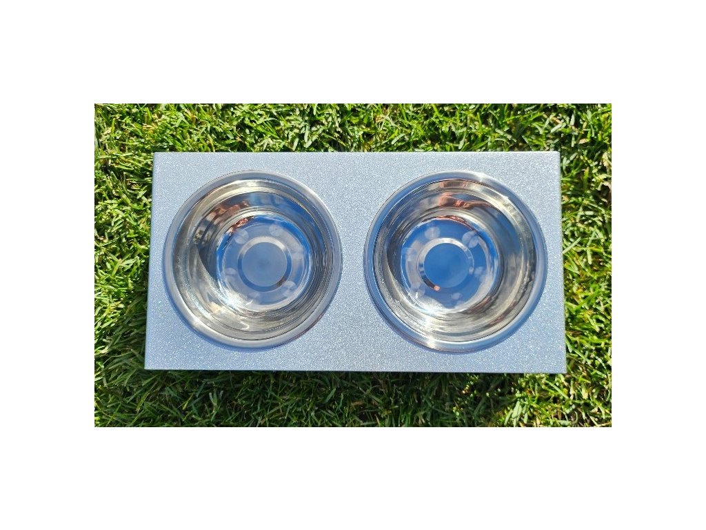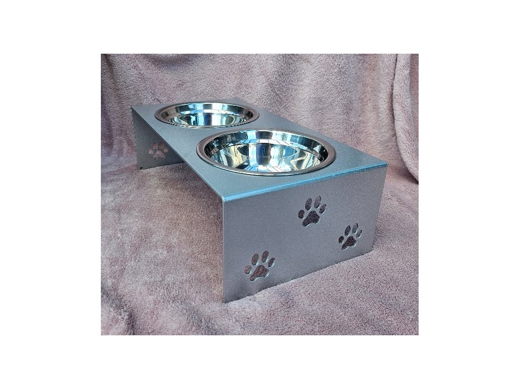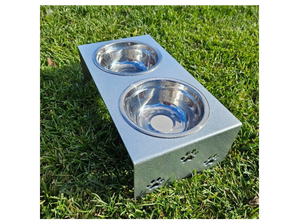 HafBar „S pacičkami“ – kovový stojan na dvě misky pro psy, velikost S (stříbrná)