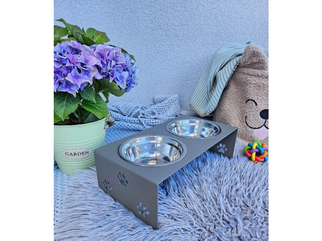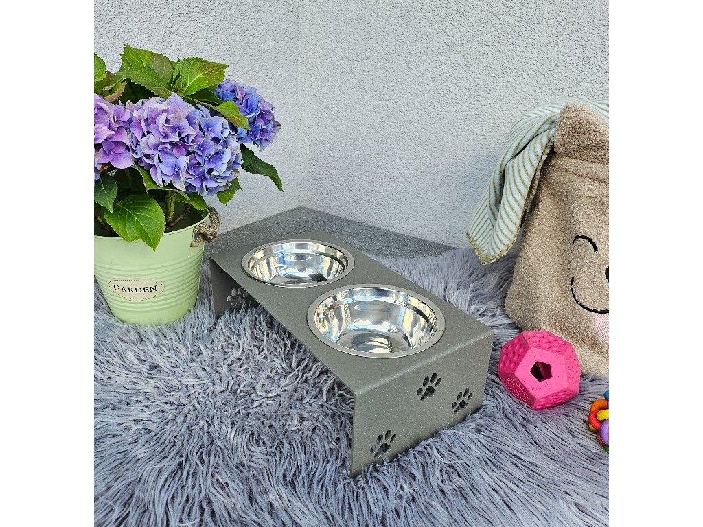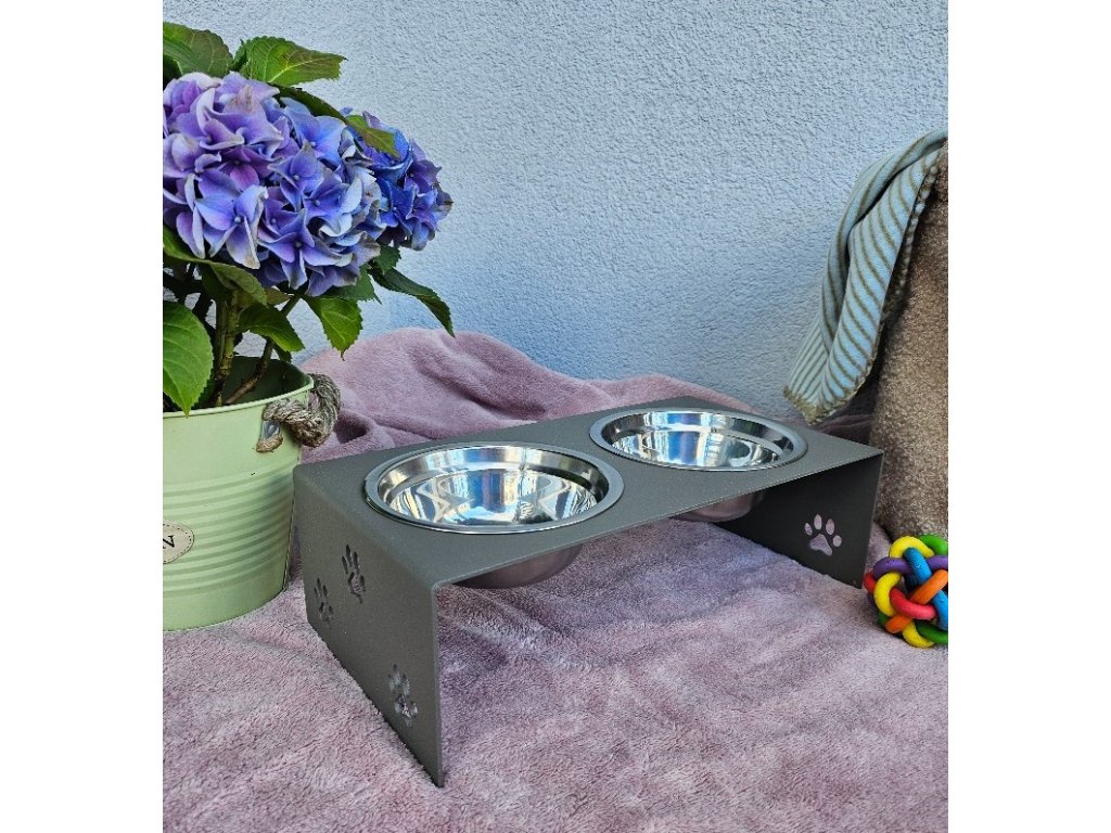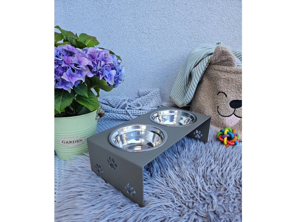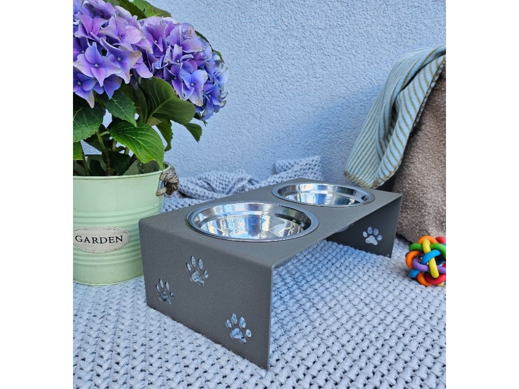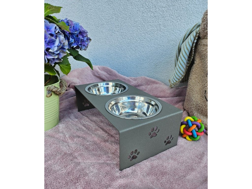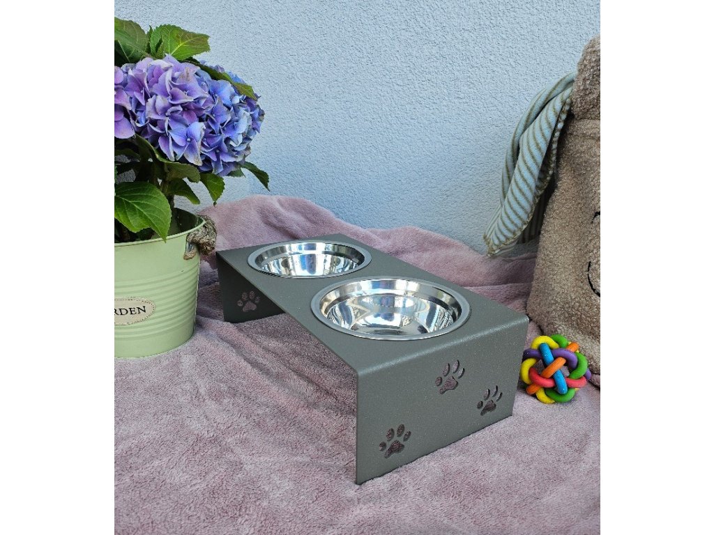 HafBar „S pacičkami“ – kovový stojan na dvě misky pro psy, velikost S (zeleno-šedá)