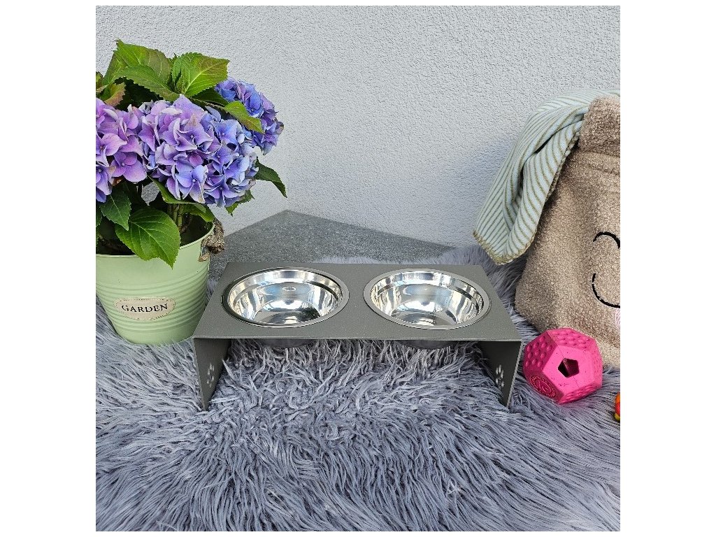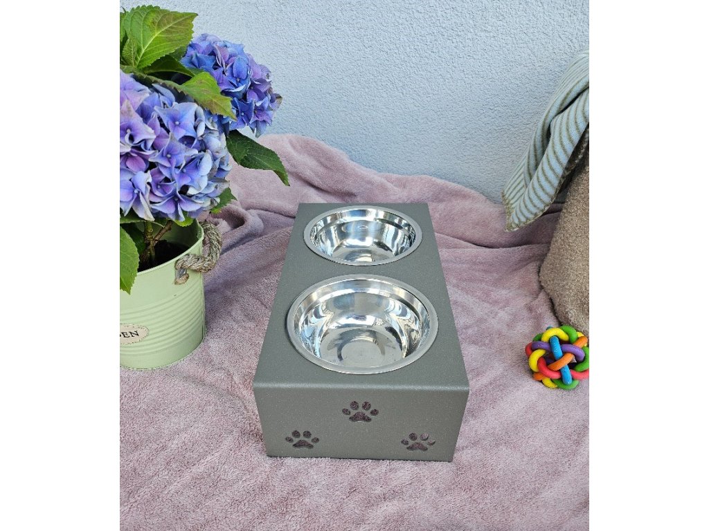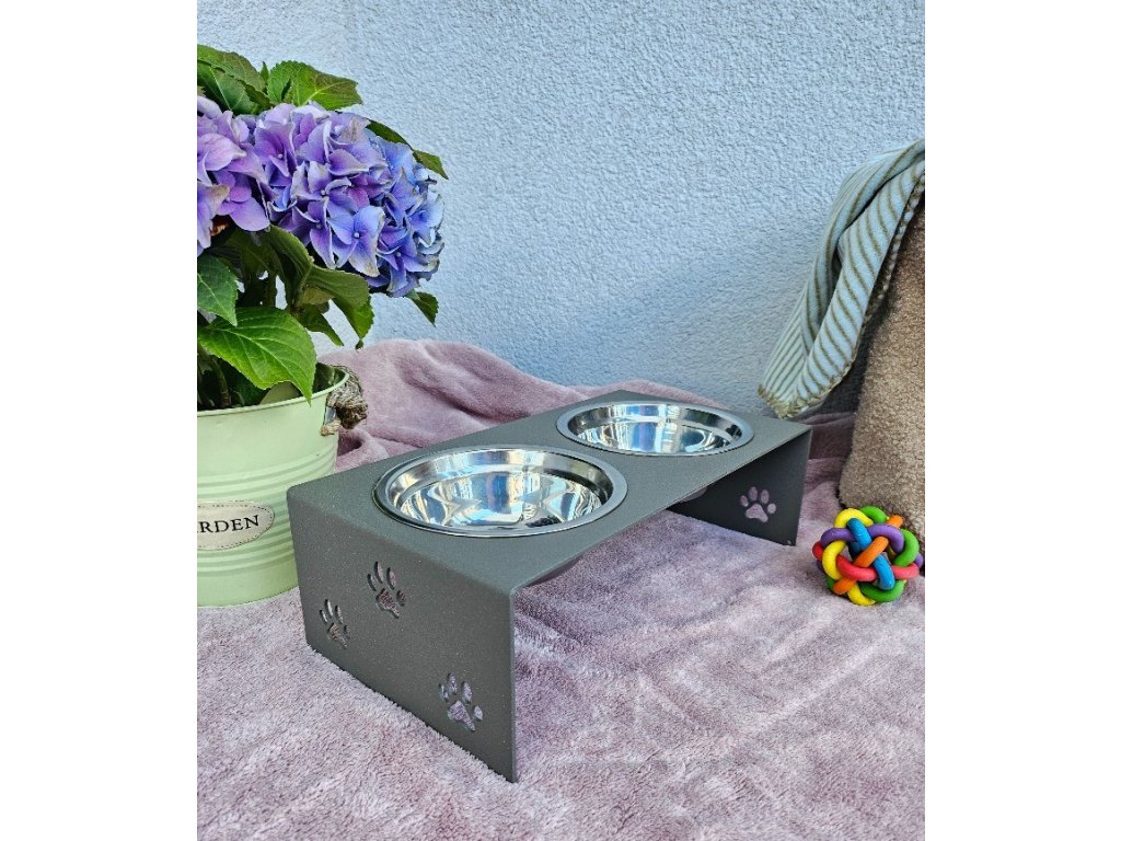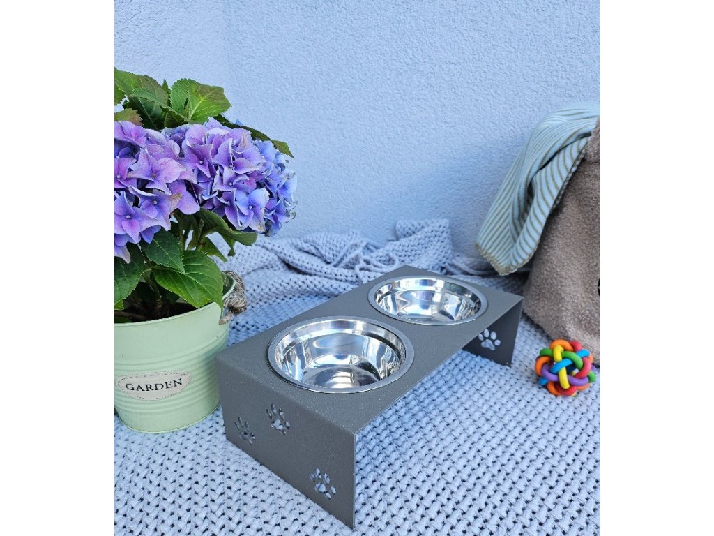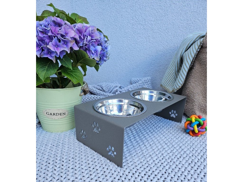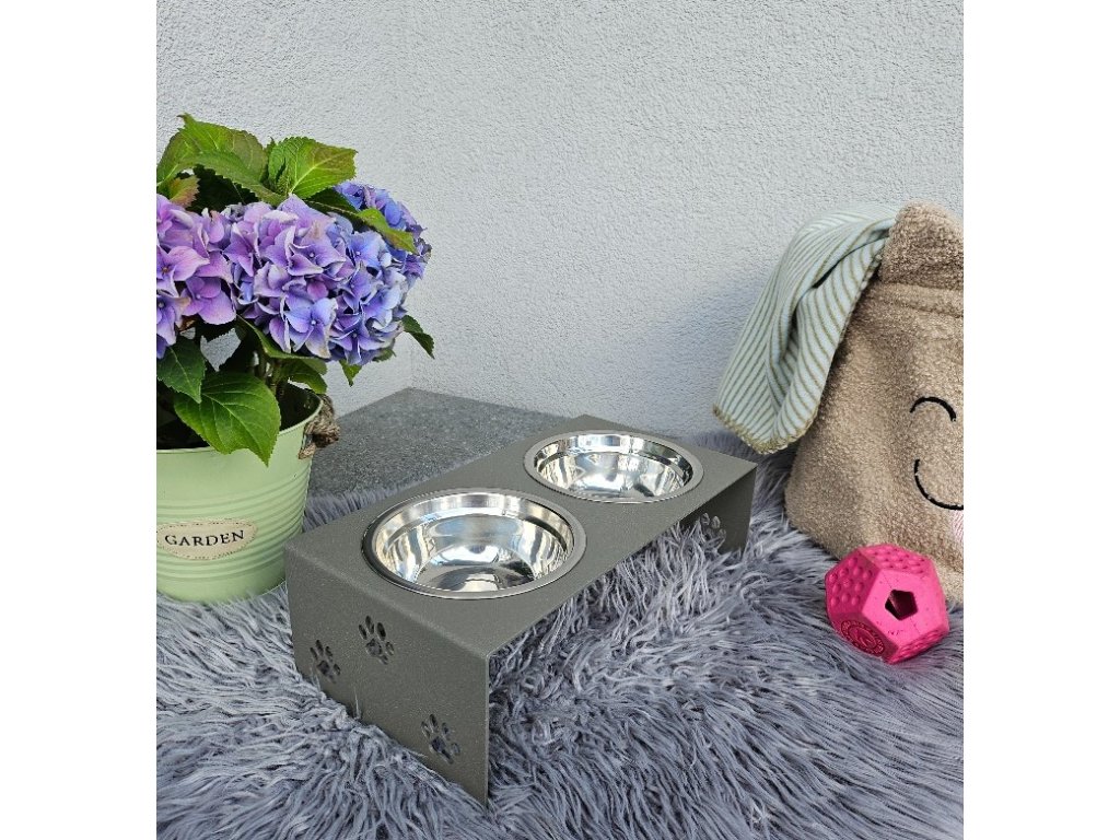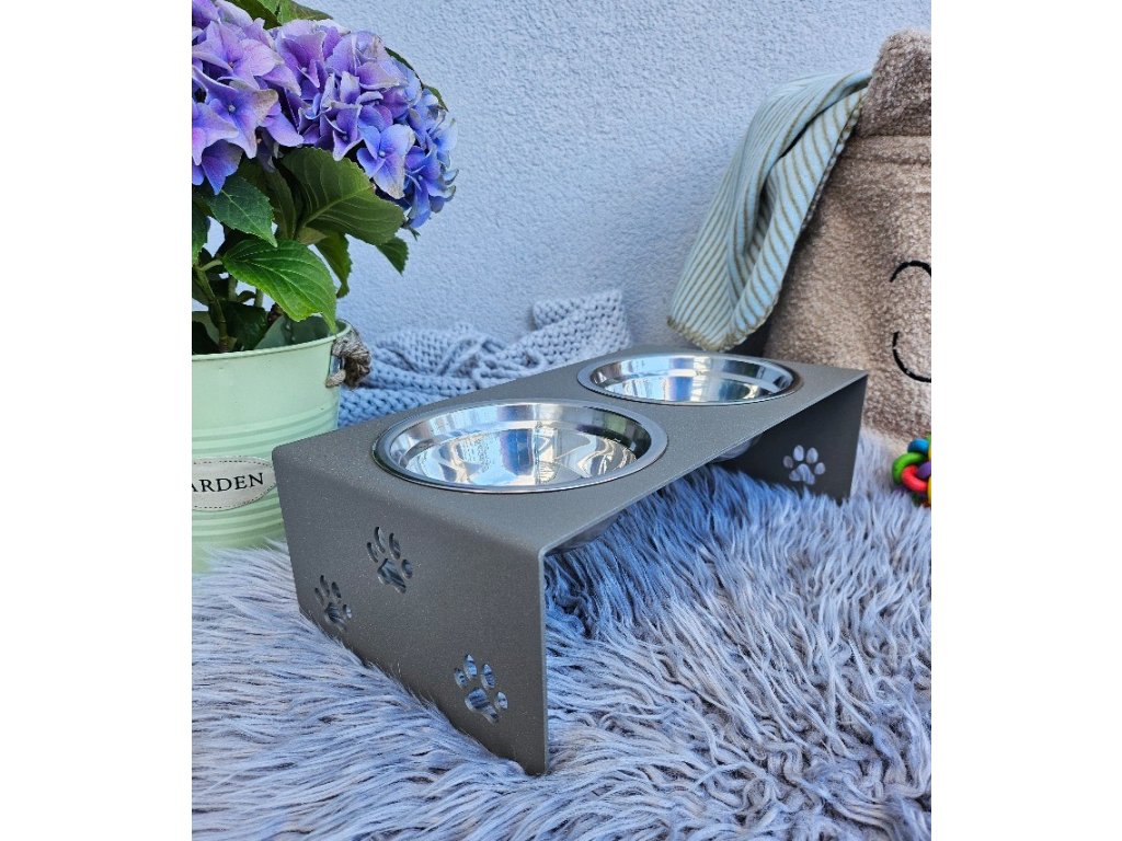 HafBar „S pacičkami“ – kovový stojan na dvě misky pro psy, velikost S (zeleno-šedá)
