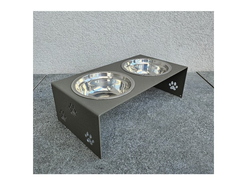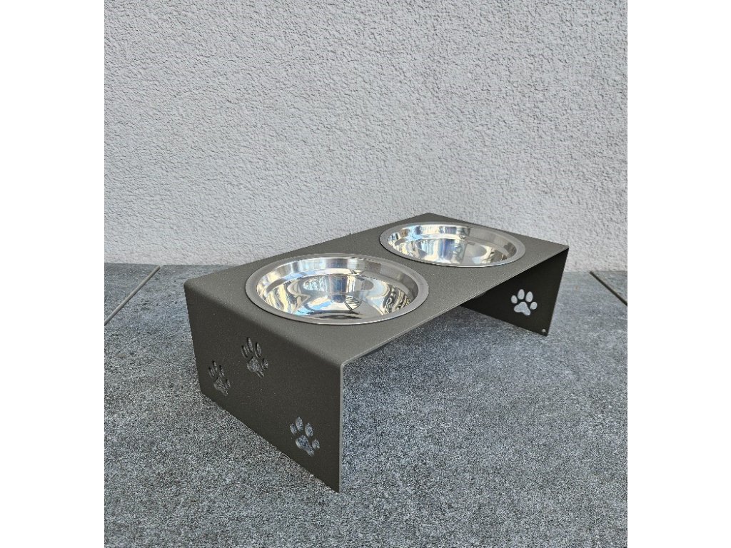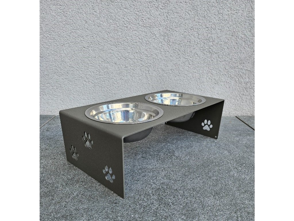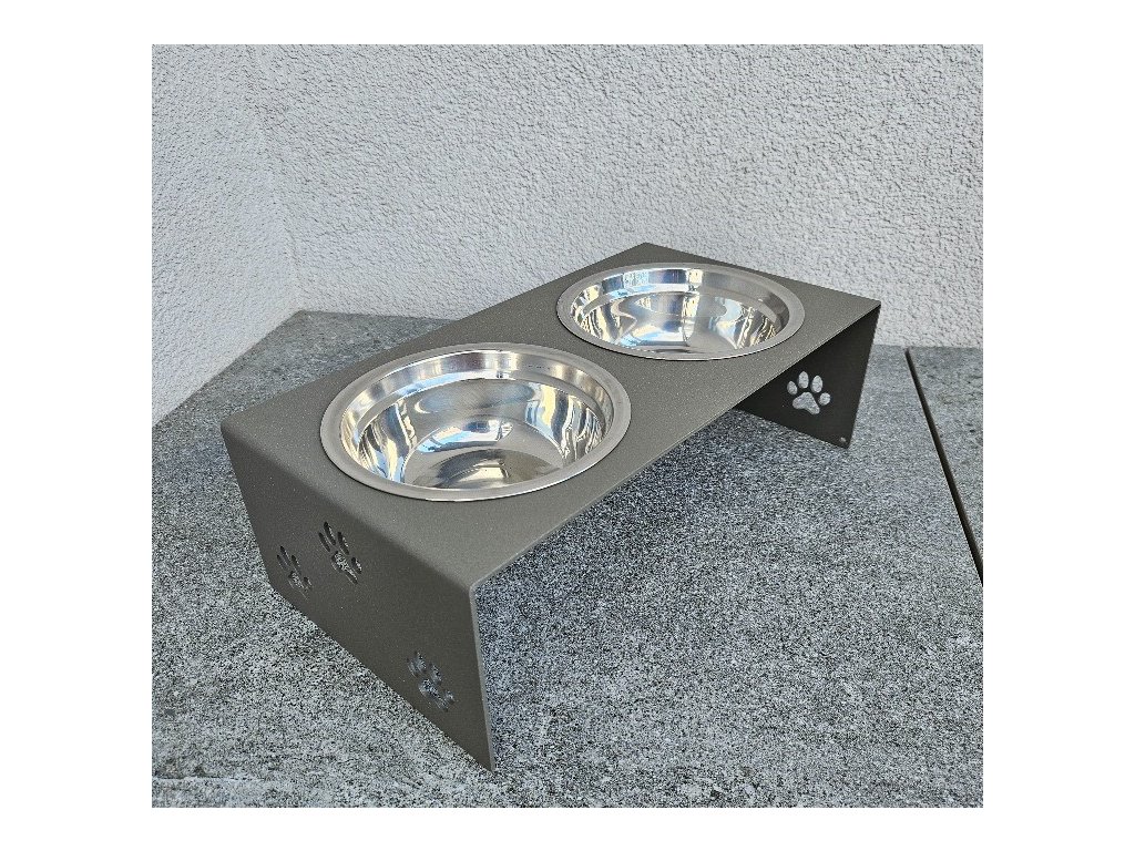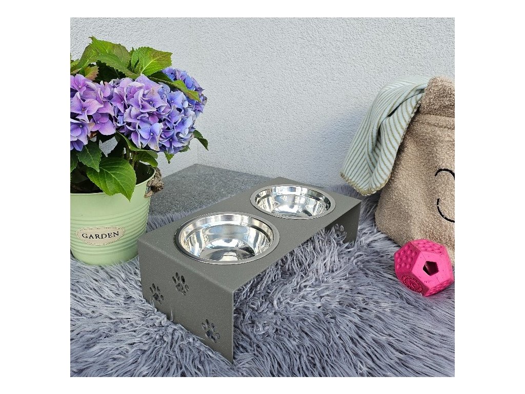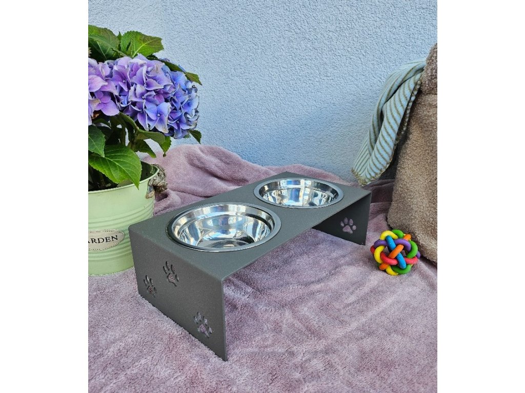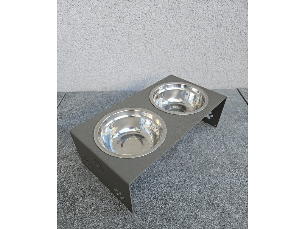 HafBar „S pacičkami“ – kovový stojan na dvě misky pro psy, velikost S (zeleno-šedá)