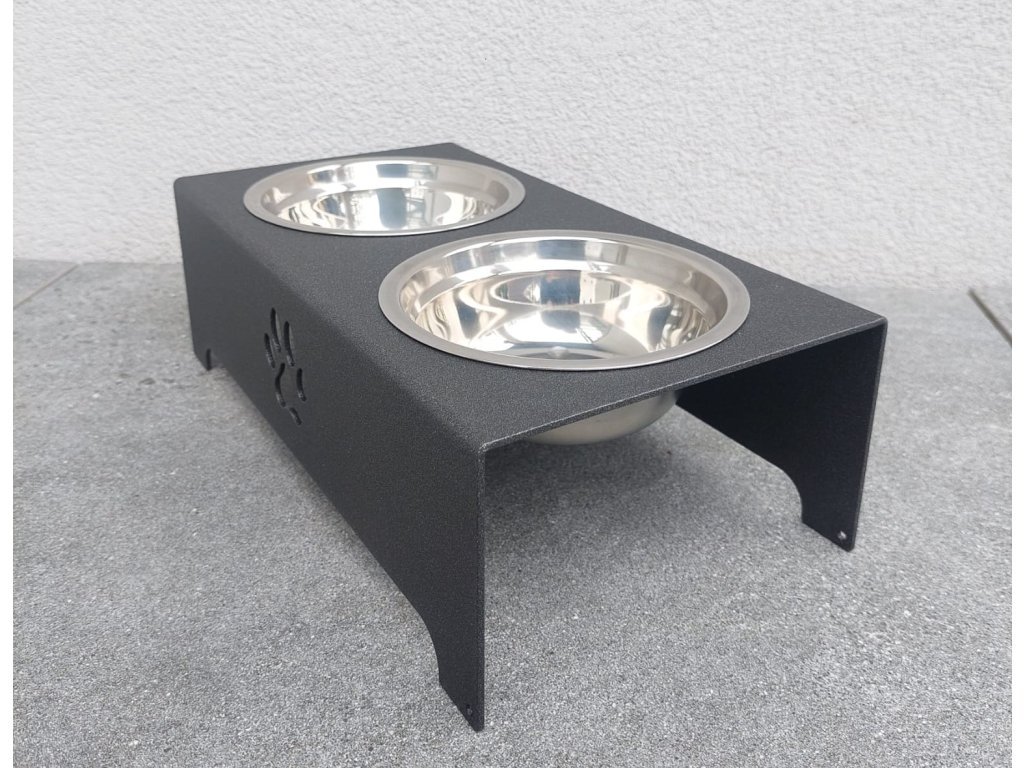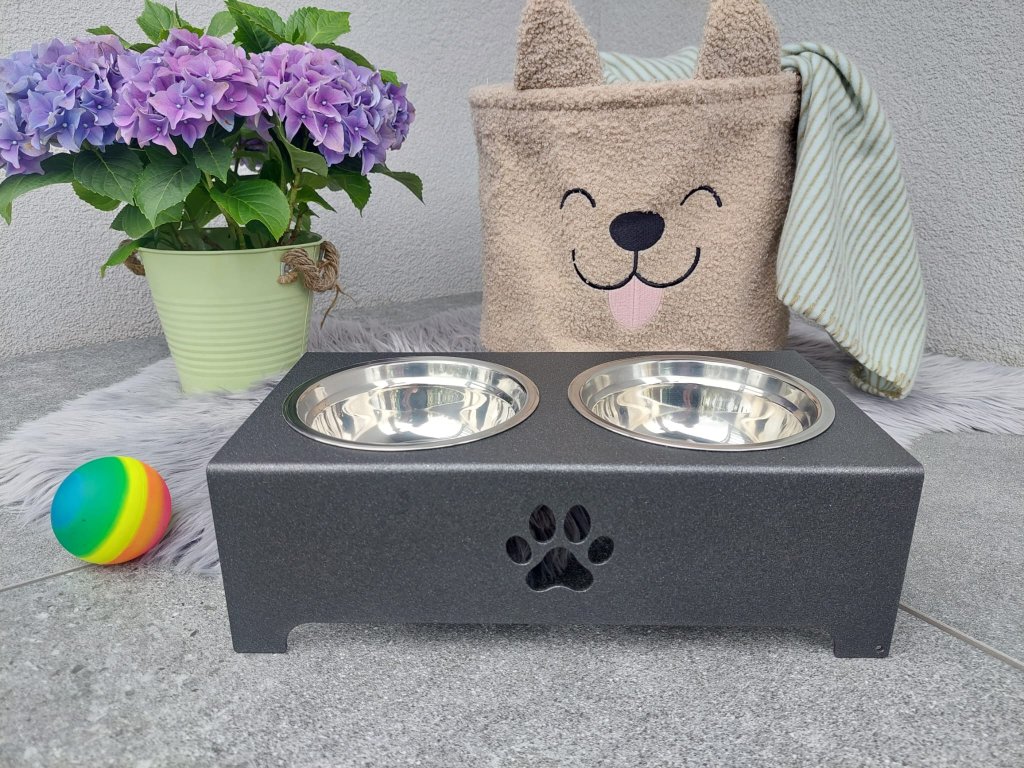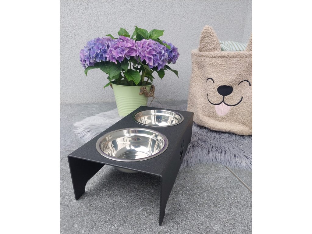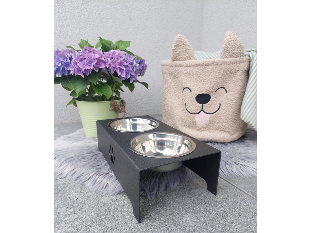 HafBar „S pacičkou“ – kovový stojan na dvě misky pro psy, velikost S (kovářská)