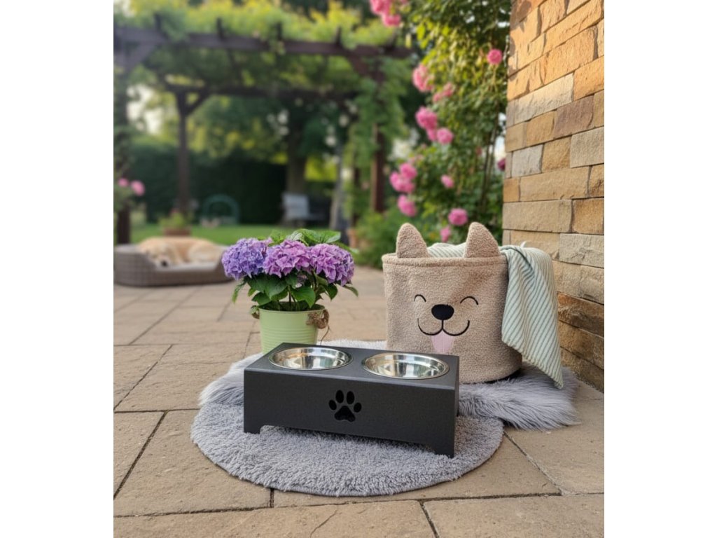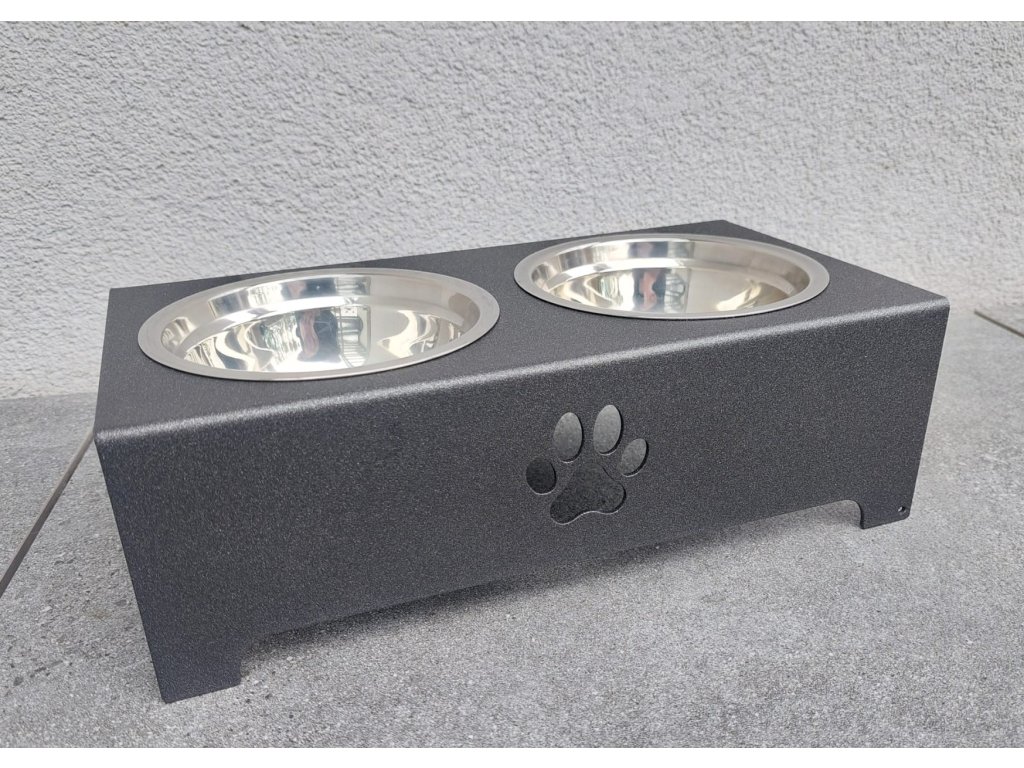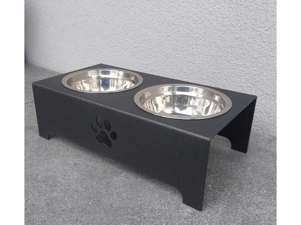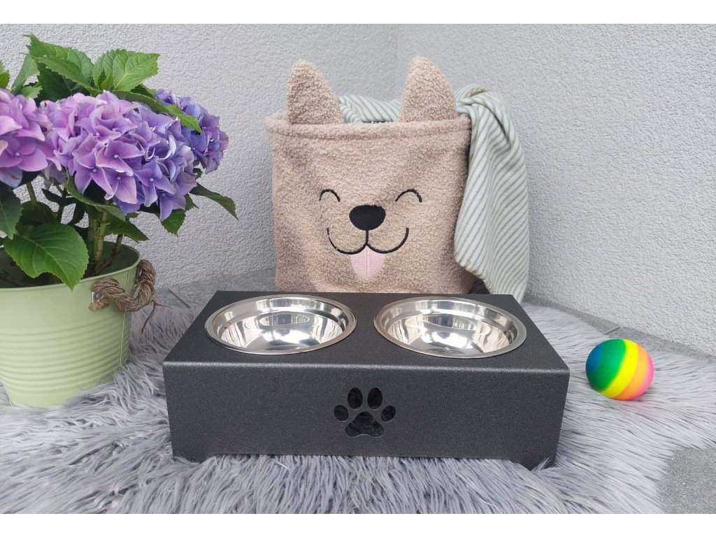 HafBar „S pacičkou“ – kovový stojan na dvě misky pro psy, velikost S (kovářská)