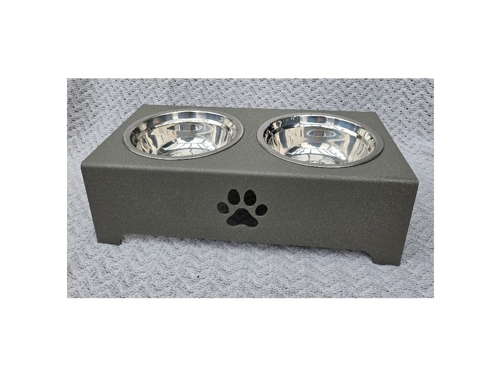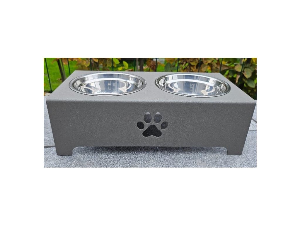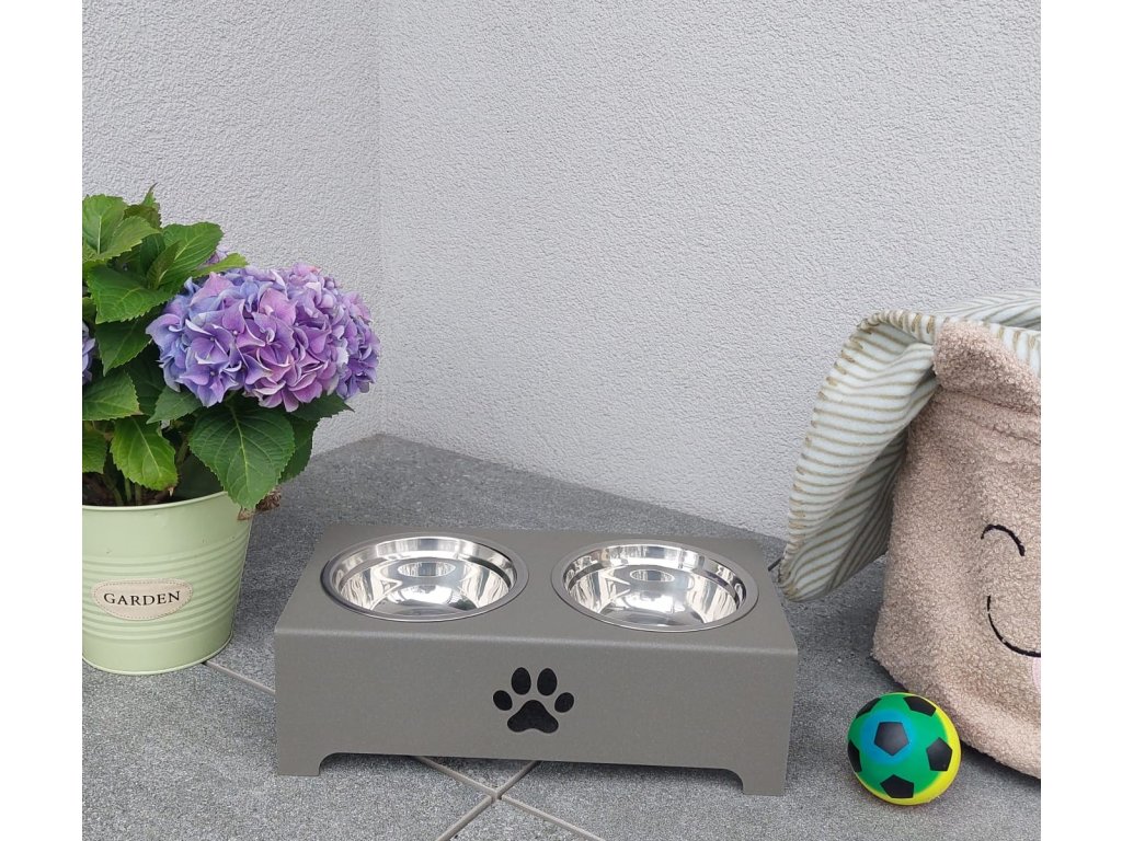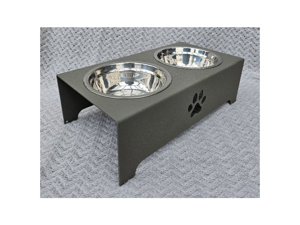 HafBar „S pacičkou“ – kovový stojan na dvě misky pro psy, velikost S (zeleno-šedá)