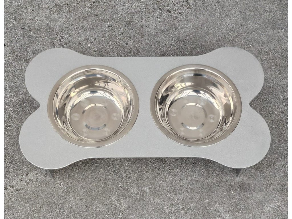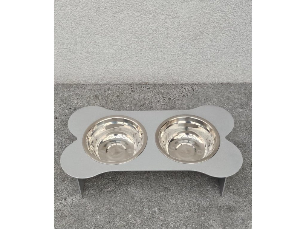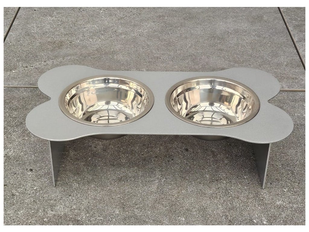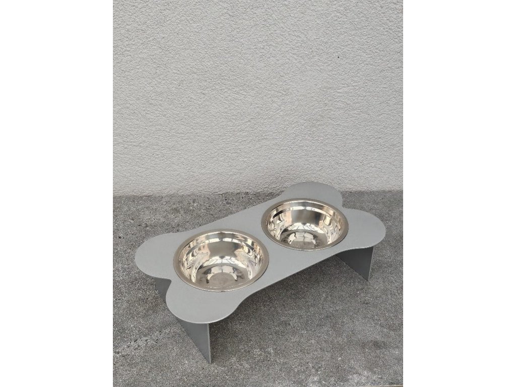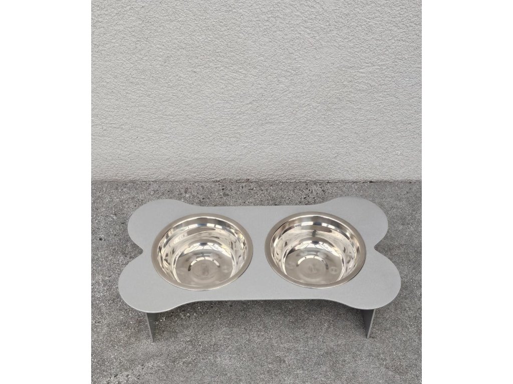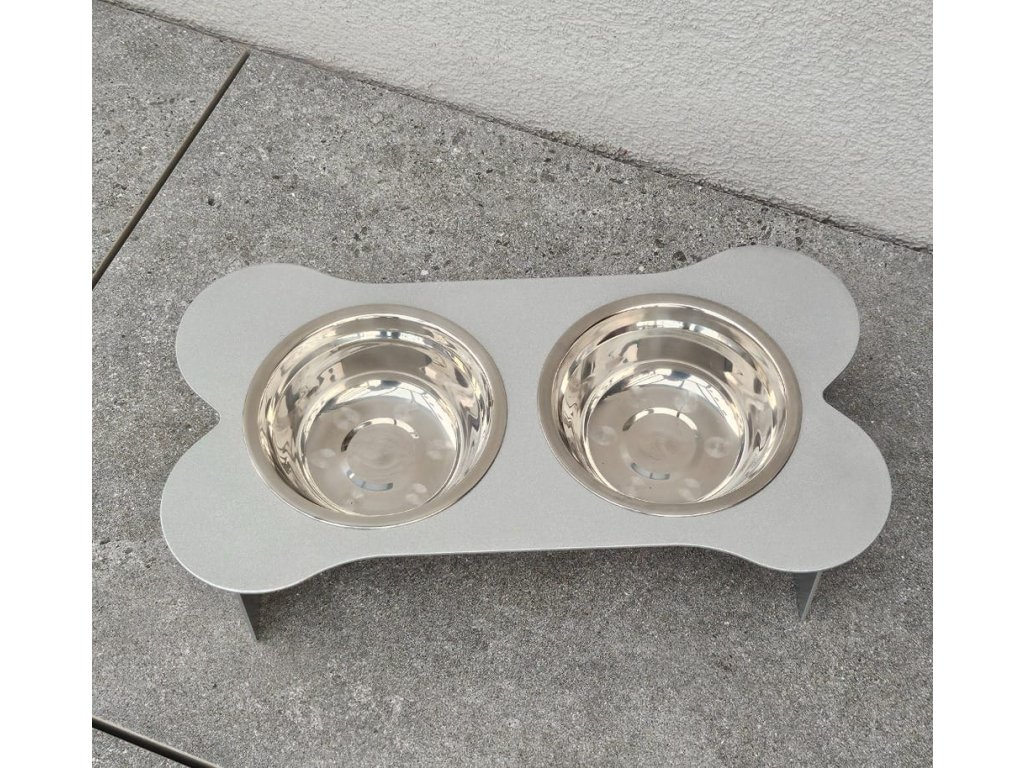 HafBar „Kost“ – kovový stojan na dvě misky pro psy, velikost S (stříbrná)