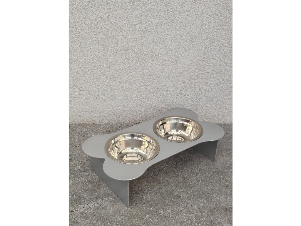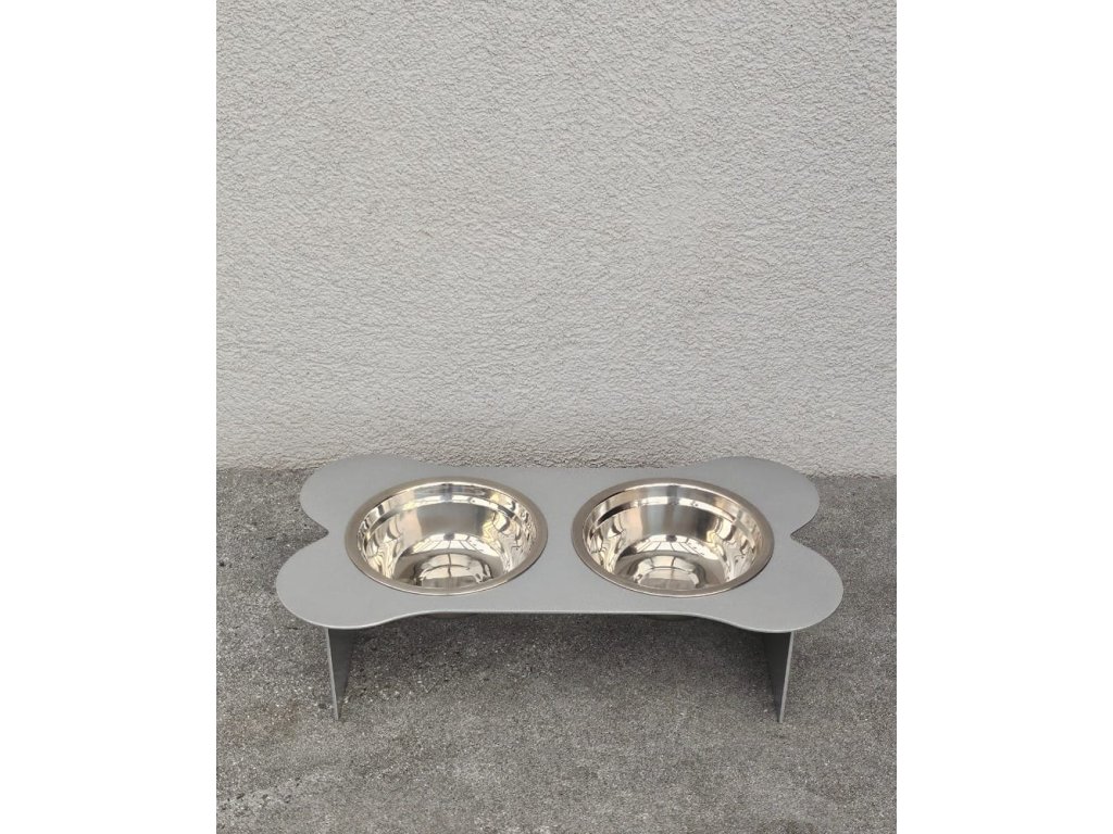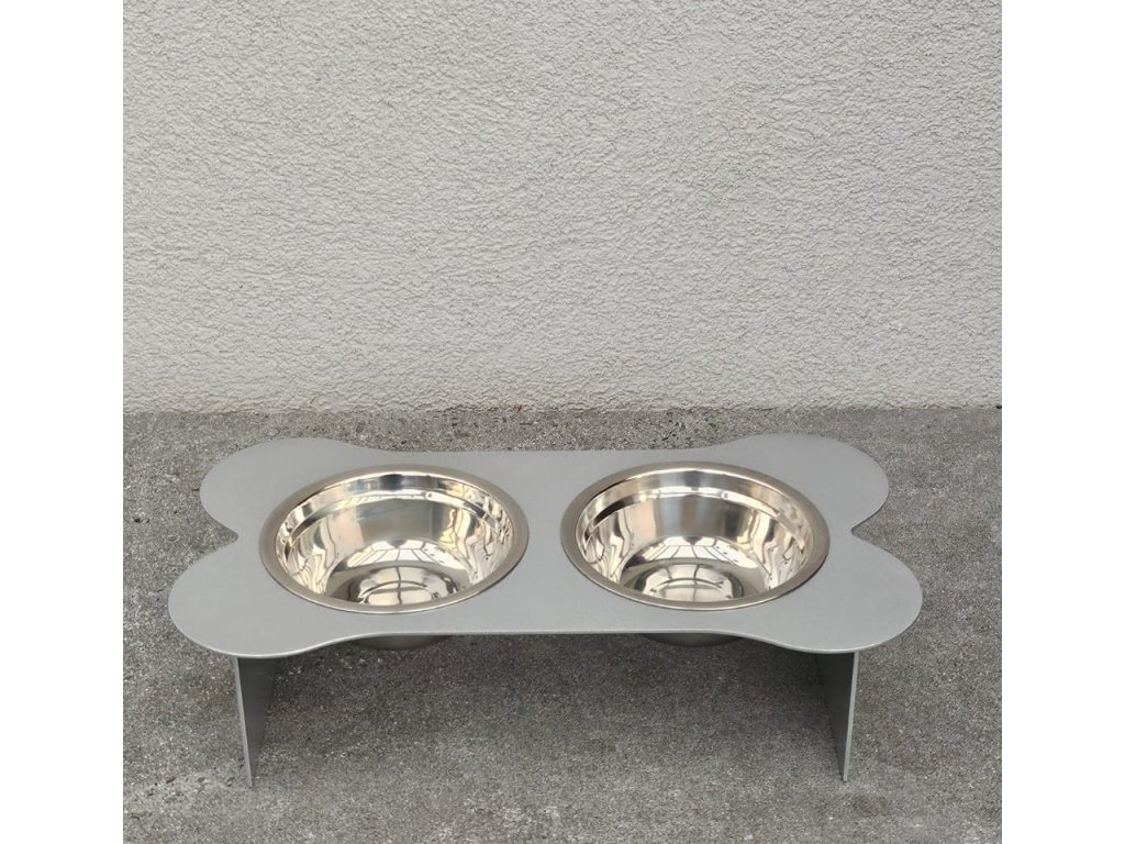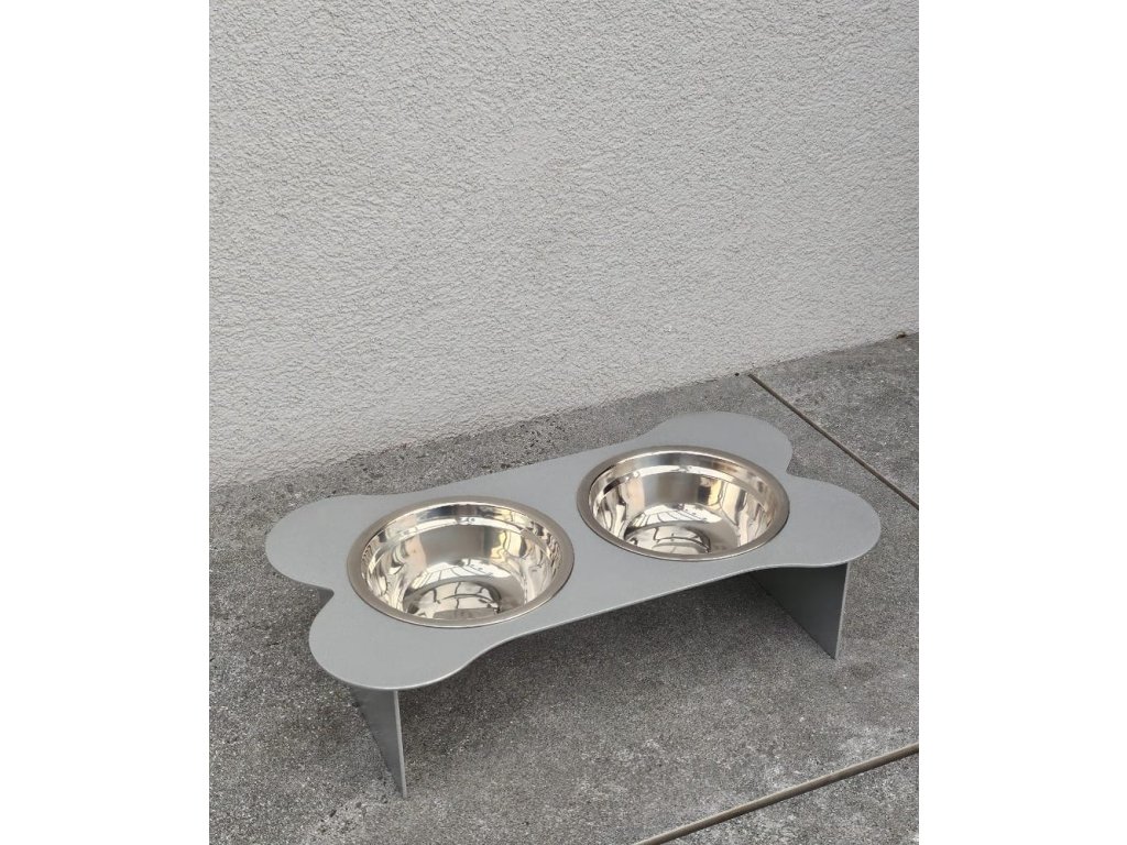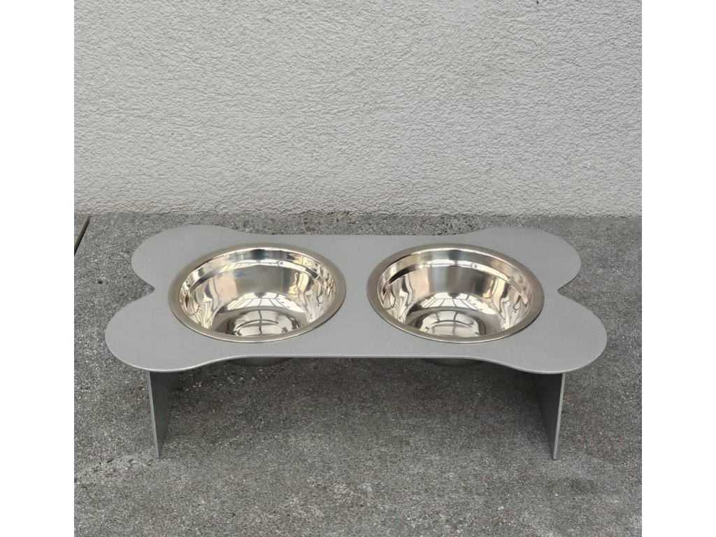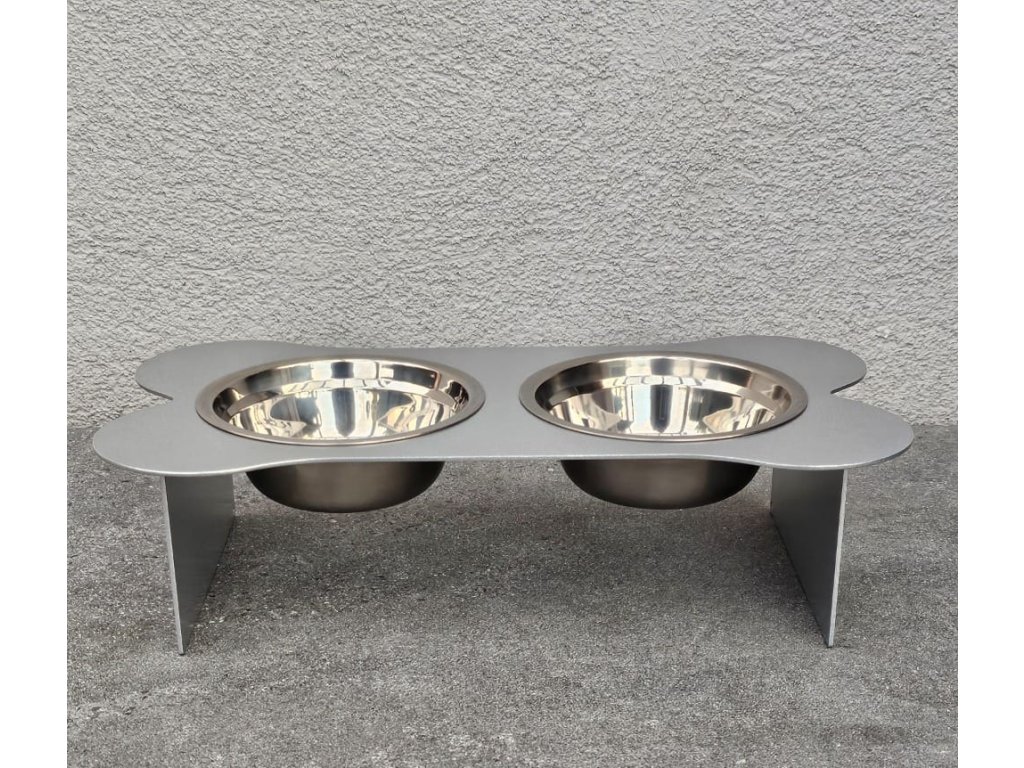 HafBar „Kost“ – kovový stojan na dvě misky pro psy, velikost S (stříbrná)