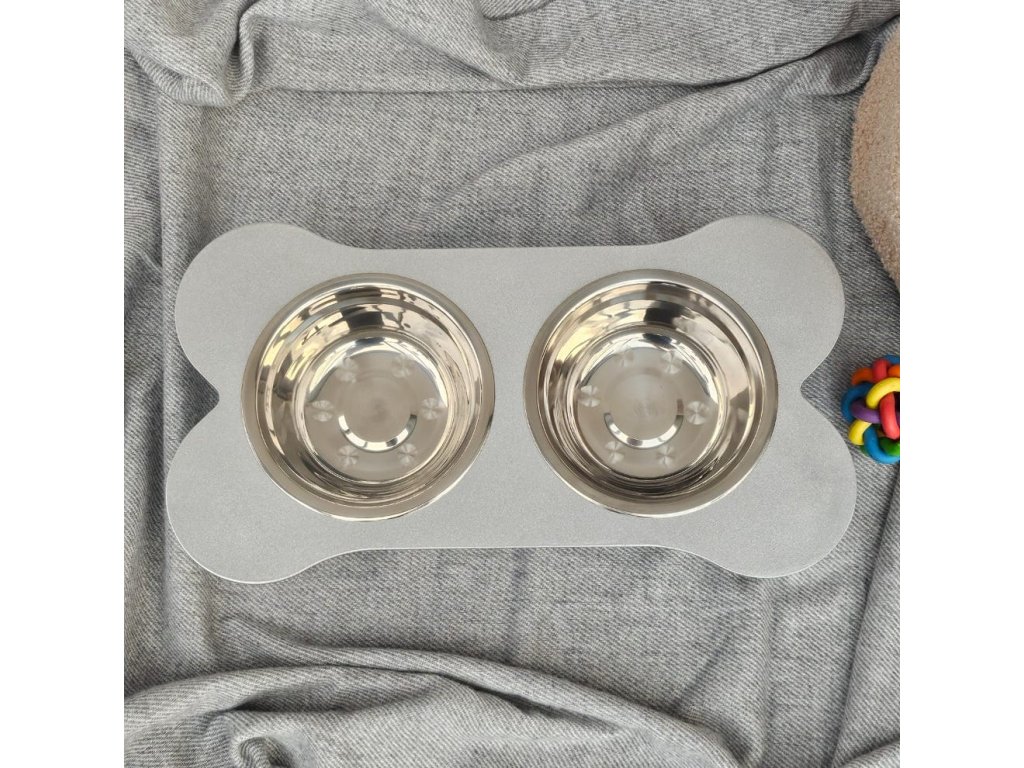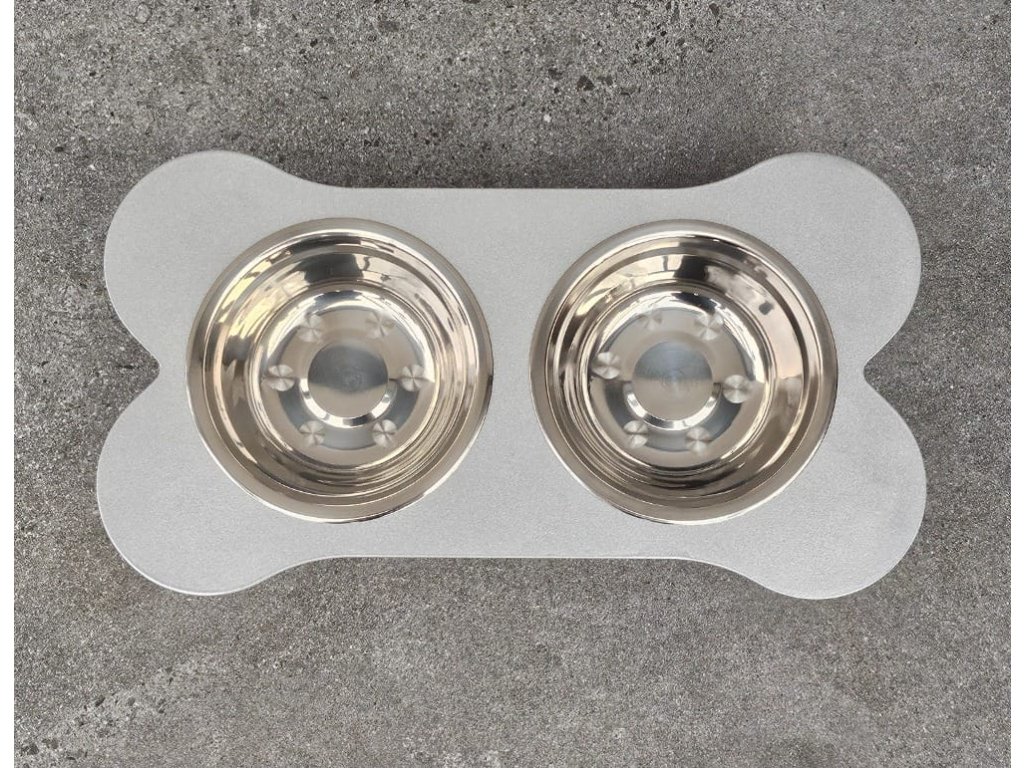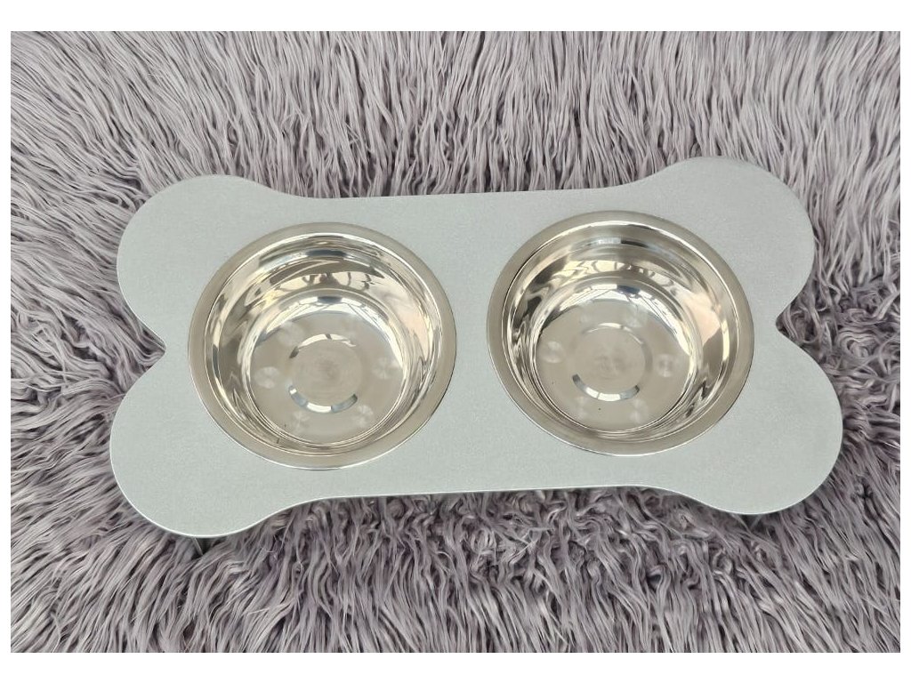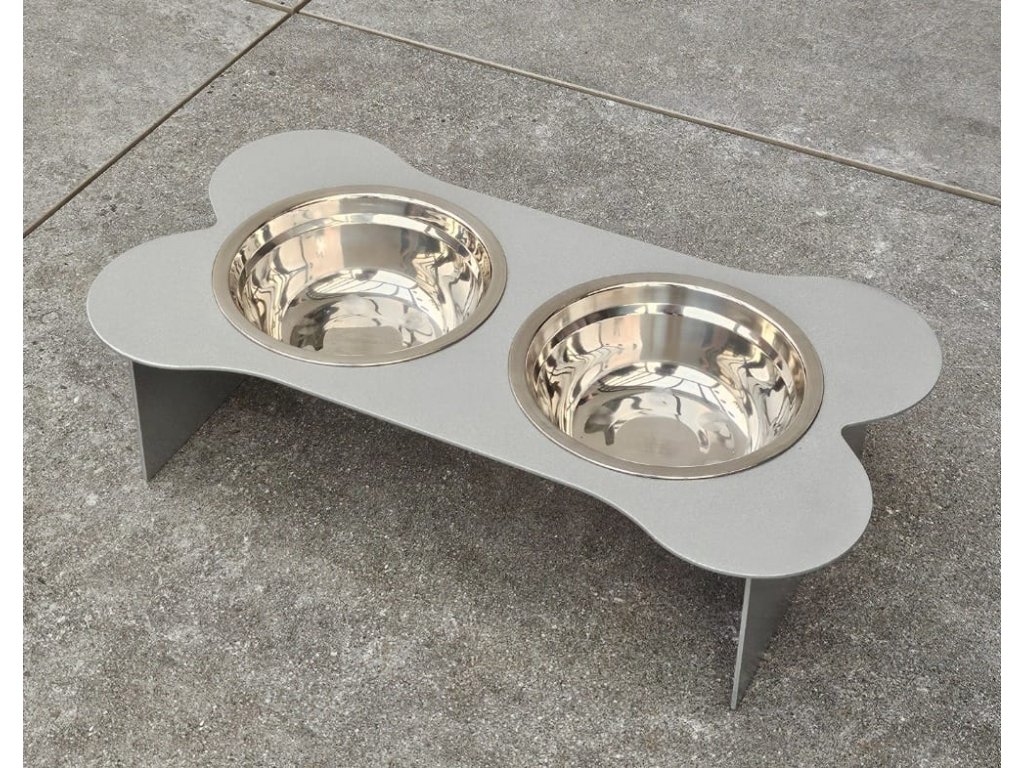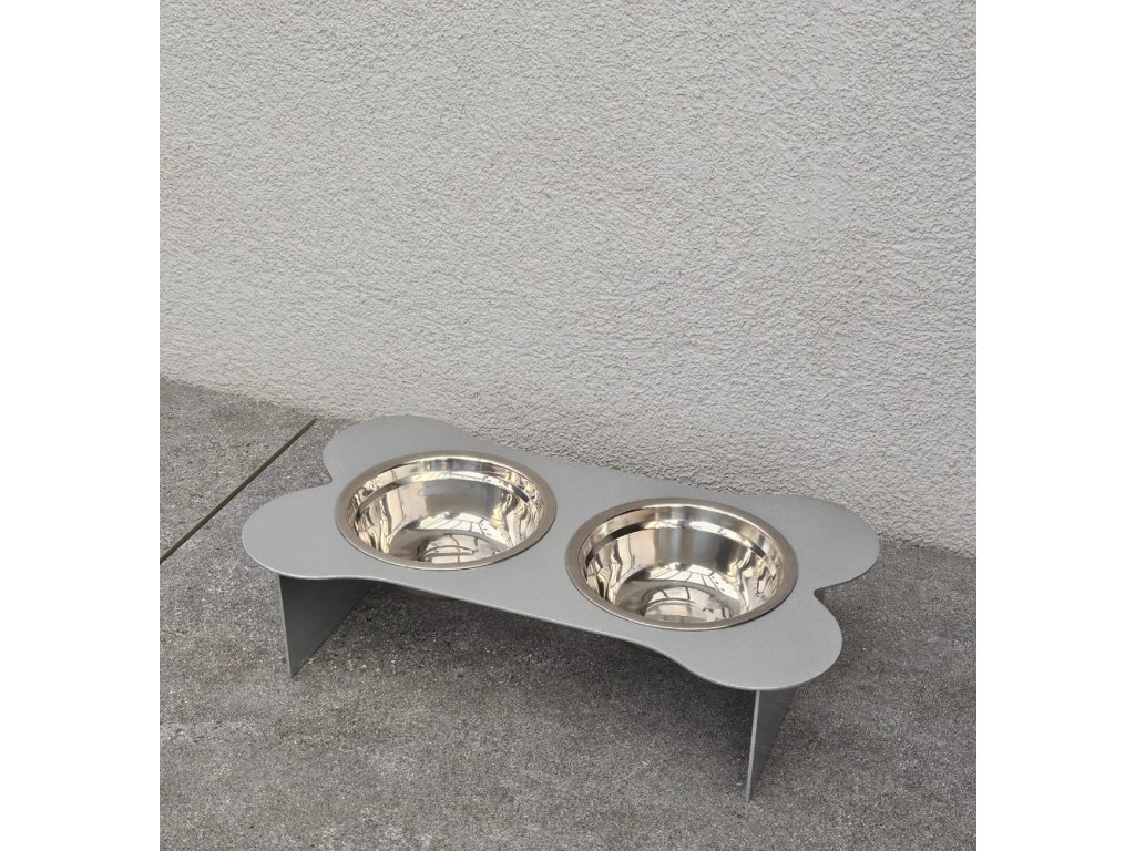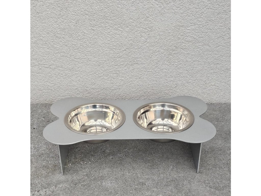 HafBar „Kost“ – kovový stojan na dvě misky pro psy, velikost S (stříbrná)
