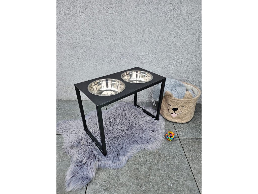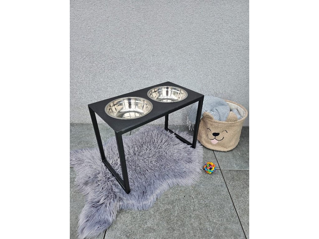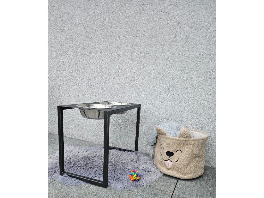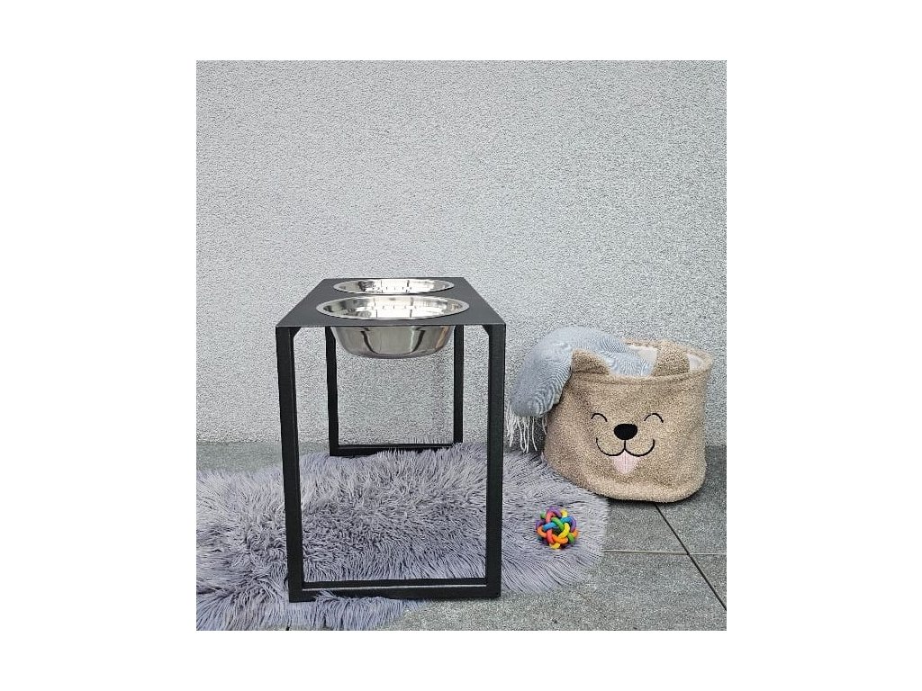 Decentní kovový stojan na misky HafBar. Jednoduchý vzhled, pevná konstrukce a bezpečný materiál pro pohodlné a zdravé stolování vašeho pejska. Barva - kovářská.