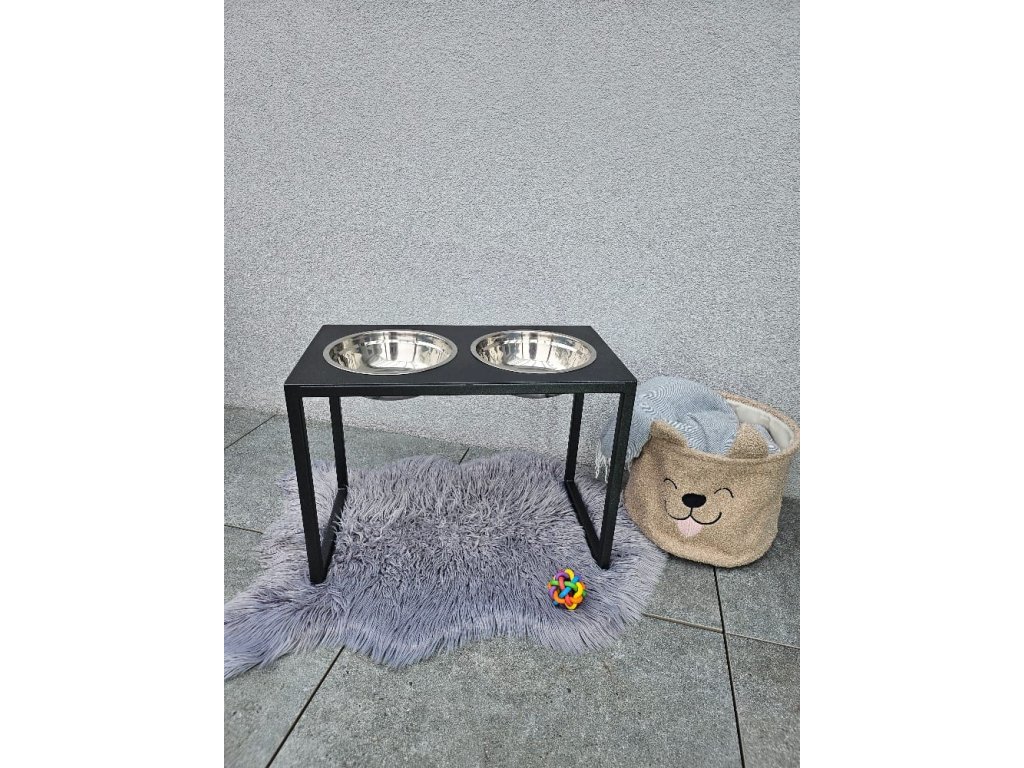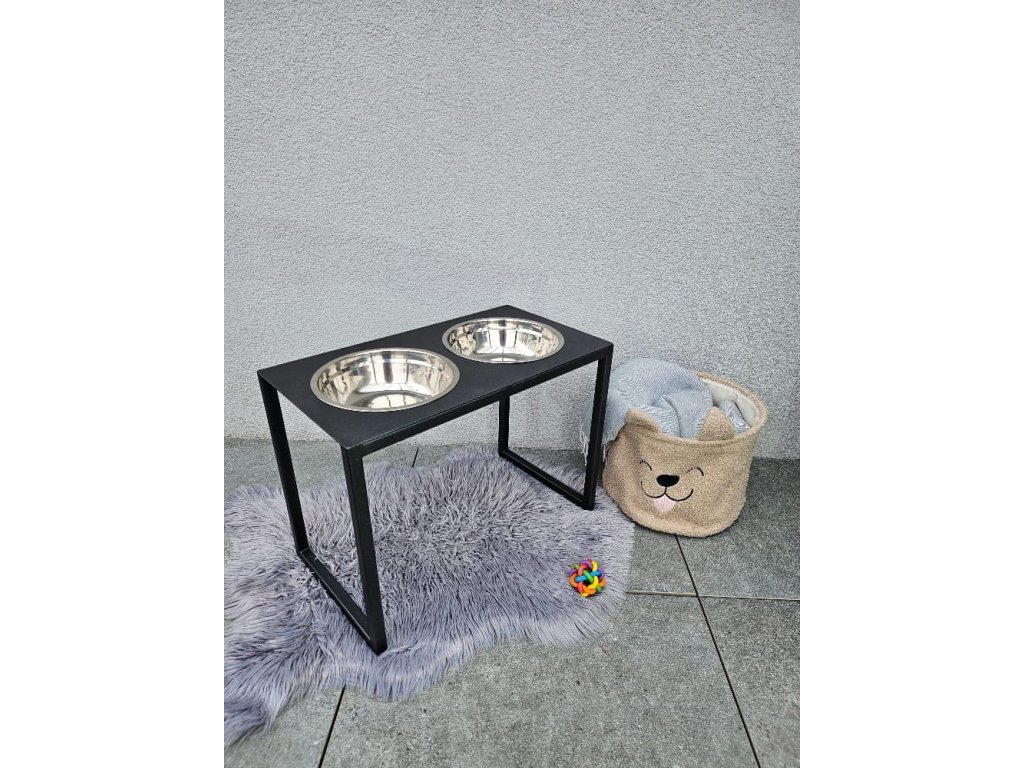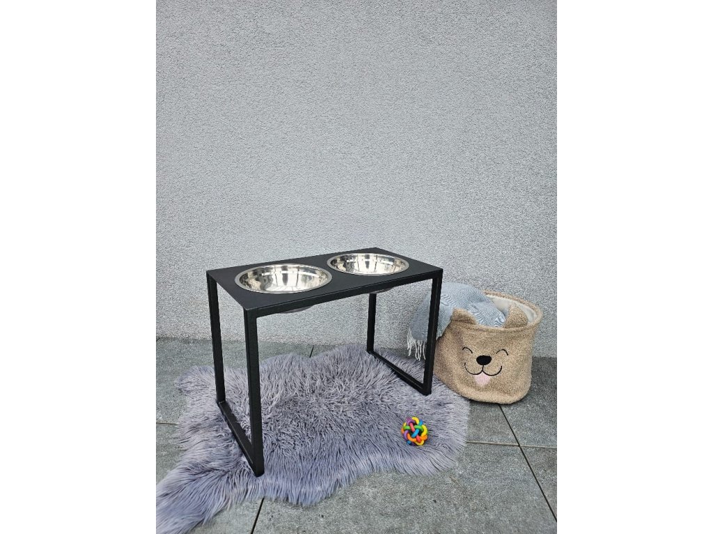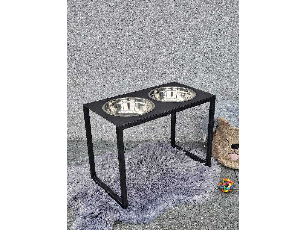 Decentní kovový stojan na misky HafBar. Jednoduchý vzhled, pevná konstrukce a bezpečný materiál pro pohodlné a zdravé stolování vašeho pejska. Barva - kovářská.