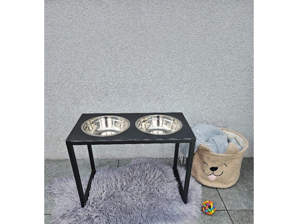 HafBar „Klasik“ – kovový stojan na dvě misky pro psy, velikost XL (kovářská)