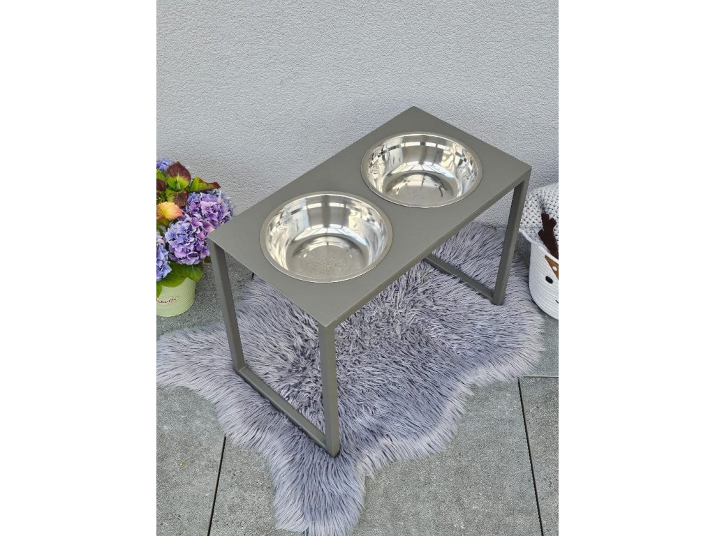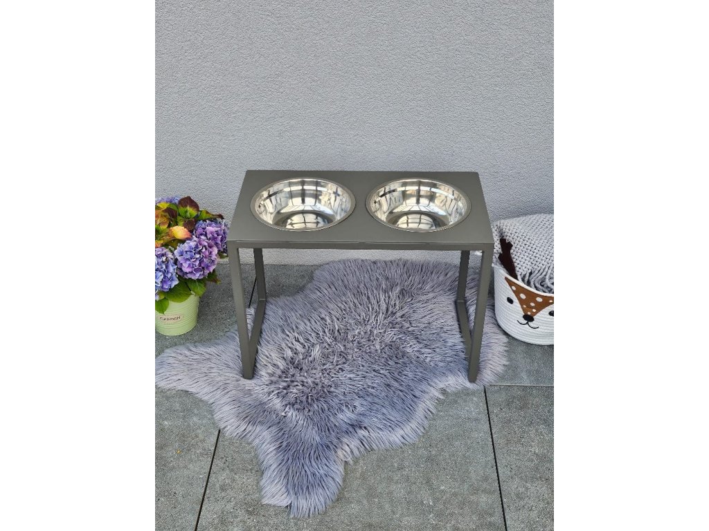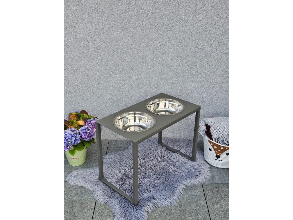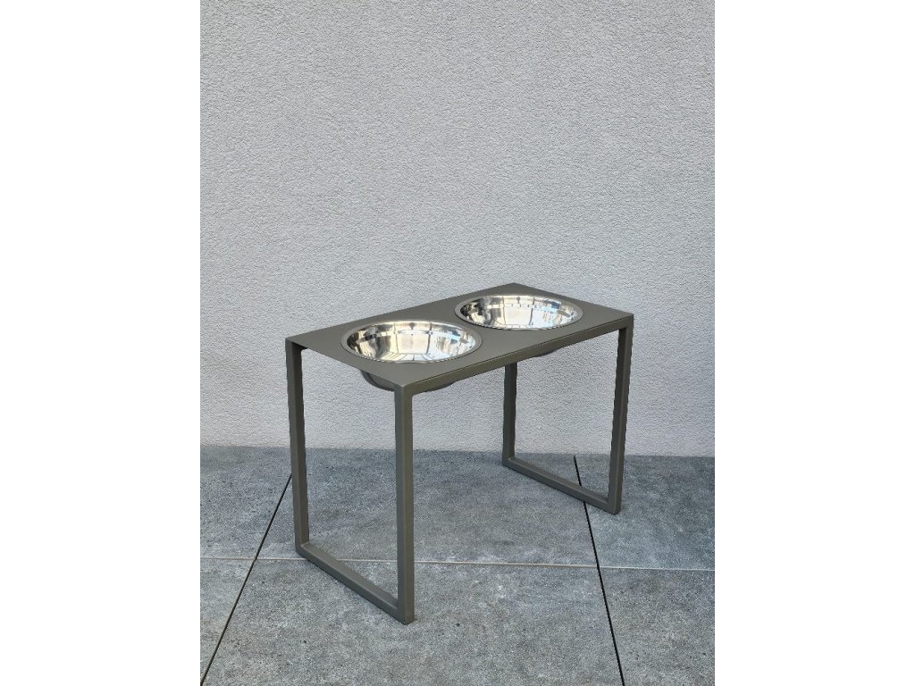 Decentní kovový stojan na misky HafBar. Jednoduchý vzhled, pevná konstrukce a bezpečný materiál pro pohodlné a zdravé stolování vašeho pejska. Barva - zeleno-šedá.