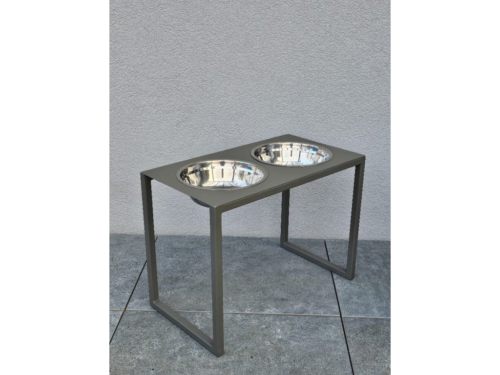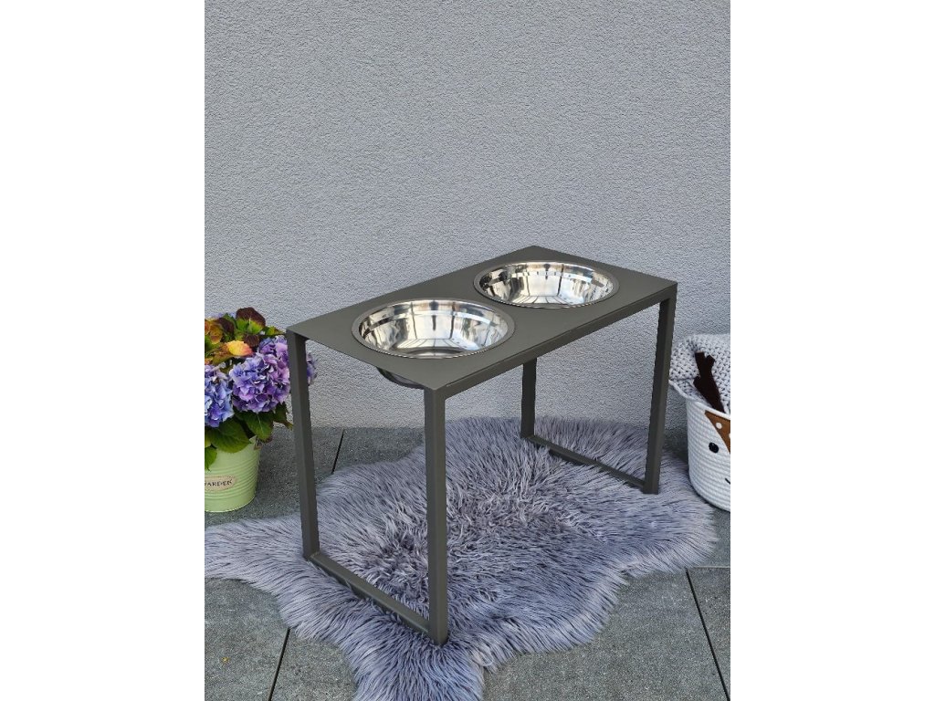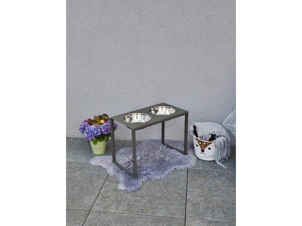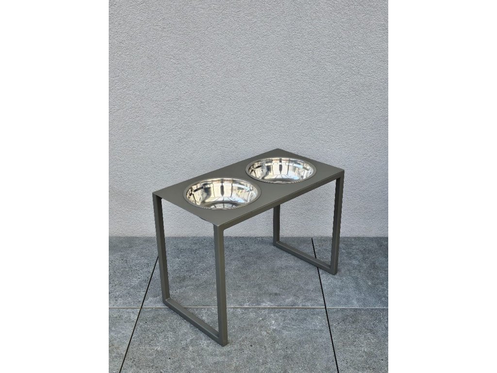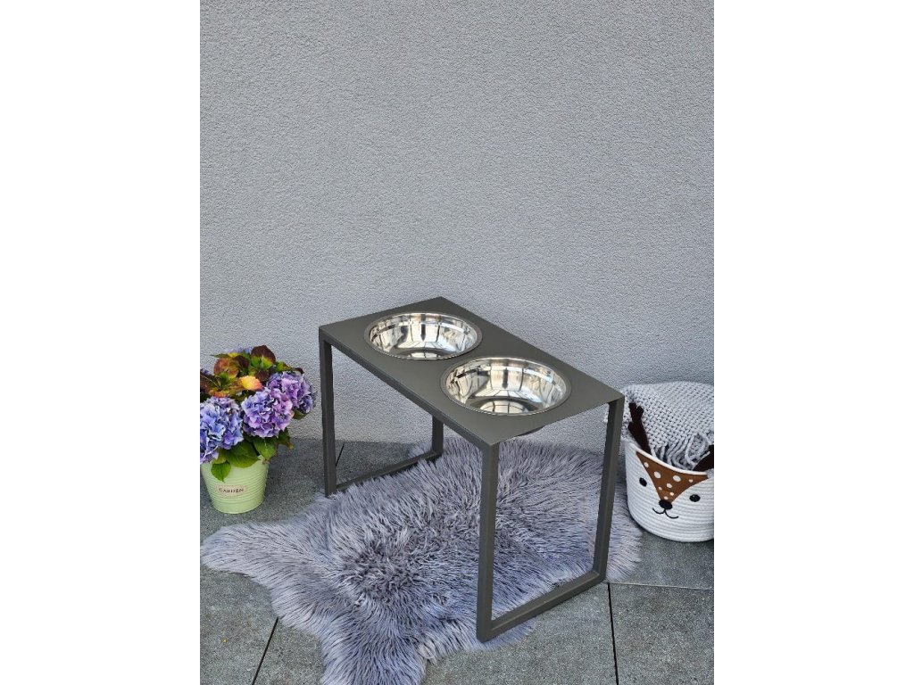 Decentní kovový stojan na misky HafBar. Jednoduchý vzhled, pevná konstrukce a bezpečný materiál pro pohodlné a zdravé stolování vašeho pejska. Barva - zeleno-šedá.