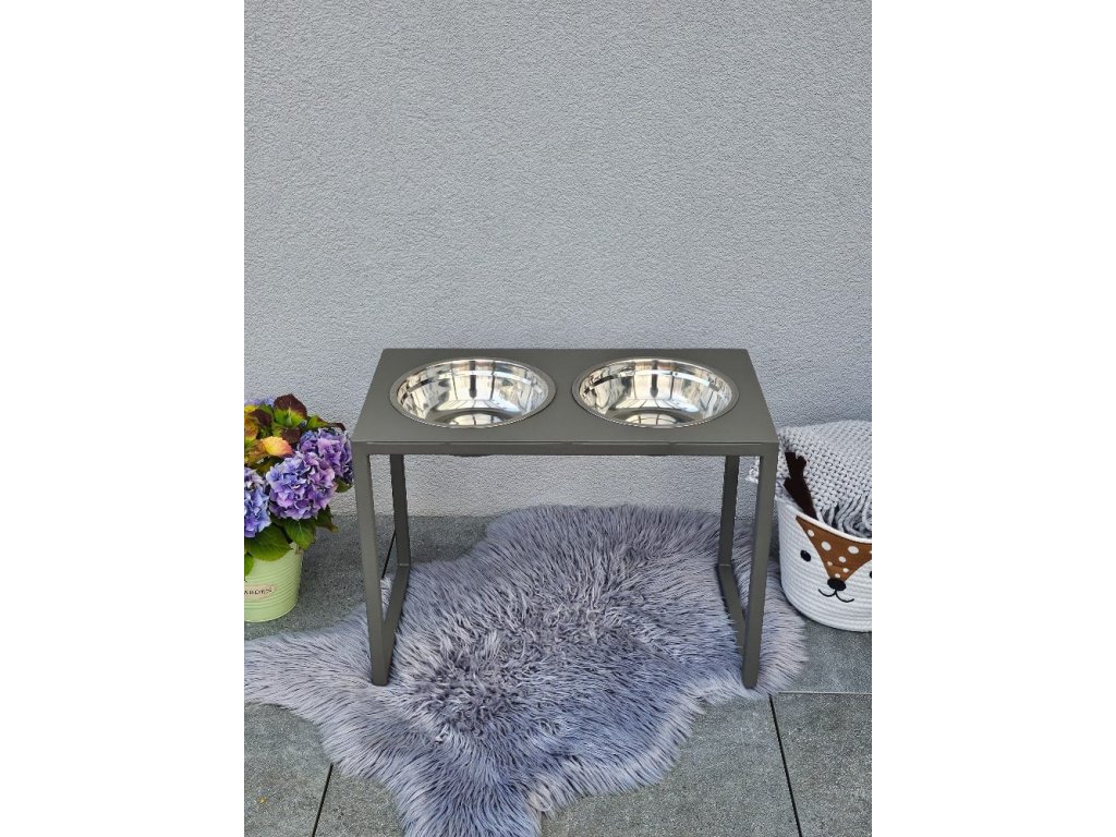 HafBar „Klasik“ – kovový stojan na dvě misky pro psy, velikost XL (zeleno-šedá)