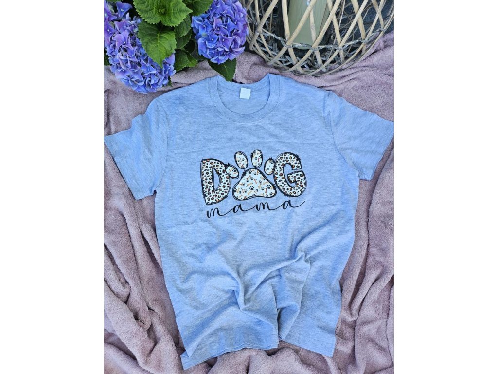 Šedé dámské tričko s potiskem "Dog mama", vyrobeno ze 100% bavlny. Jednoduché, ale stylové tričko s krátkým rukávem a kulatým výstřihem. Je skvělé pro volnočasové aktivity s vaším psím miláčkem.