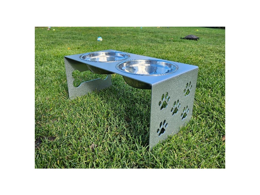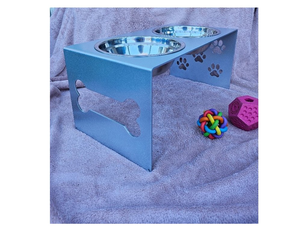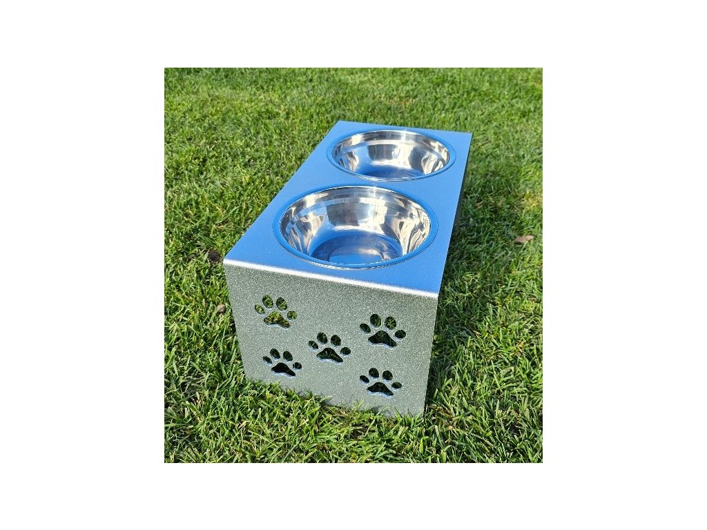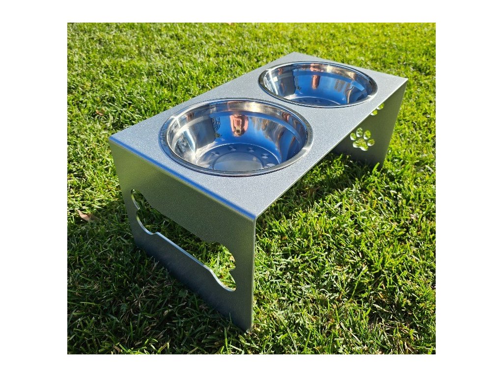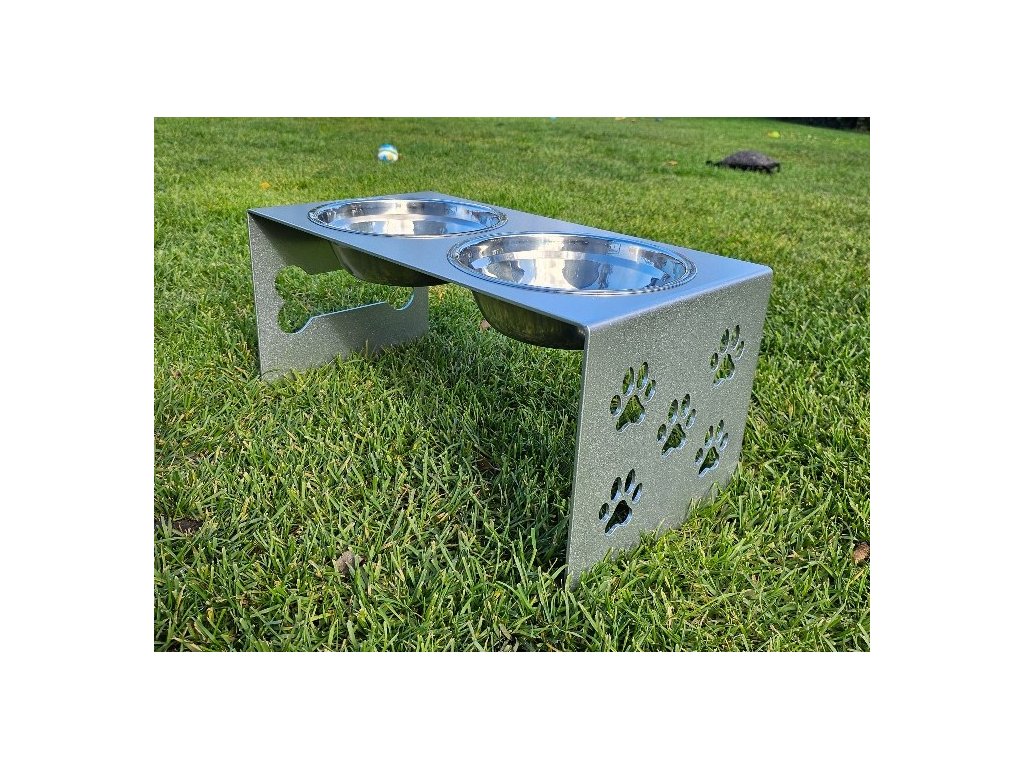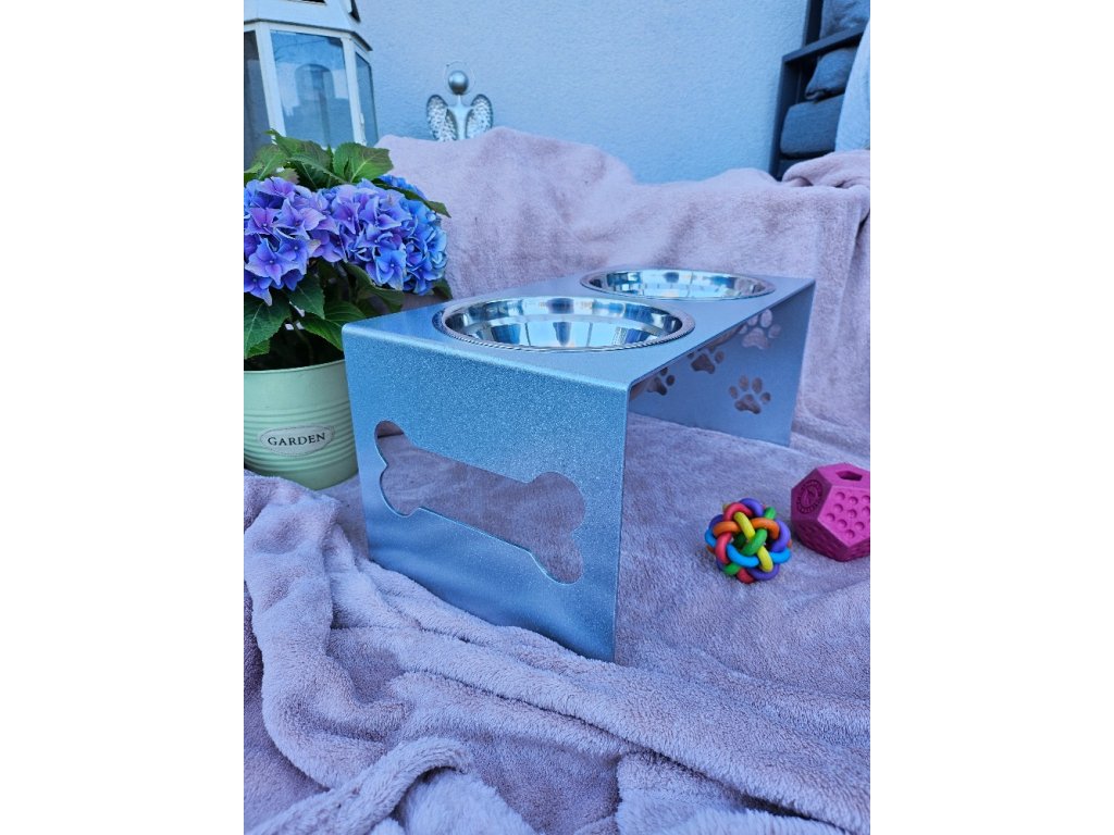 HafBar „Kost+pacičky“ – kovový stojan na dvě misky pro psy, velikost M (stříbrná)