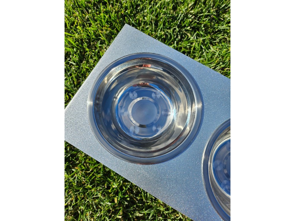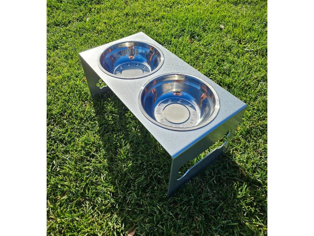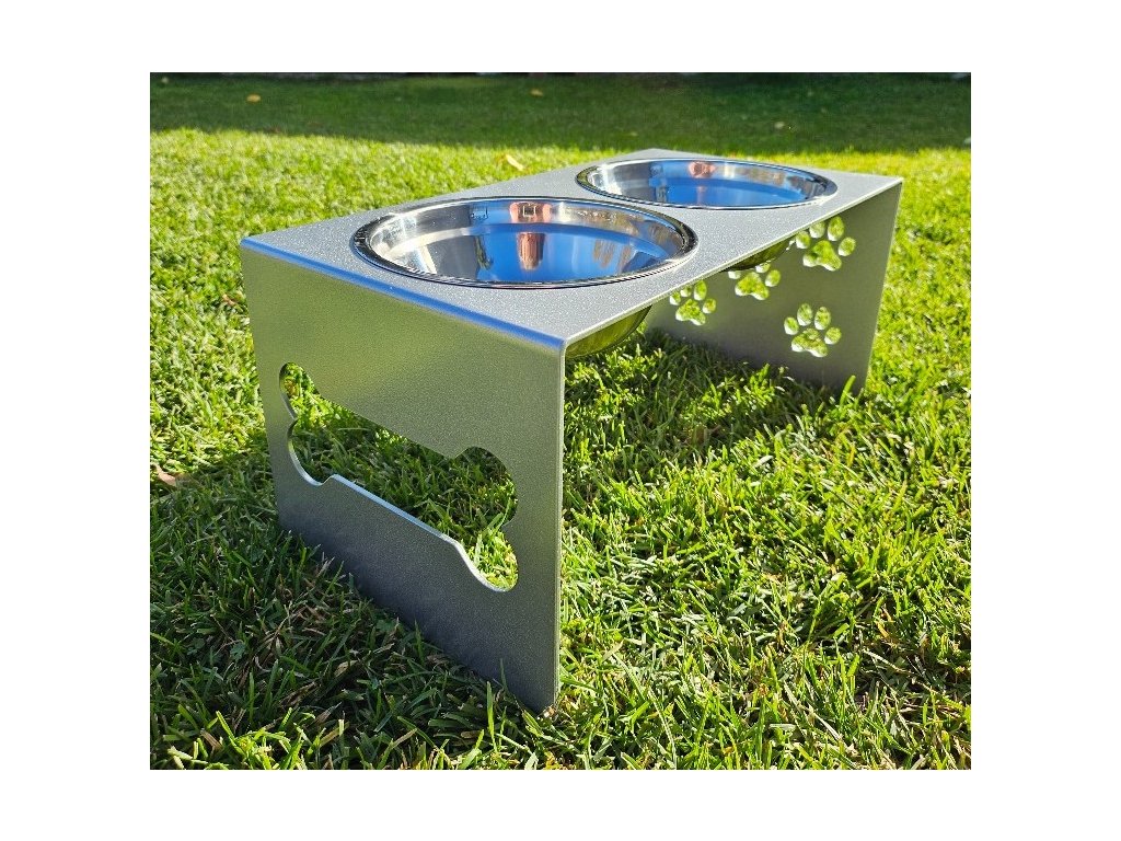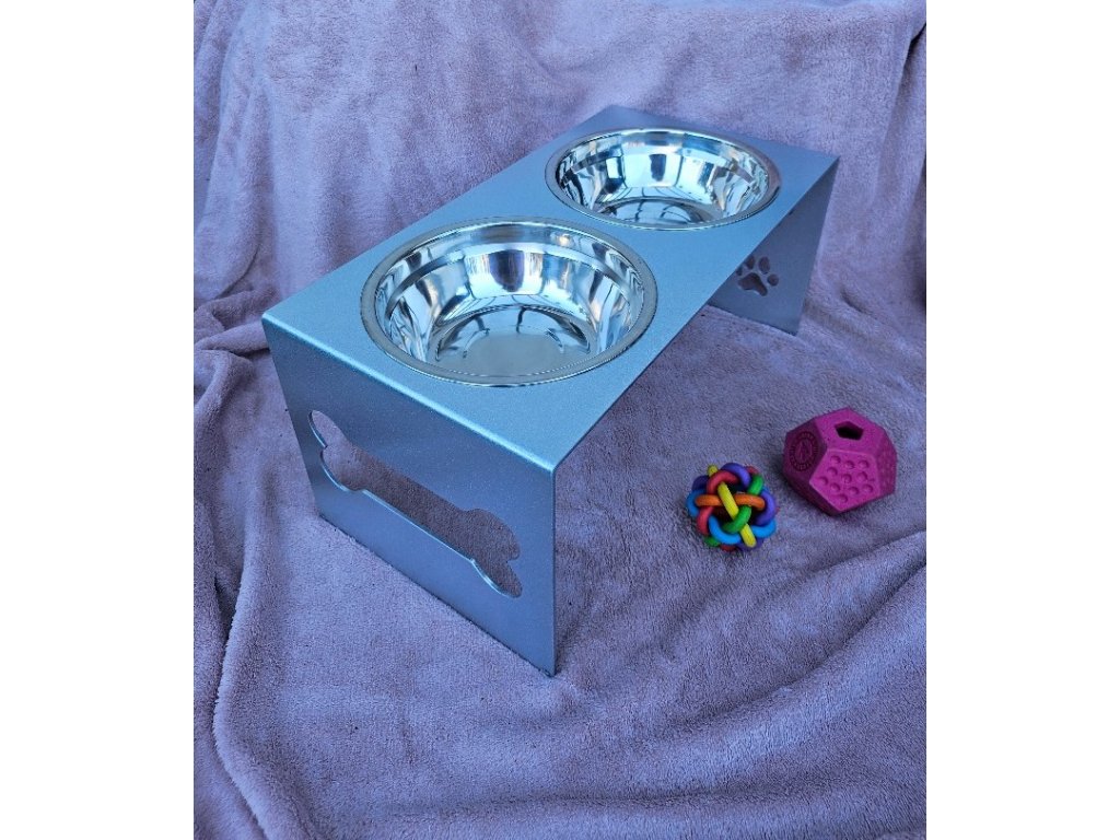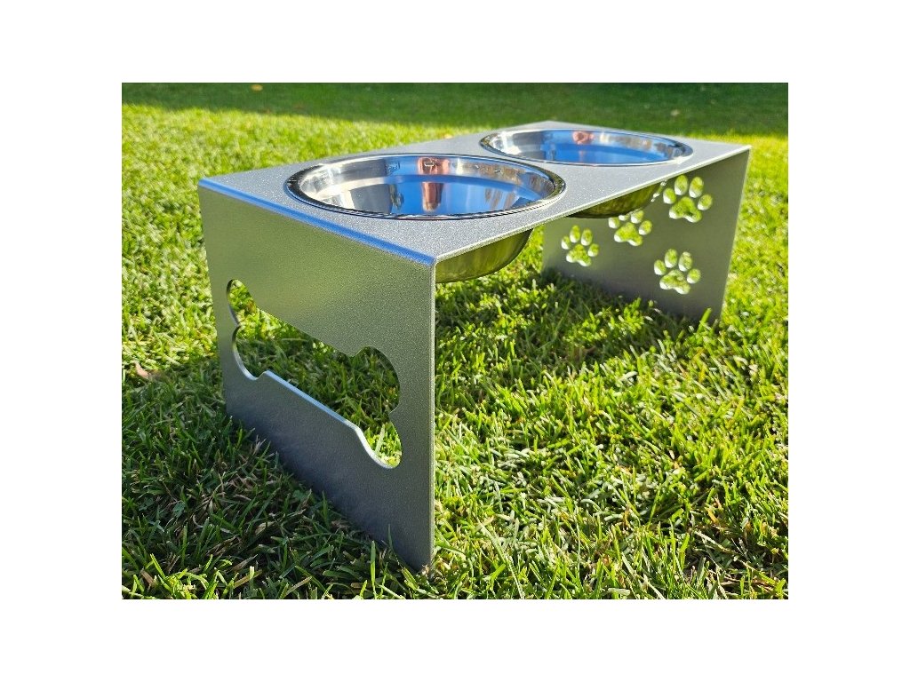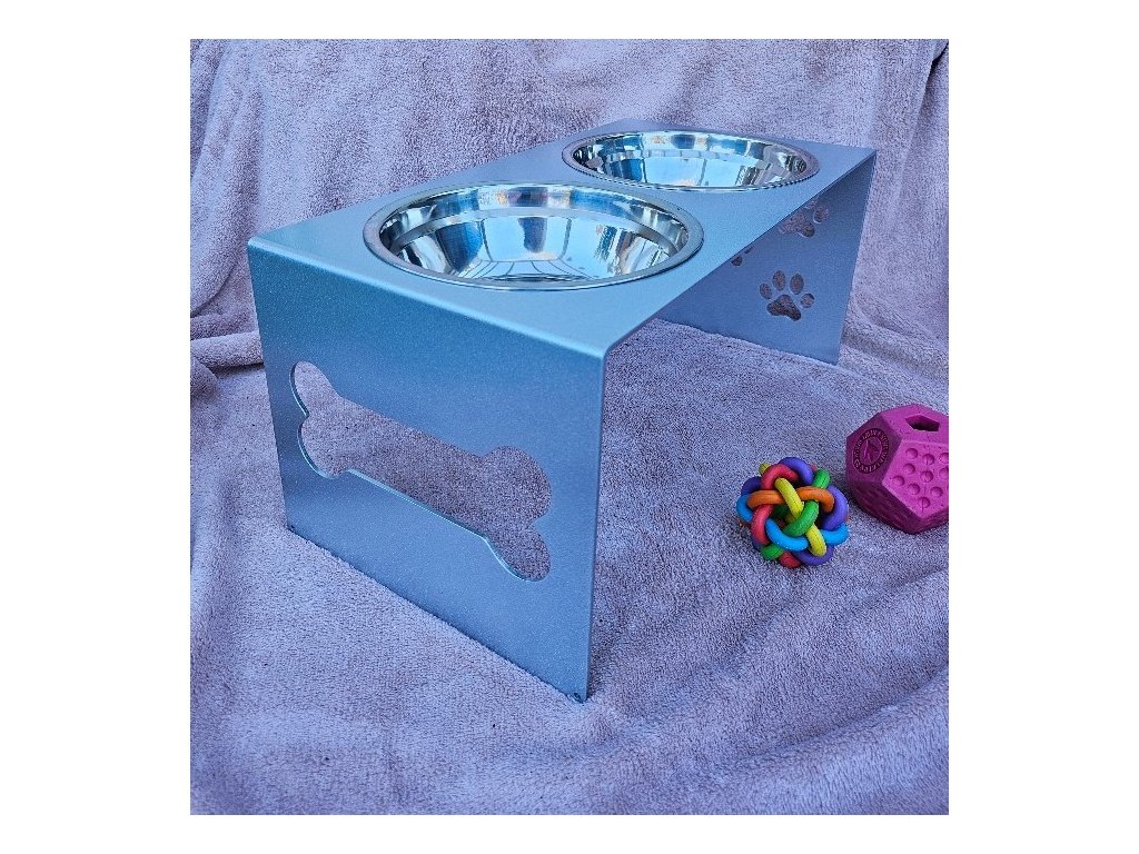 HafBar „Kost+pacičky“ – kovový stojan na dvě misky pro psy, velikost M (stříbrná)