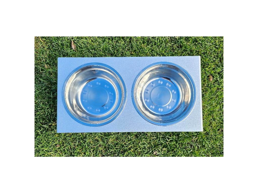 Designový kovový stojan na misky HafBar. Moderní vzhled, pevná konstrukce a bezpečný materiál pro pohodlné a zdravé stolování vašeho pejska. Barva - stříbrná.
