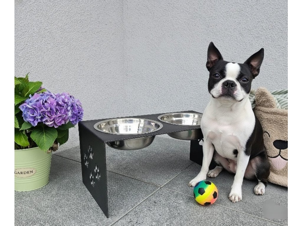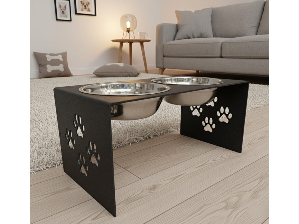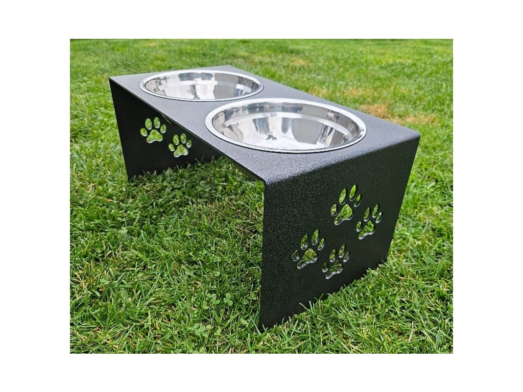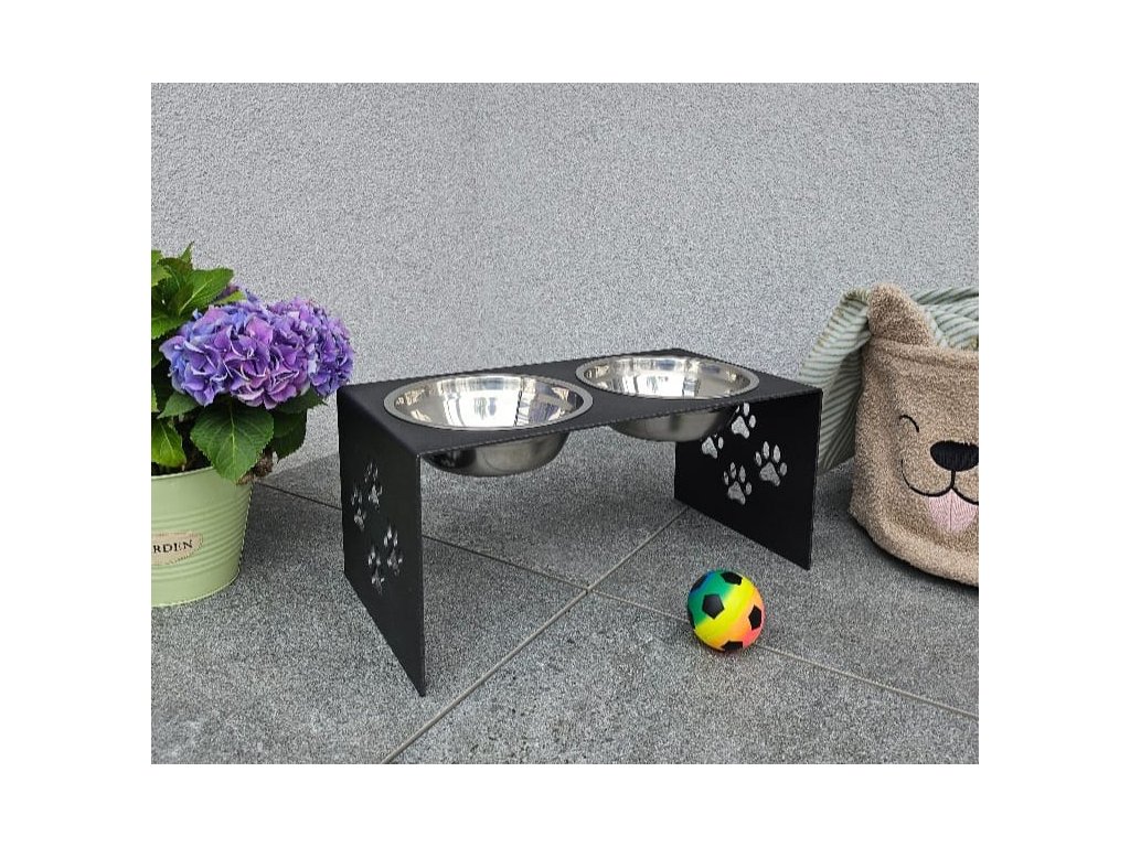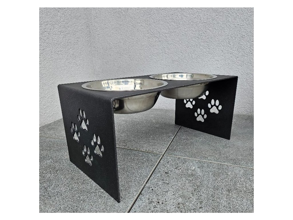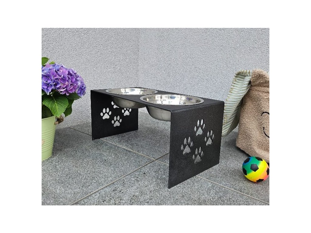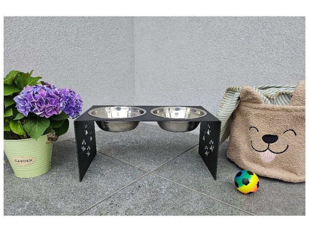 HafBar „S pacičkami“ – kovový stojan na dvě misky pro psy, velikost M (kovářská)