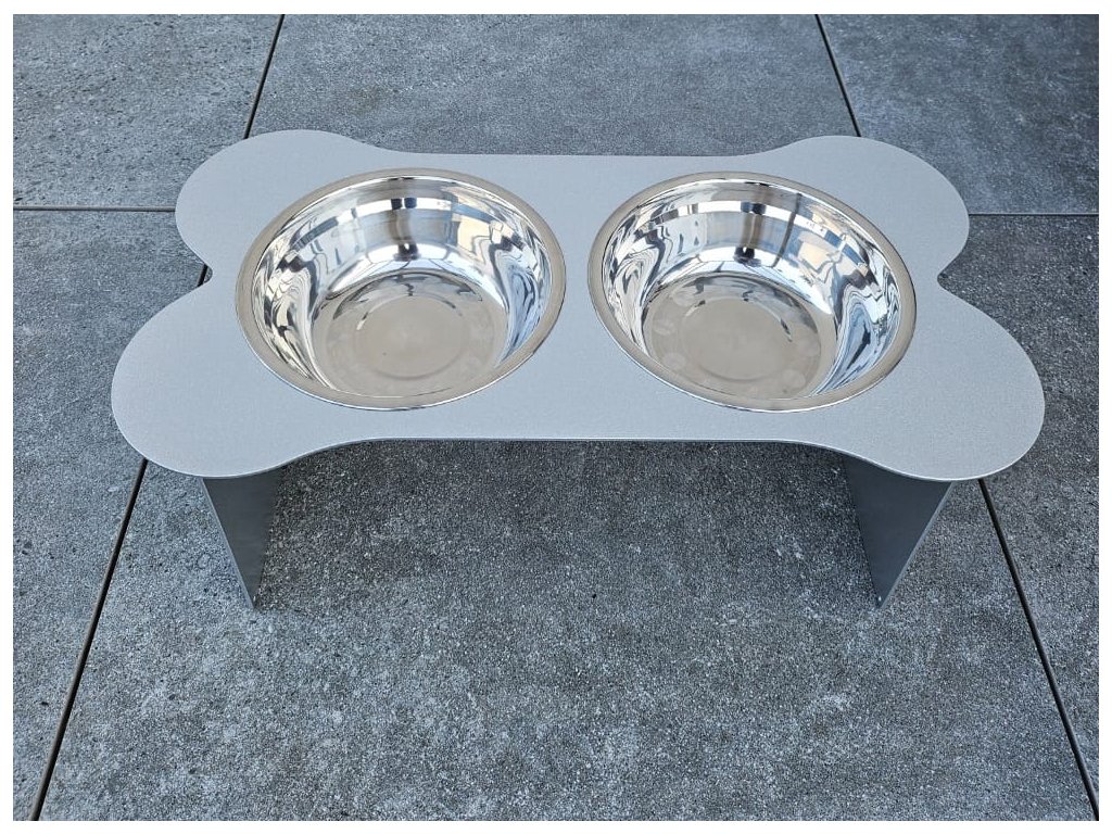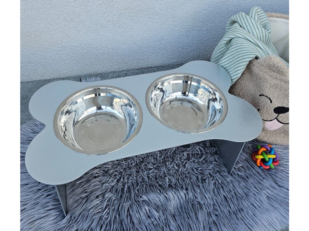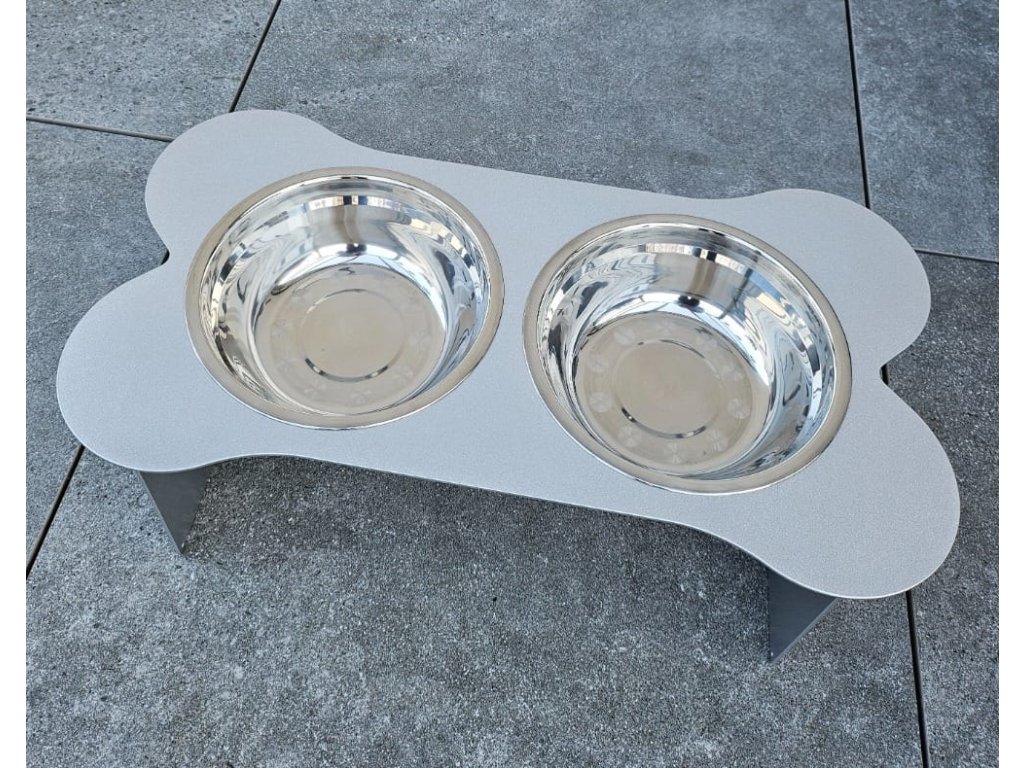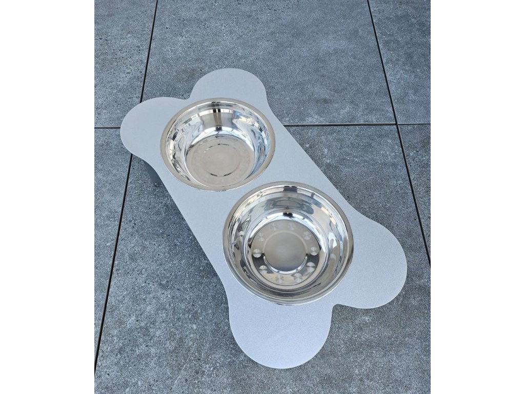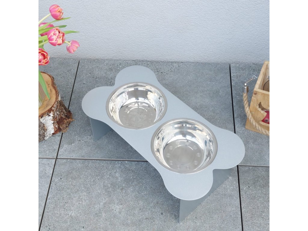 HafBar „Kost“ – kovový stojan na dvě misky pro psy, velikost M (stříbrná)