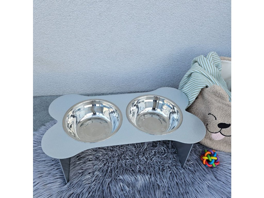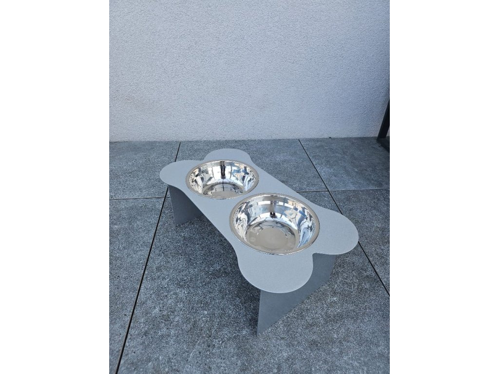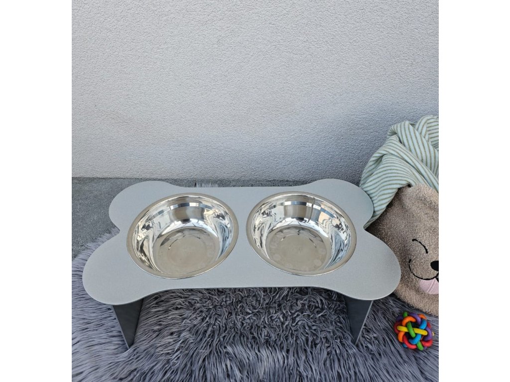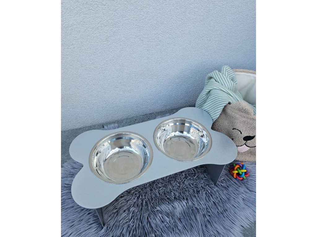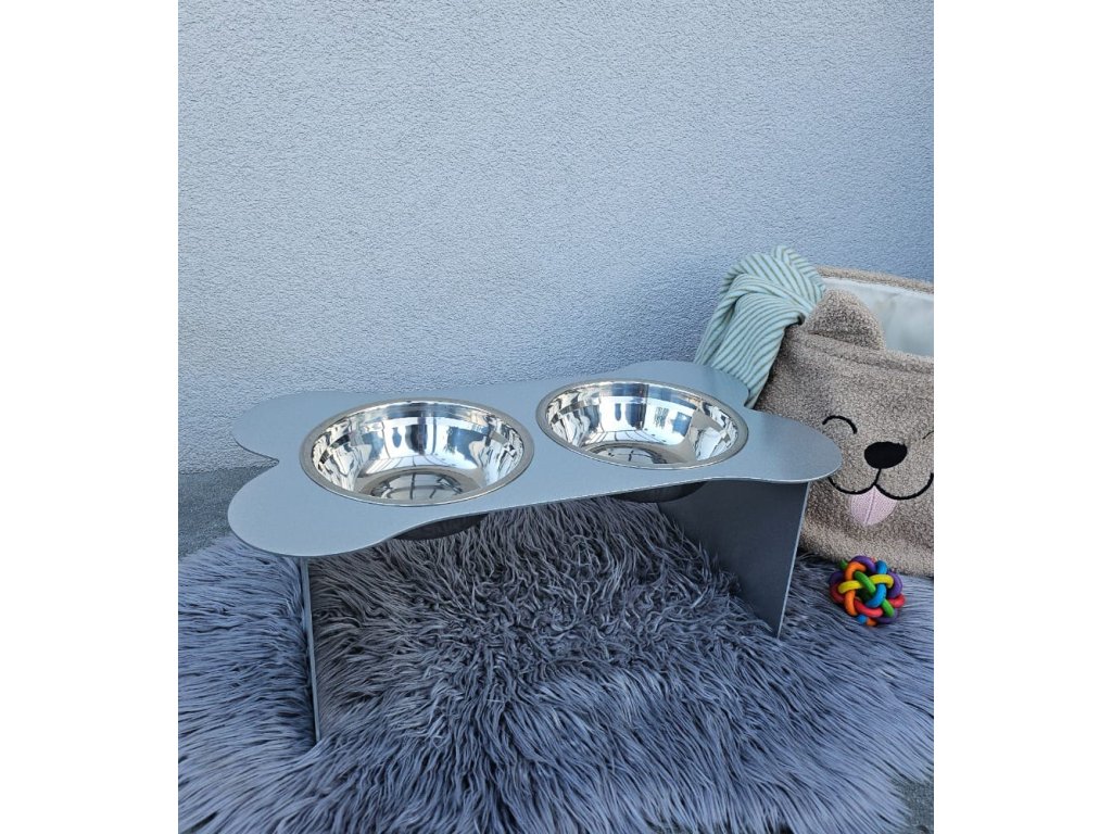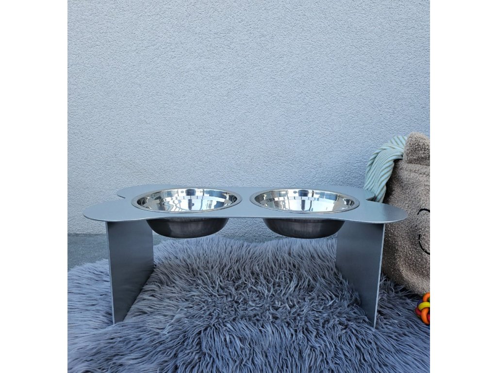 HafBar „Kost“ – kovový stojan na dvě misky pro psy, velikost M (stříbrná)