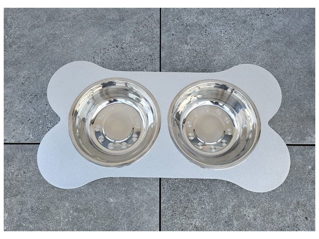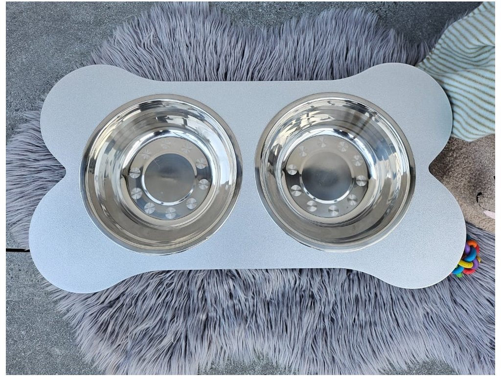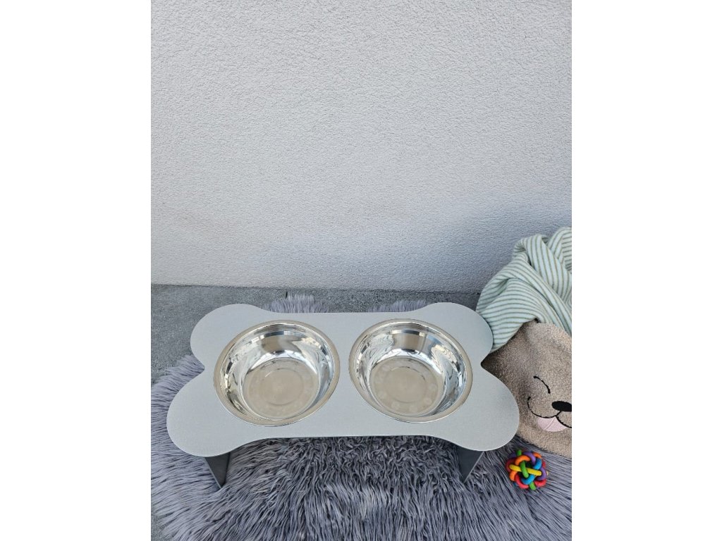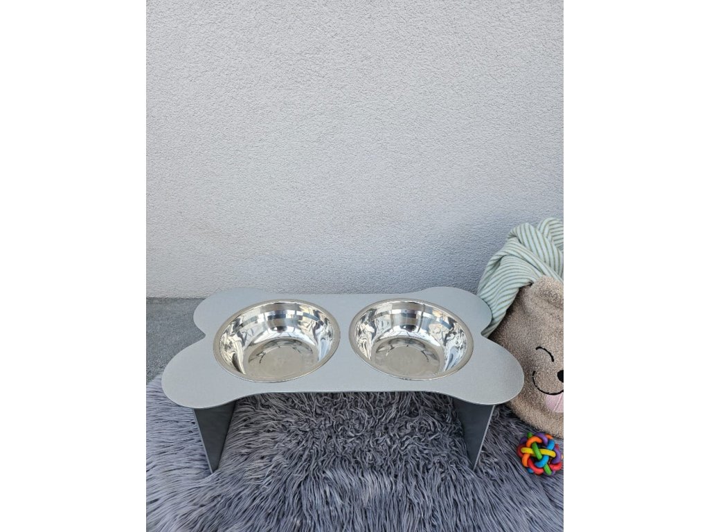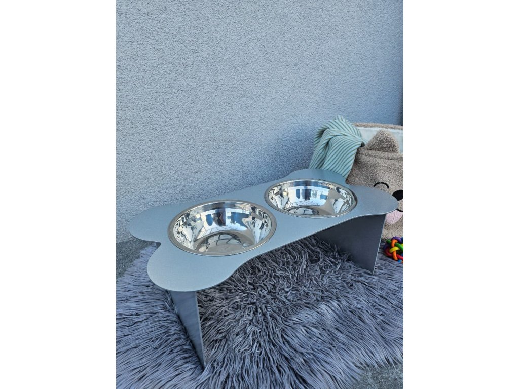 HafBar „Kost“ – kovový stojan na dvě misky pro psy, velikost M (stříbrná)