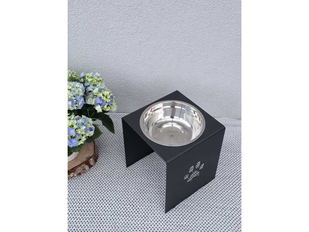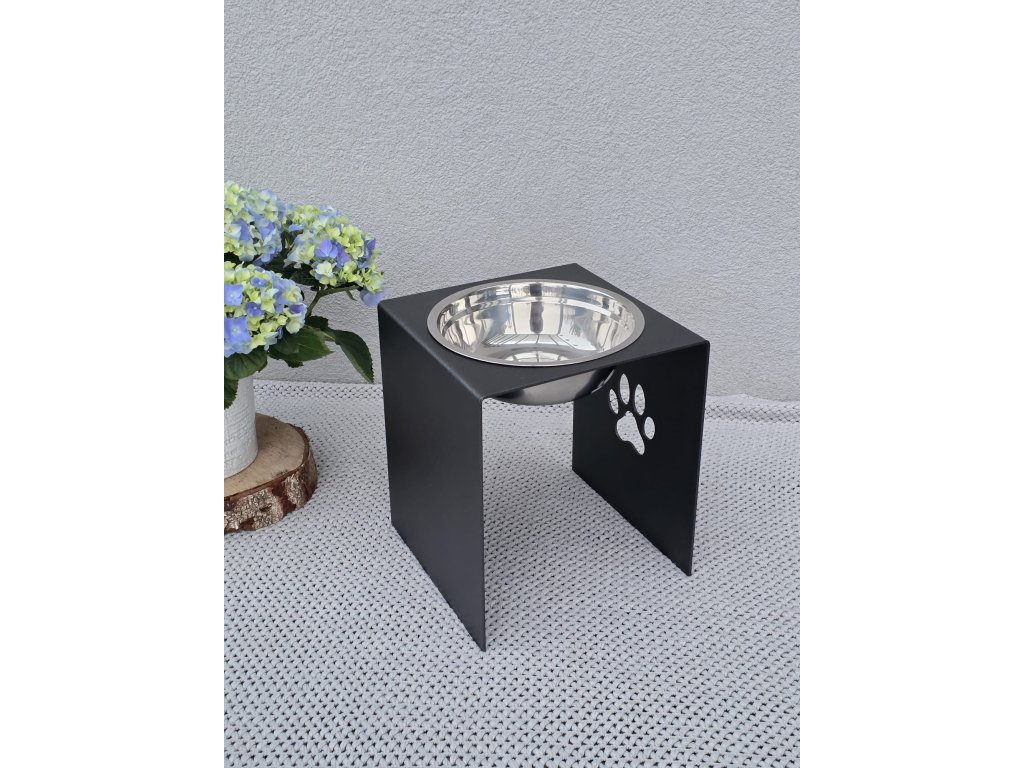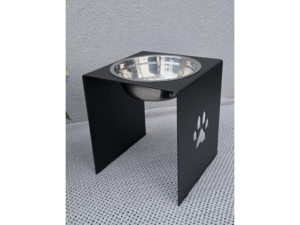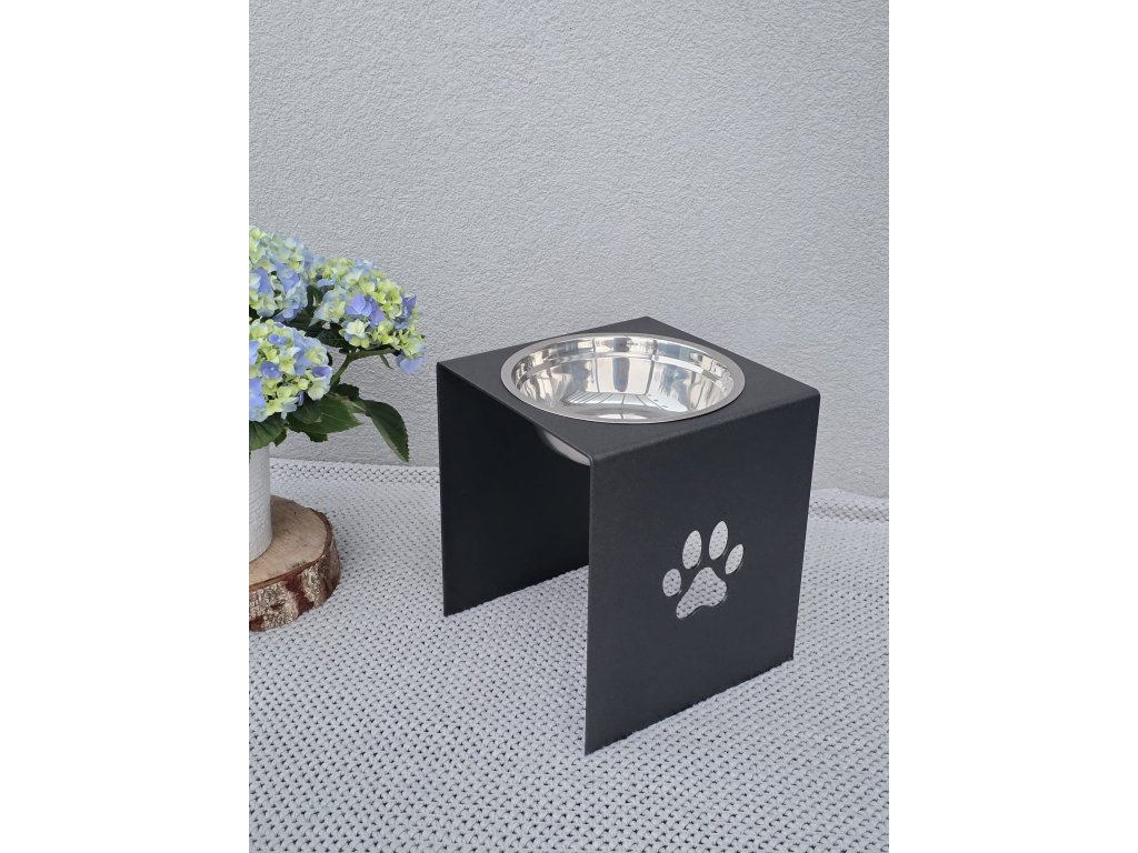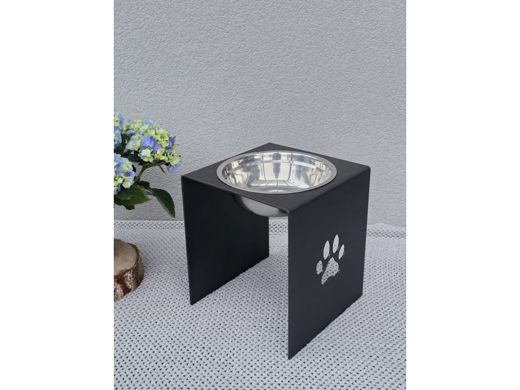 HafBar „S pacičkou“ – kovový stojan na jednu misku 23cm pro psy, velikost L (kovářská)