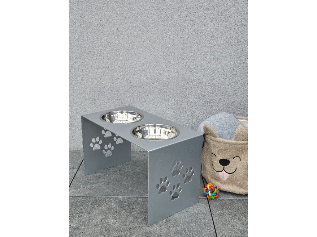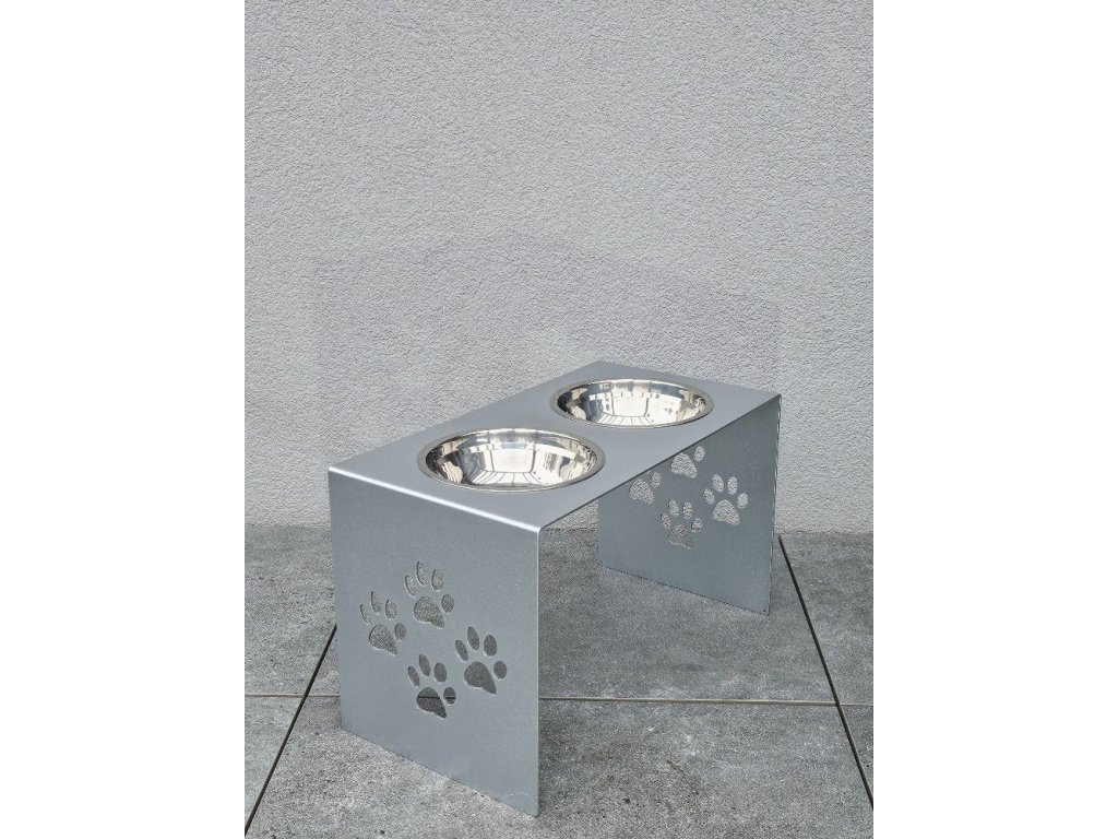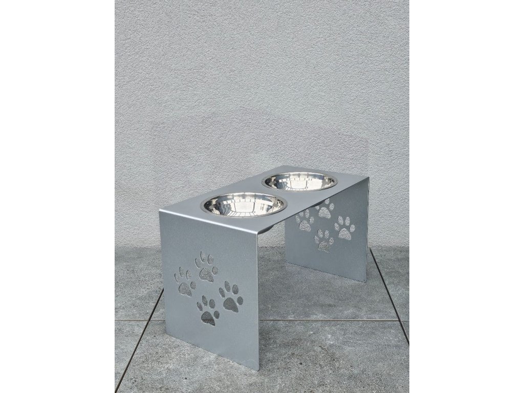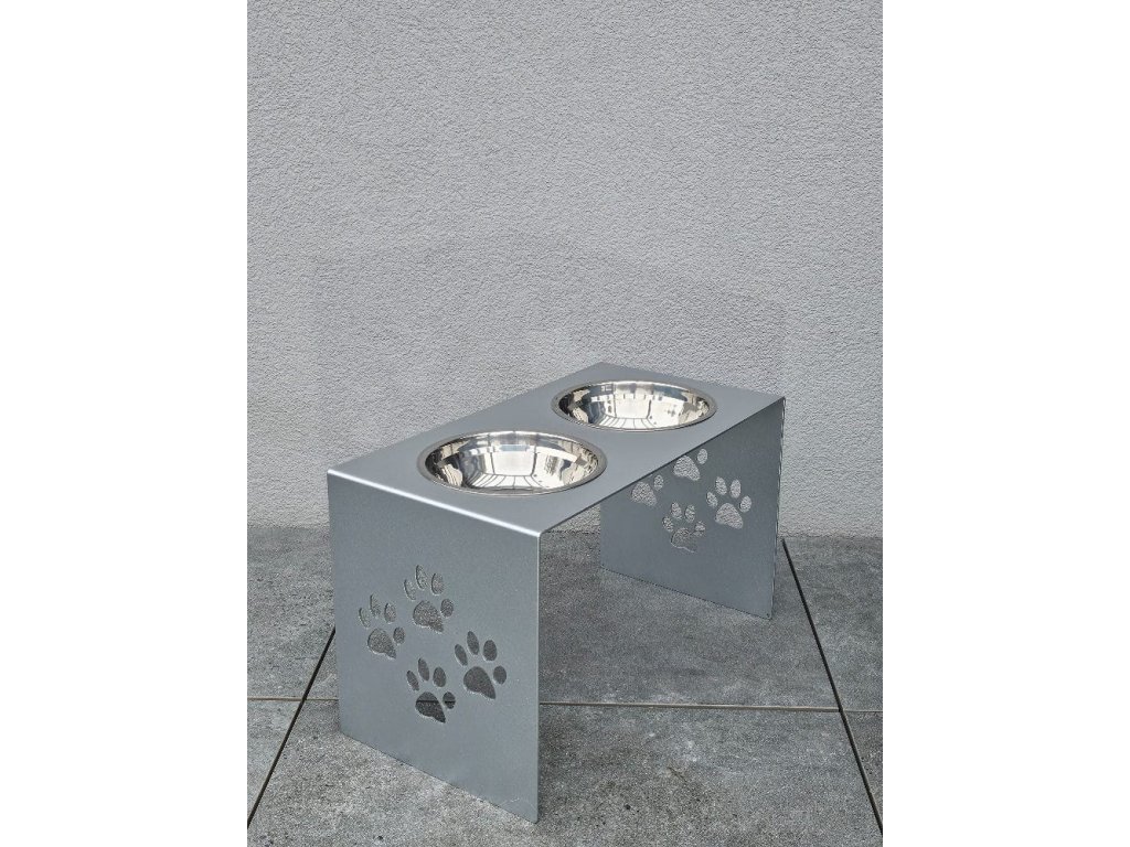 HafBar „S pacičkou“ – kovový stojan na dvě misky pro psy, velikost L (stříbrná)