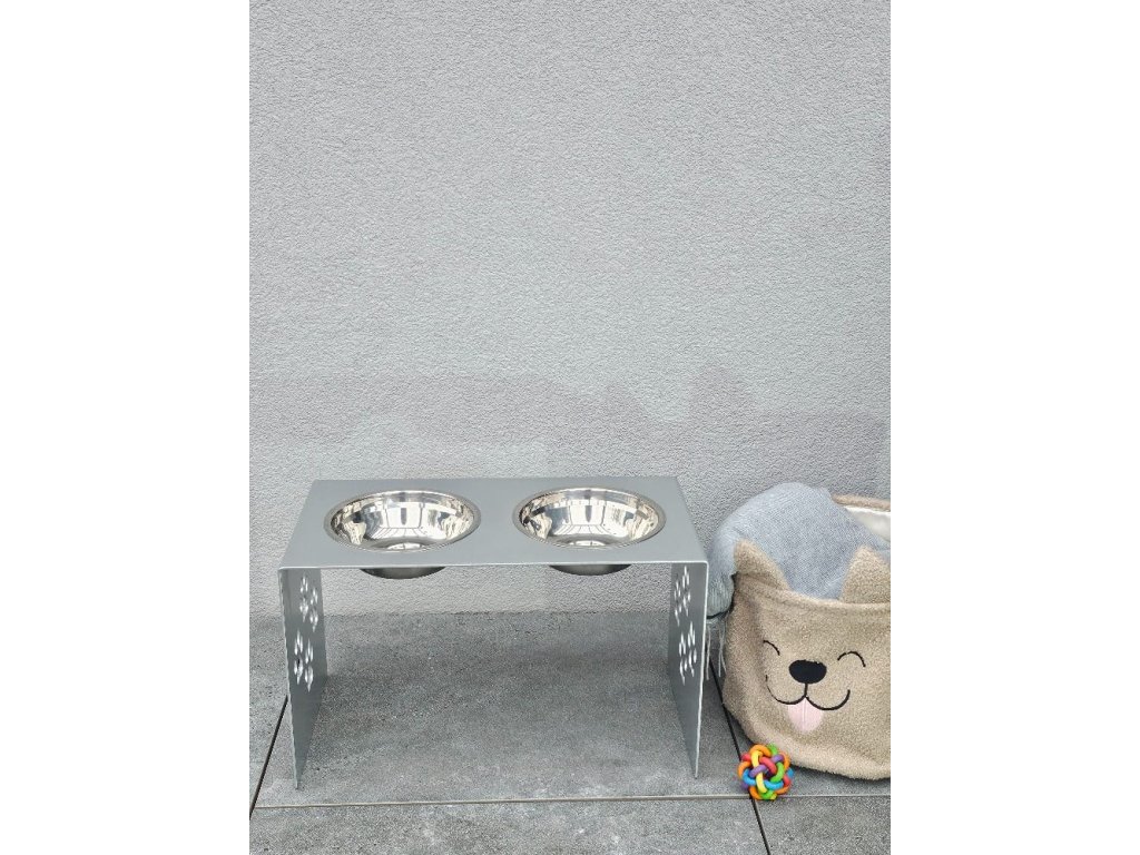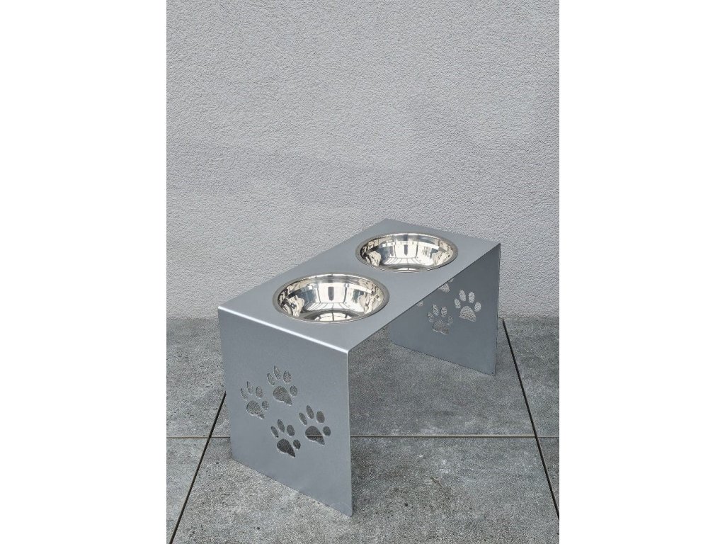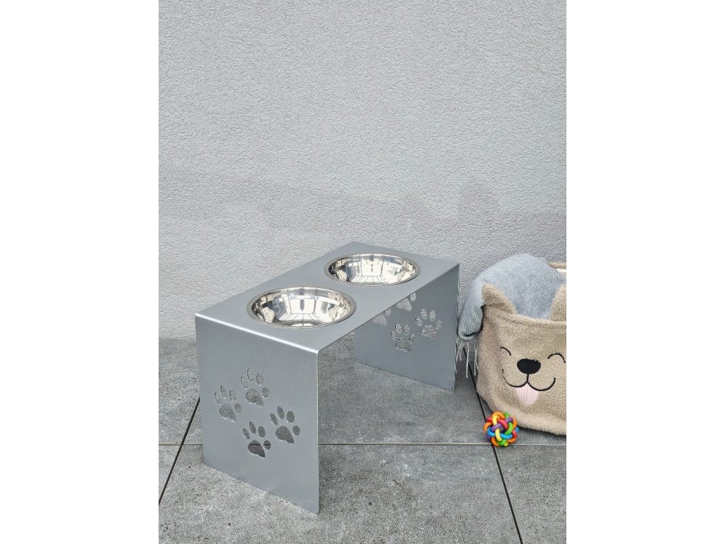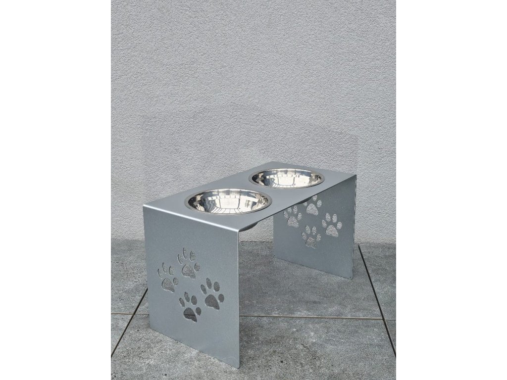 HafBar „S pacičkou“ – kovový stojan na dvě misky pro psy, velikost L (stříbrná)