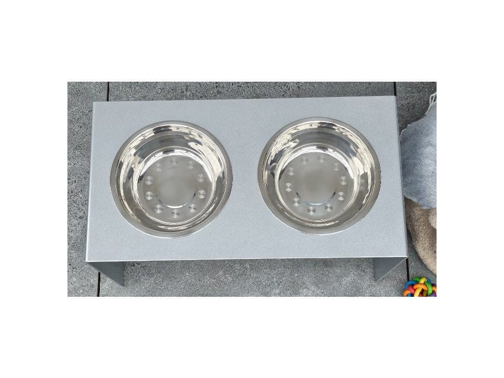 Designový kovový stojan na misky HafBar. Moderní vzhled, pevná konstrukce a bezpečný materiál pro pohodlné a zdravé stolování vašeho pejska. Barva - stříbrná.
