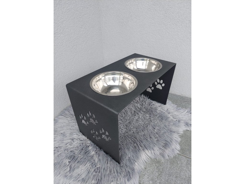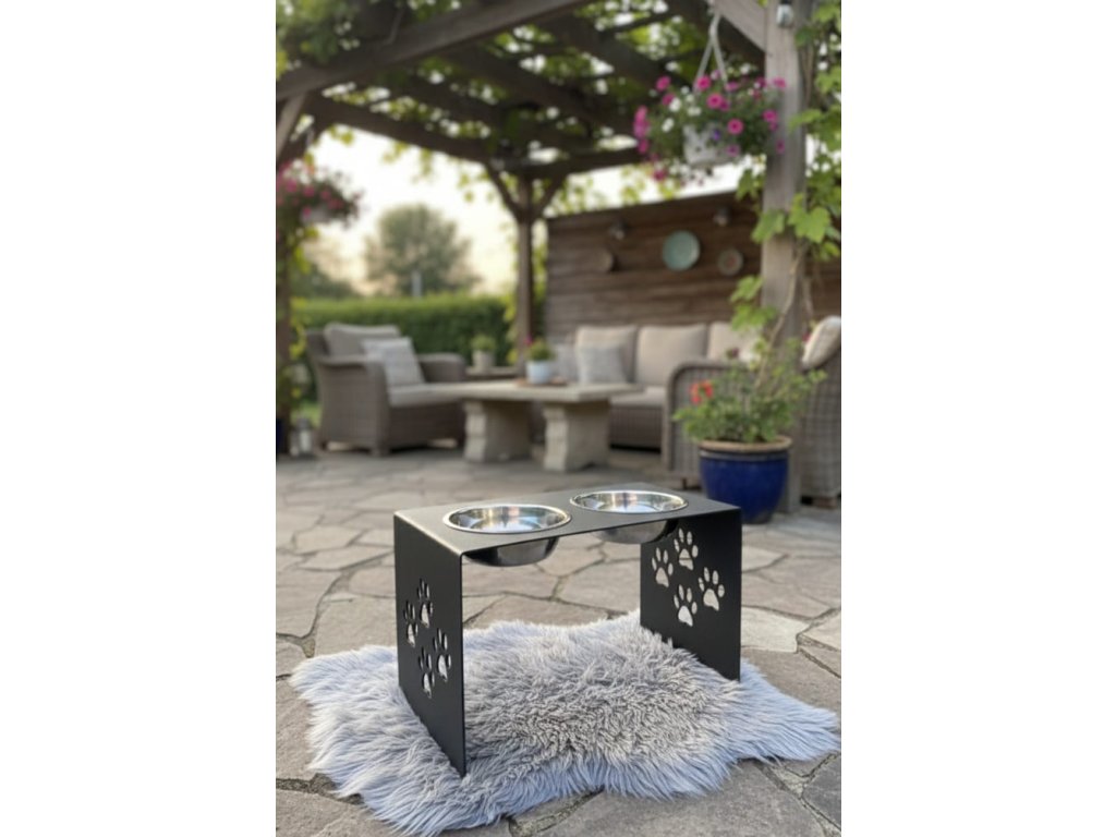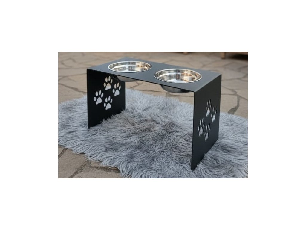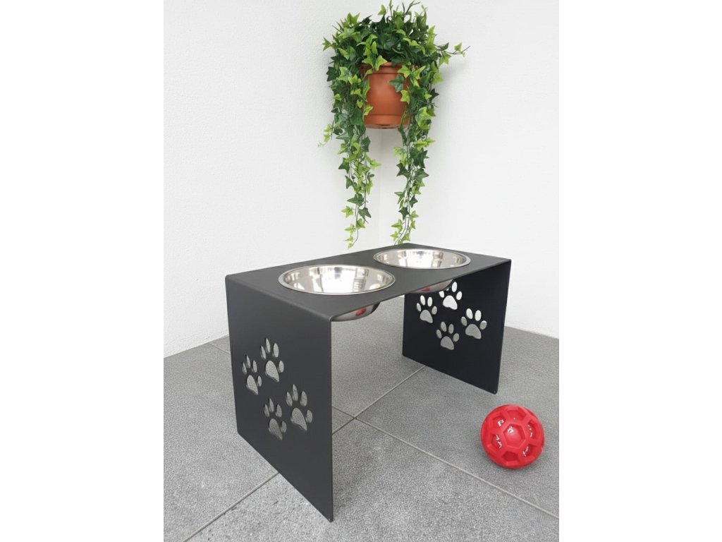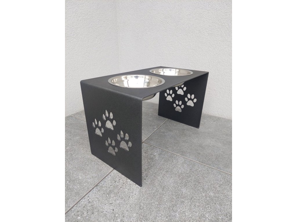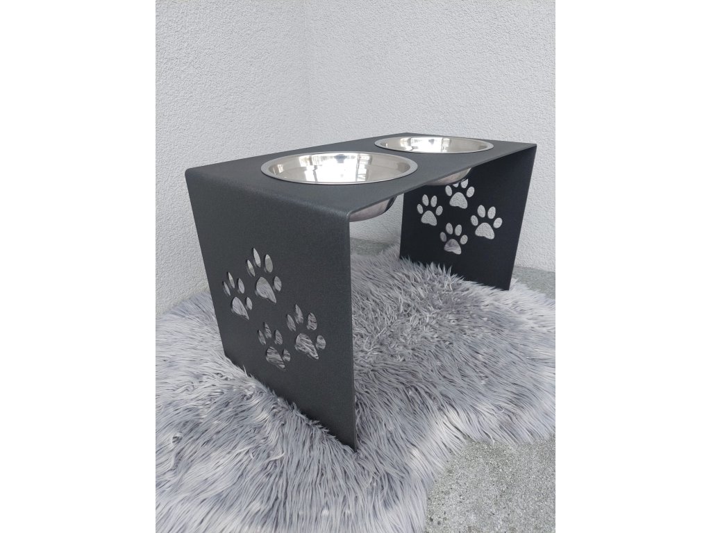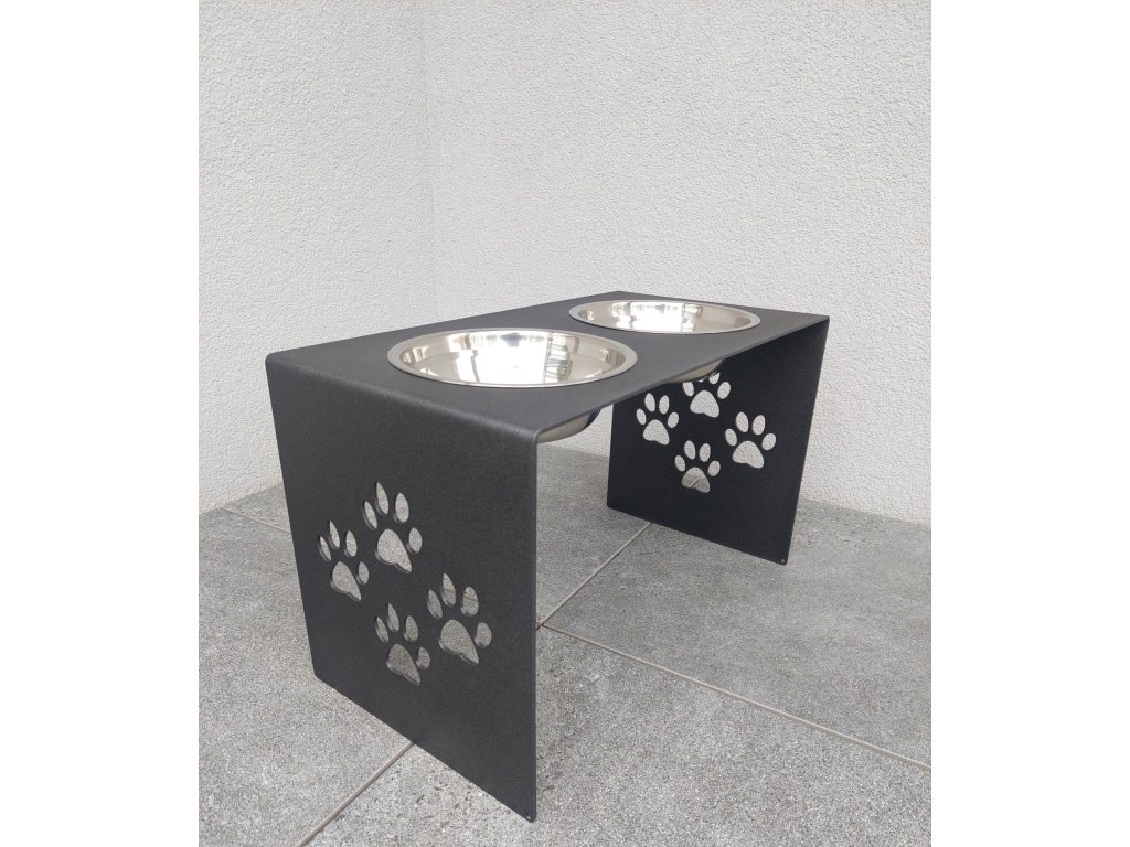HafBar „S pacičkami“ – kovový stojan na dvě misky pro psy, velikost L (kovářská)