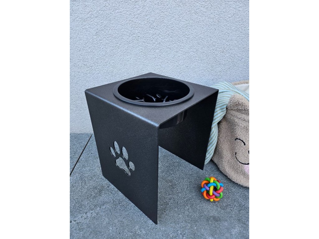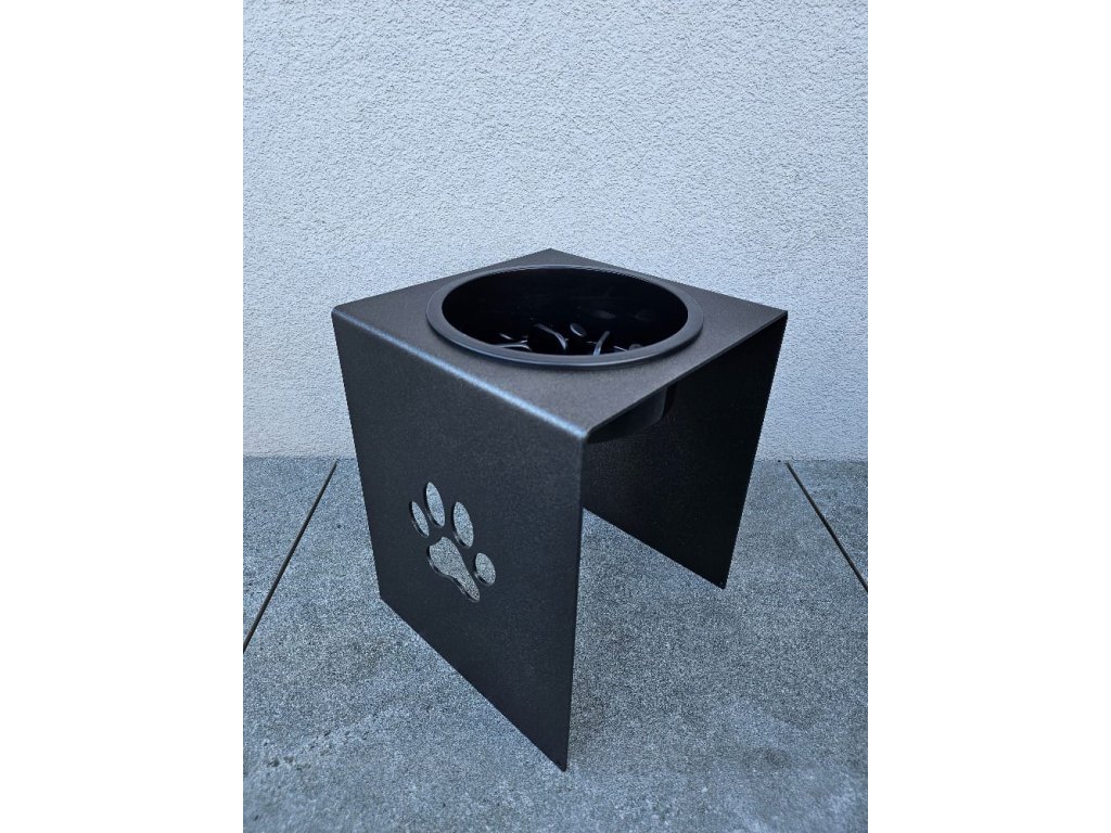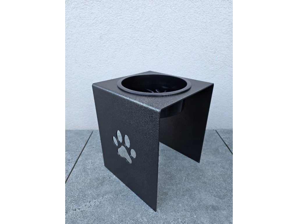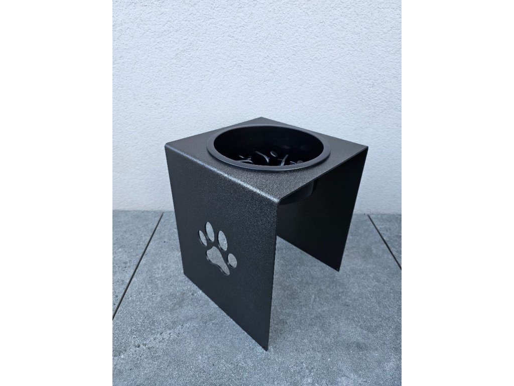 HafBar „S pacičkou“ – kovový protihltací stojan na jednu misku pro psy, velikost L (kovářská)