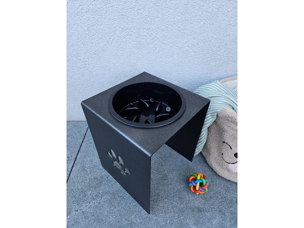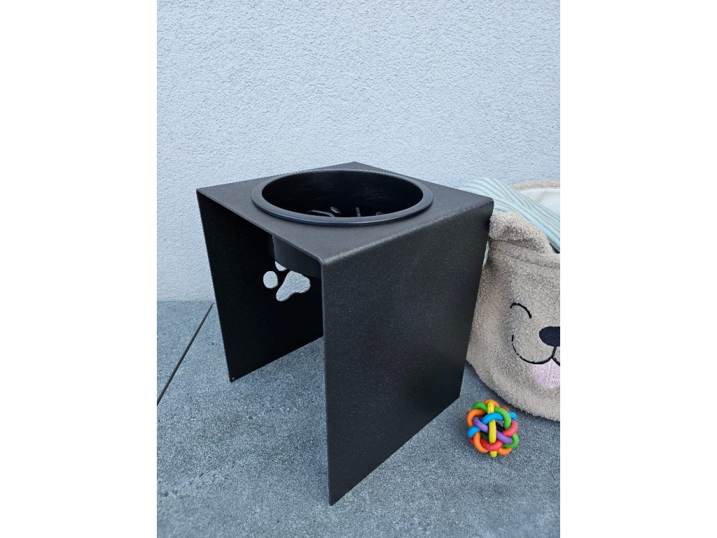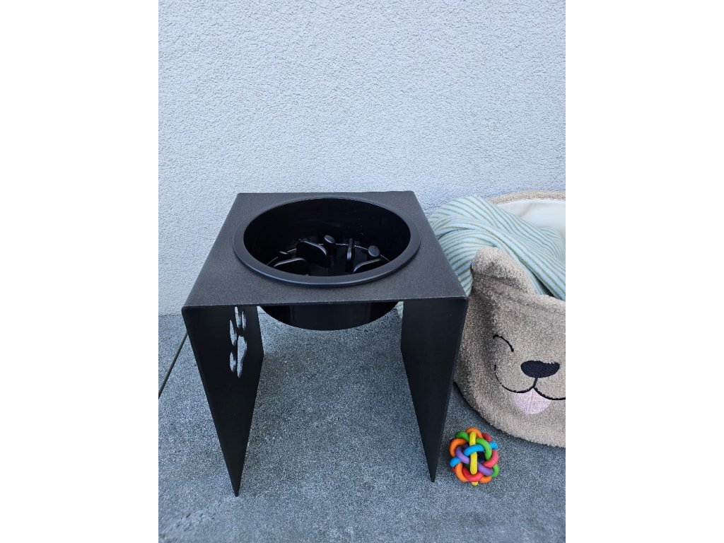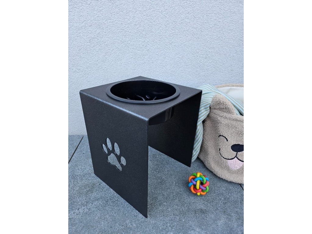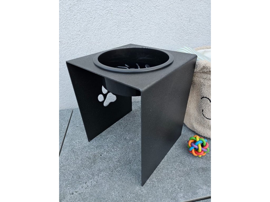 HafBar „S pacičkou“ – kovový protihltací stojan na jednu misku pro psy, velikost L (kovářská)