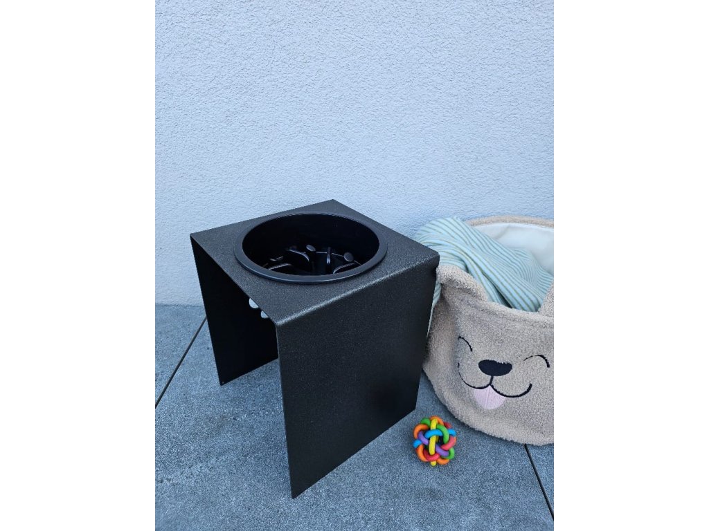 Designový kovový stojan s protihltací miskou HafBar. Moderní vzhled, pevná konstrukce a bezpečný materiál pro pohodlné a zdravé stolování vašeho pejska. Barva - kovářská.