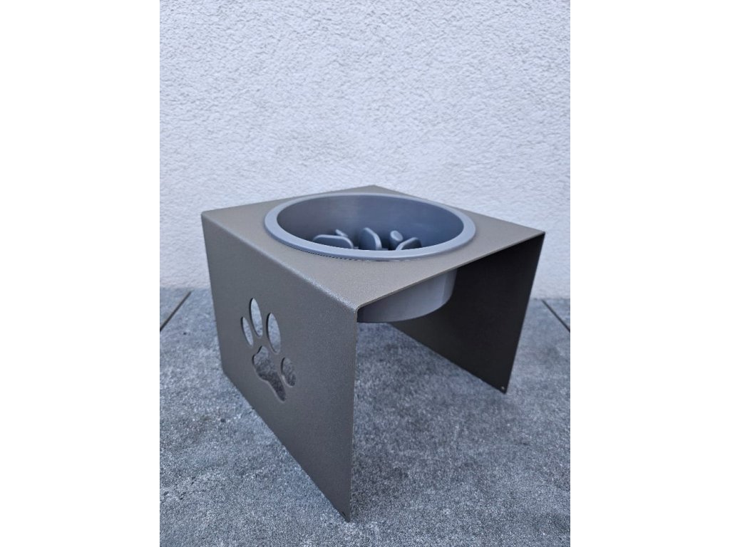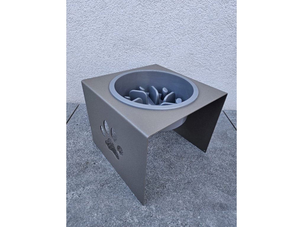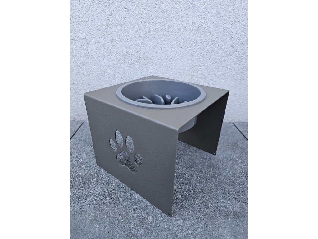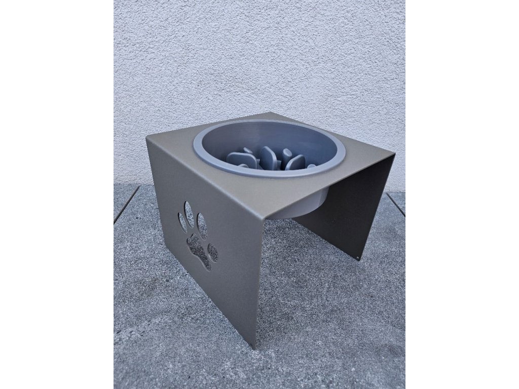 HafBar „S pacičkou“ – kovový protihltací stojan na jednu misku pro psy, velikost M (zeleno-šedá)