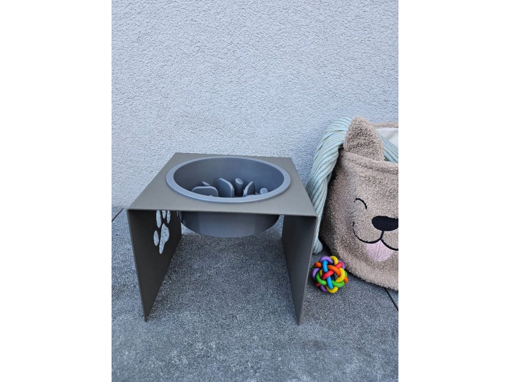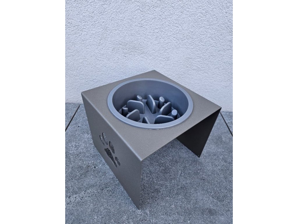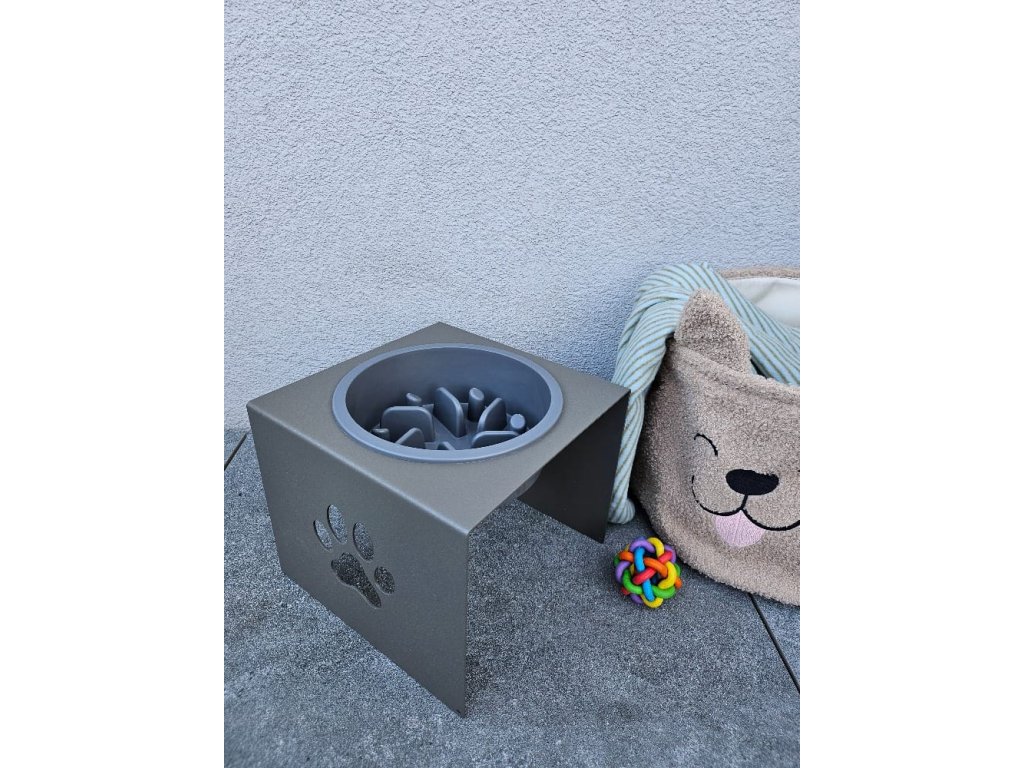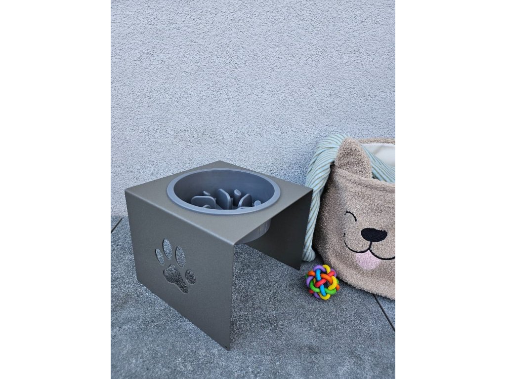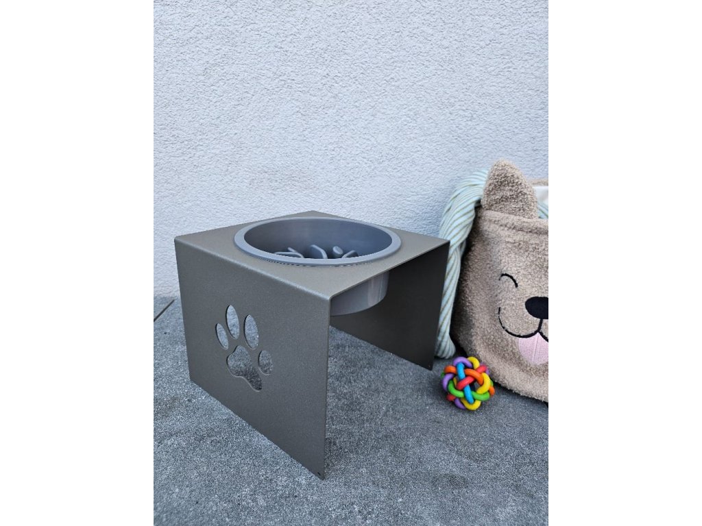 HafBar „S pacičkou“ – kovový protihltací stojan na jednu misku pro psy, velikost M (zeleno-šedá)