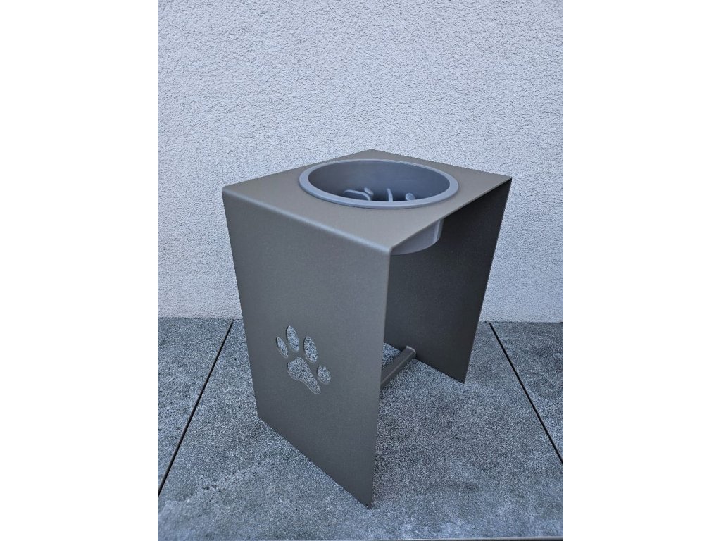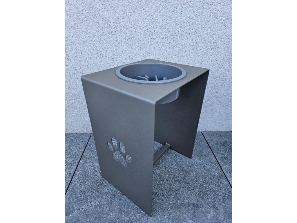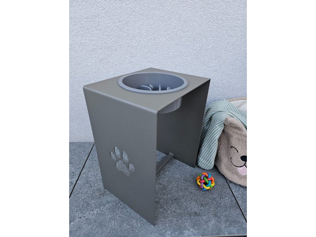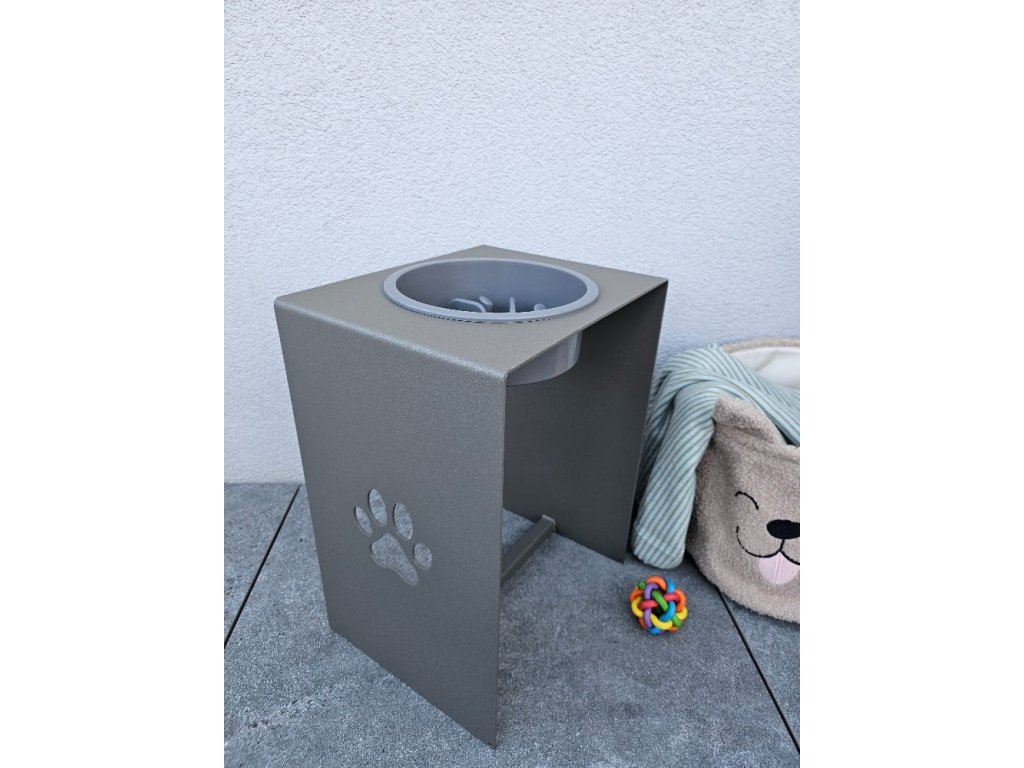 HafBar „S pacičkou“ – kovový protihltací stojan na jednu misku pro psy, velikost XL (zeleno-šedá)