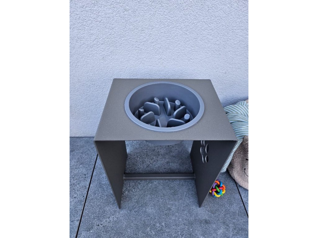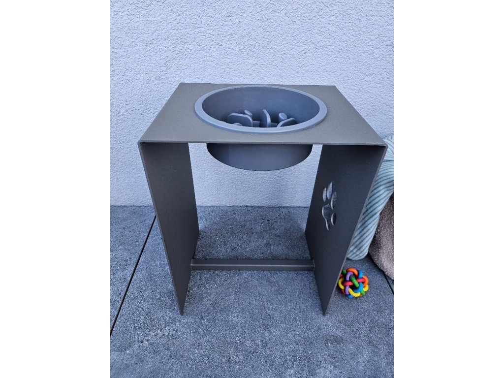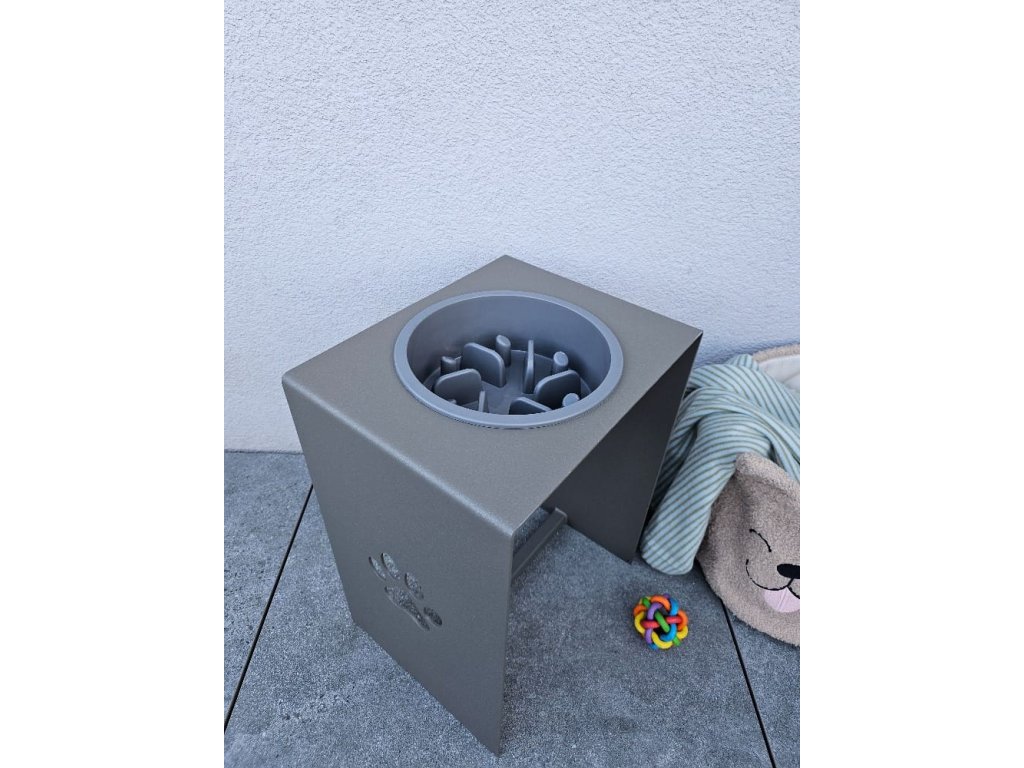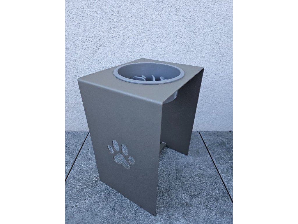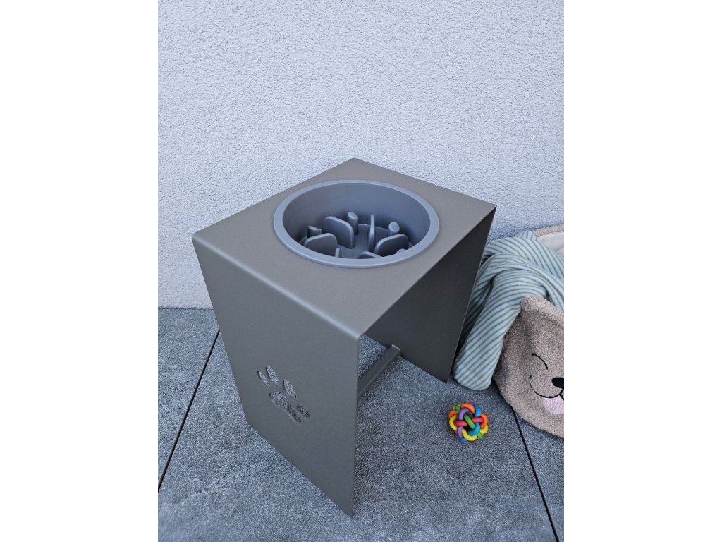 HafBar „S pacičkou“ – kovový protihltací stojan na jednu misku pro psy, velikost XL (zeleno-šedá)
