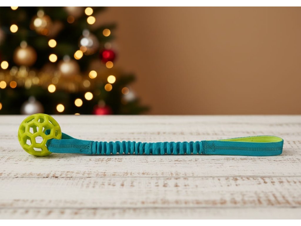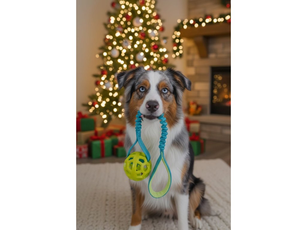 Ideální vánoční dárek pro vašeho aktivního psího miláčka - přetahovadlo s míčkem. Délka celé hračky 48cm, průměr míčku 7cm. Vyrobeno: míč z TPR, popruh z polyesteru. Hračku je možné použít na přetahování i aportování.