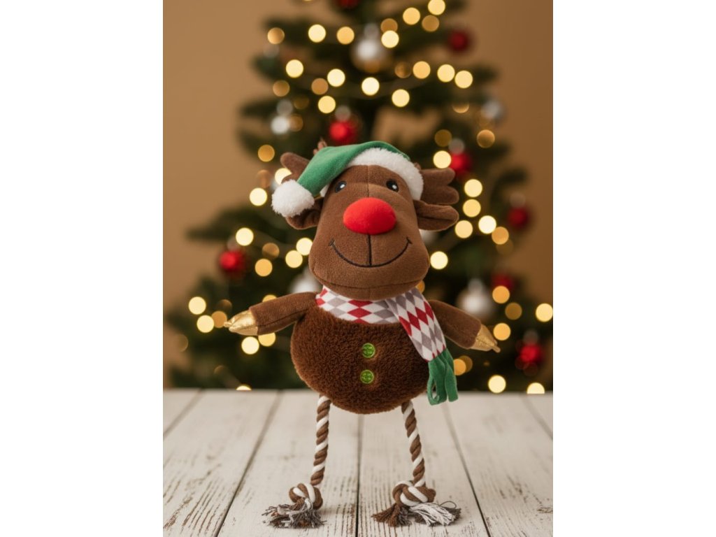 Plyšový vánoční sob, který má místo končetin bavlněné uzlíky z limitované kolekce Vánoce 2025. Sob je vyrobený z materiálu plyš +bavlna. Sob má hnědou barvu. Je vhodný pro střední a velká plemena. Velikost hračky je 49cm. Hračka je se zvukem. Hračka není vhodná ke konzumaci!
