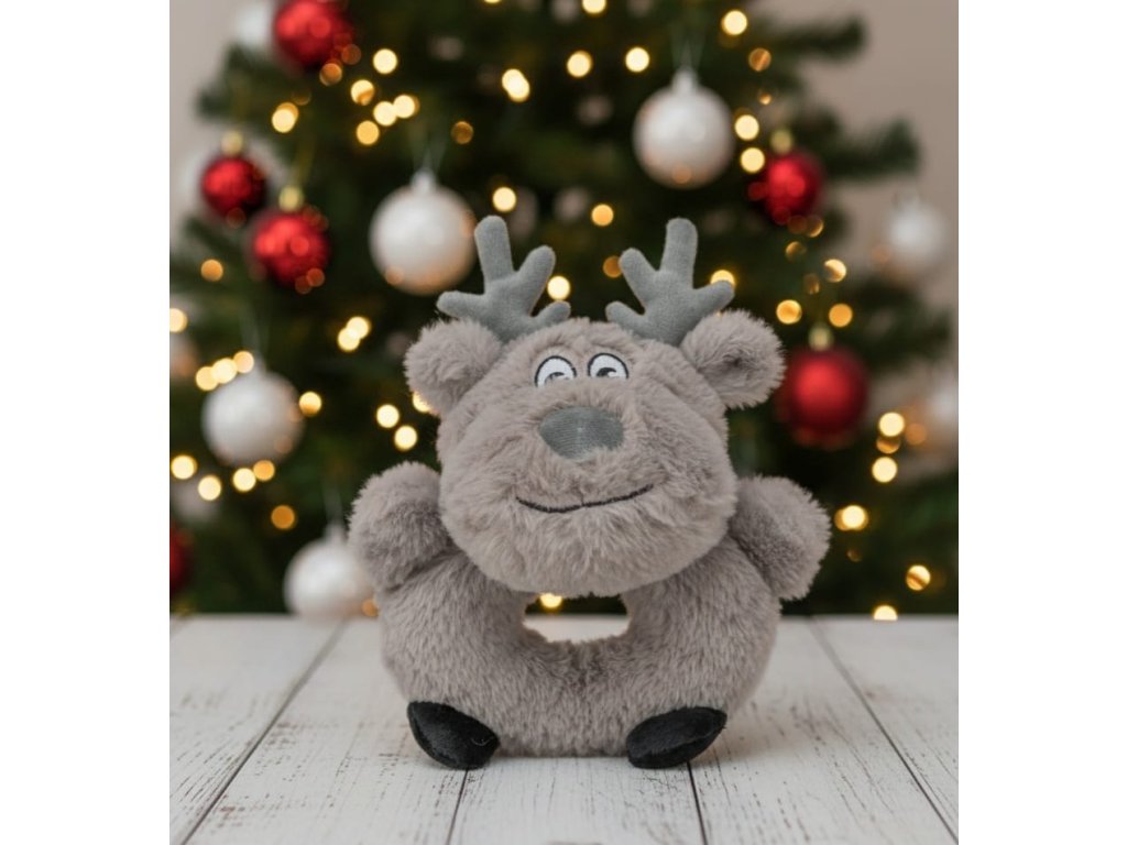 Plyšový sob ve tvaru donutu z limitované kolekce Vánoce 2025. Sob je vyrobený z materiálu plyš + polyester, má šedou barvu. Je vhodný pro střední a velká plemena. Velikost hračky 24 cm. Hračka je bez zvuku.