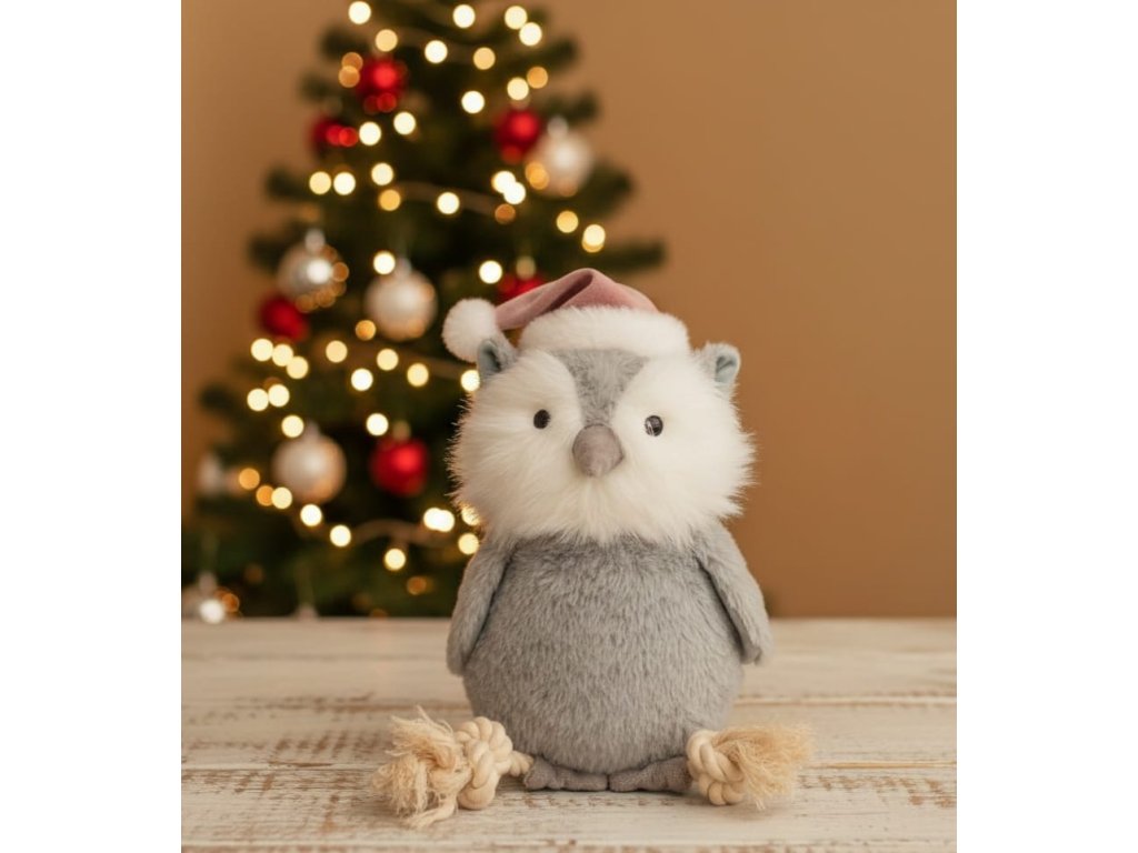 Plyšová vánoční sova s lany z limitované kolekce Vánoce 2025. Sova je vyrobená z materiálu plyš(polyester) + bavlna, má šedou barvu, lze prát na 30 stupňů. Je vhodná pro střední a velká plemena. Velikost hračky 31 cm. Hračka je s integrovaným pískátkem. Není vhodné ke konzumaci!